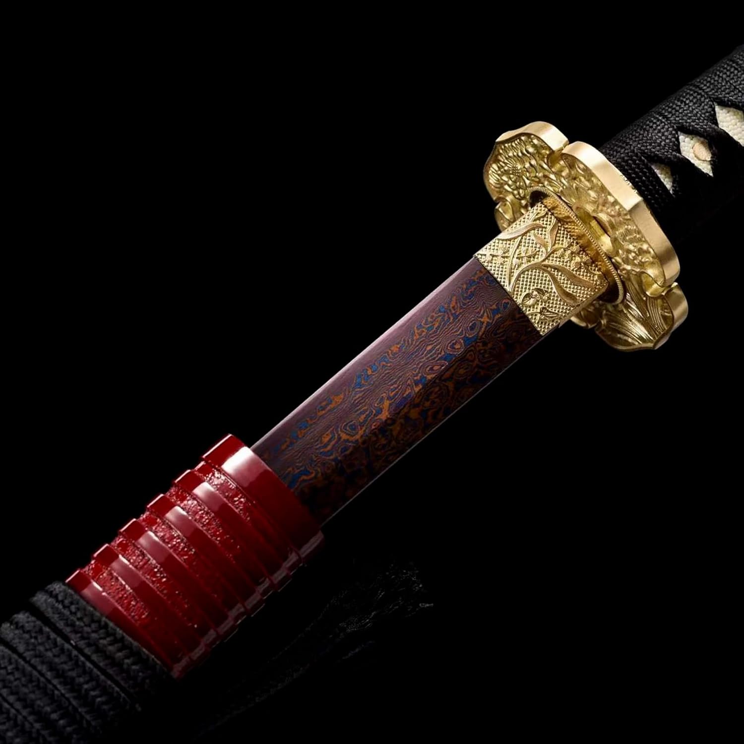☄【Proporzioni perfette】: lunghezza totale 103 cm, lunghezza lama 71 cm, lunghezza impugnatura 26 cm, larghezza lama 3,2 cm. Questo design di dimensioni non solo garantisce l'equilibrio e la flessibilità della katana quando viene utilizzata, ma la rende anche più facile da trasportare e riporre. ☄【Produzione della lama】: la lama è realizzata in acciaio modello di alta qualità, che viene sottoposto a un complesso processo di piegatura e viene trattato con un processo di brunitura per formare una trama della lama unica con buona tenacità ed elevata durezza. Questa spada da samurai è realizzata con cura utilizzando l'artigianato tradizionale e ogni pezzo incarna il duro lavoro e il sudore dell'artigiano. ☄ 【Materiale di alta qualità】: il paramano della katana è realizzato in rame puro e accuratamente scolpito per fornire all'utente non solo una buona protezione per le mani, ma anche realizzato in legno di alta qualità con colore rosso e motivi incisi all'esterno; la maniglia è nera. Avvolto con corda, antiscivolo e assorbente del sudore, comodo da tenere. ☄【Uso multifunzionale】: questa katana non è adatta solo per la pratica professionale di Kendo e Iaido; può essere utilizzato anche come regalo per parenti, amici o appassionati di arti marziali; Ripristina l'immagine del samurai giapponese Eccellente oggetto di scena. ☄【Spirito Samurai】La spada katana non è solo un'opera d'arte, ma porta anche ricche connotazioni culturali giapponesi. Rappresenta lo spirito di coraggio, lealtà e onore dei samurai giapponesi ed è una parte importante della cultura giapponese.