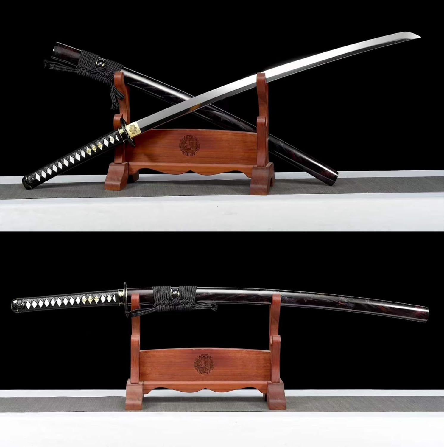 【Lama ad alta lucidatura】: la lama della katana è realizzata in acciaio ad alta velocità, forgiata e lucidata a mano con tecnologia di lucidatura a specchio. La lama brilla come uno specchio e la lama è estremamente affilata. Dopo molteplici trattamenti termici e tempra, garantisce che la lama sia robusta e durevole e mantenga la sua qualità e lucentezza originali, sia per l'uso quotidiano che per la raccolta a lungo termine. 【Materiale di alta qualità】 La lama è forgiata in acciaio ad alte prestazioni, che ha eccellente durezza e tenacità. Il paramano nero è realizzato in ferro puro, resistente e durevole. Il manico in legno è avvolto da una spessa corda di cera, antiscivolo e resistente all'usura. La maniglia è progettata ergonomicamente e offre una presa comoda e salda. Il fodero è realizzato in vernice spray per legno naturale e sottolinea il fascino unico della spada da samurai. 【Prestazioni eccellenti】: la lama è accuratamente lucidata e lucida e brilla di una luce fredda come se potesse tagliare qualsiasi cosa. Questa katana non offre solo prestazioni in combattimento ma anche una lunga durata, permettendole di mantenere prestazioni stabili anche nel vivo della battaglia. Il suo design punta sull'equilibrio e sulla praticità, un connubio perfetto tra eleganza e robustezza. 【Misura adatta】: lunghezza totale 103 cm, lunghezza impugnatura 26,5 cm, lunghezza lama 71 cm, larghezza lama 3,2 cm. Le dimensioni adeguate, la forma e il design unici della katana la distinguono da molte armi e diventano la prima scelta per collezionisti e appassionati di arti marziali. 【Molto pratico】: la katana non solo ha eccellenti capacità pratiche, ma è anche un'elegante opera d'arte. Perfetto per regali, giochi di ruolo, kendo, allenamento Iaido, pratica di arti marziali, autodifesa, collezione, decorazioni per la casa, mostre, regali di Natale, Halloween, feste in costume, oggetti di scena, ecc.