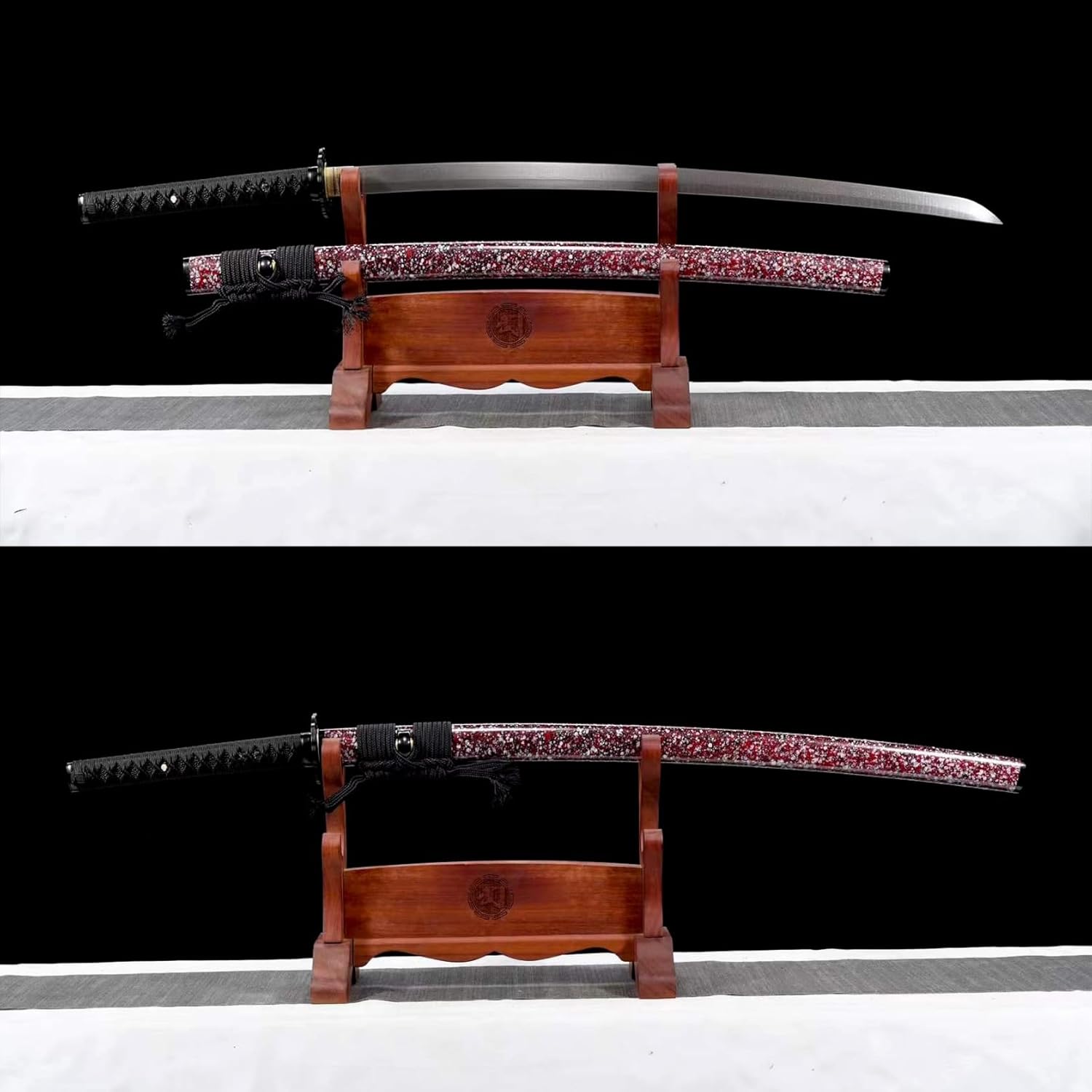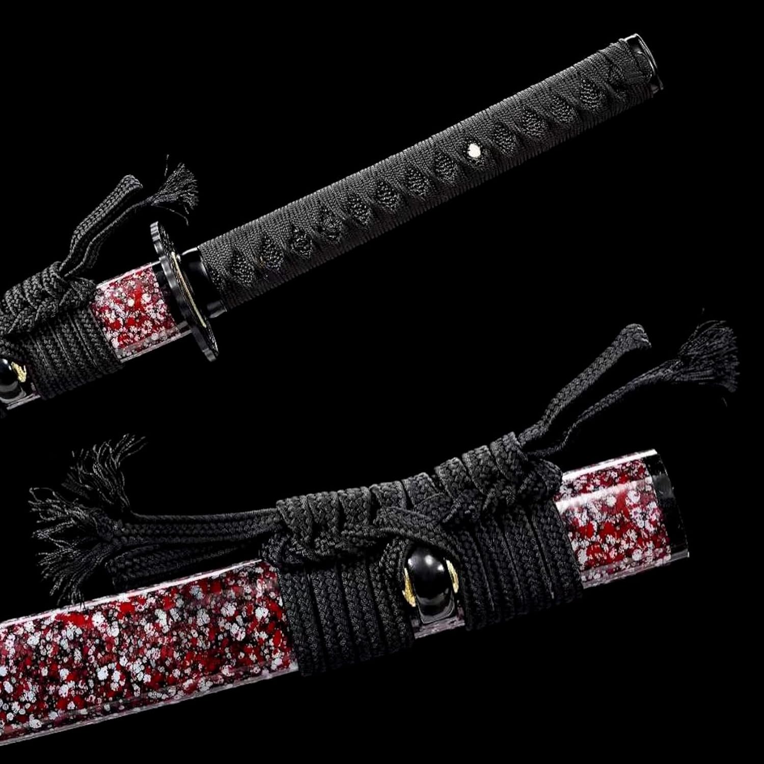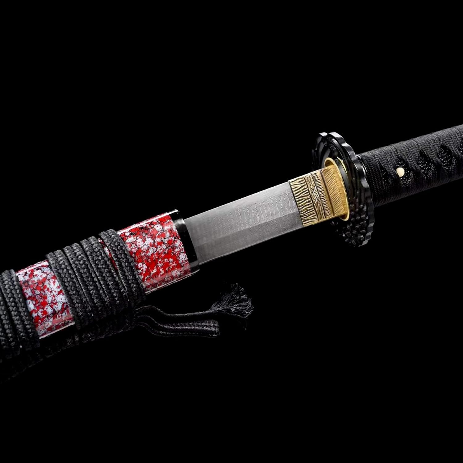 【Artigianato squisito】: la spada da samurai è forgiata utilizzando la tradizionale lavorazione artigianale di Damasco. Dopo essere stato piegato, forgiato, attorcigliato e allungato più volte, presenta un esclusivo motivo a scala lucidato a mano in 18 passaggi. .Ogni katana porta con sé l'essenza dell'artigianato tradizionale ed è il risultato del duro lavoro del fabbro. 【Materiale di alta qualità】: la lama è realizzata in acciaio modellato, che è stato piegato e forgiato più volte per garantire la perfetta combinazione di durezza e tenacità. Il paramano è realizzato in ferro di alta qualità. Il manico del coltello è realizzato in legno di alta qualità ed è infilato a mano con una spessa corda di cera per una sensazione confortevole. Il fodero è realizzato in vernice spray per legno naturale e sottolinea il fascino unico della spada da samurai. 【Misura adatta】: lunghezza totale 103 cm, lunghezza lama 72 cm, lunghezza impugnatura 26 cm, larghezza lama 3,2 cm, spessore lama 0,7 cm, peso circa 1,34 kg. Le dimensioni ed il peso adeguati la rendono più facile da maneggiare e la rendono un'arma pratica. 【Ampia gamma di usi】: questo coltello non è solo un'arma pratica, ma è anche adatto per essere collezionato ed esposto in varie occasioni. Sia nello studio, nel soggiorno, nell'ufficio o nello studio di arti marziali, può diventare una decorazione e un'esposizione unica. Non solo riflette il gusto e la personalità del proprietario, ma conferisce anche alla stanza un'atmosfera misteriosa e solenne. 【Storia e cultura】: la storia della katana può essere fatta risalire al lontano periodo degli Stati Combattenti in Giappone. Appare frequentemente in varie opere cinematografiche e televisive in tutto il mondo. La spada katana è piena della forte cultura samurai giapponese ed è la prova più preziosa della gloria e della dignità del samurai. Il fascino unico della Katana è irresistibile!