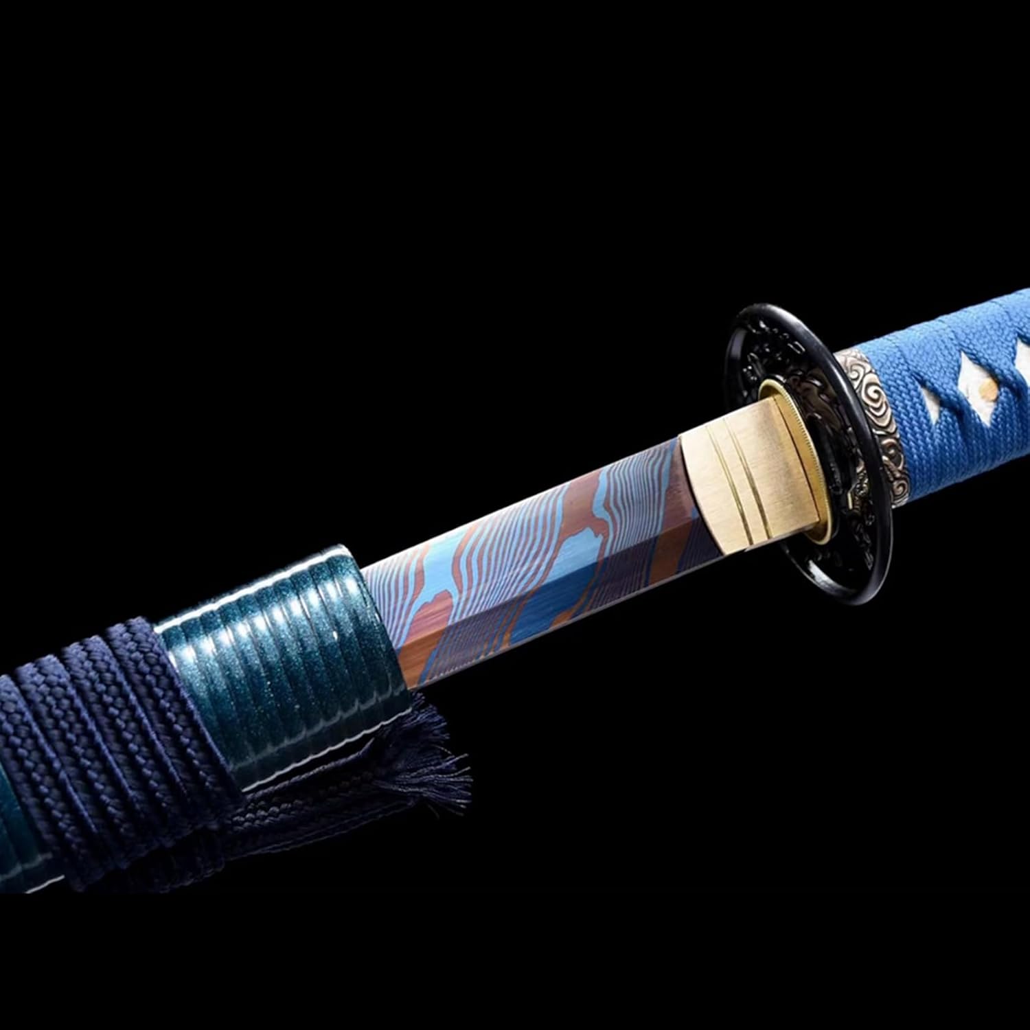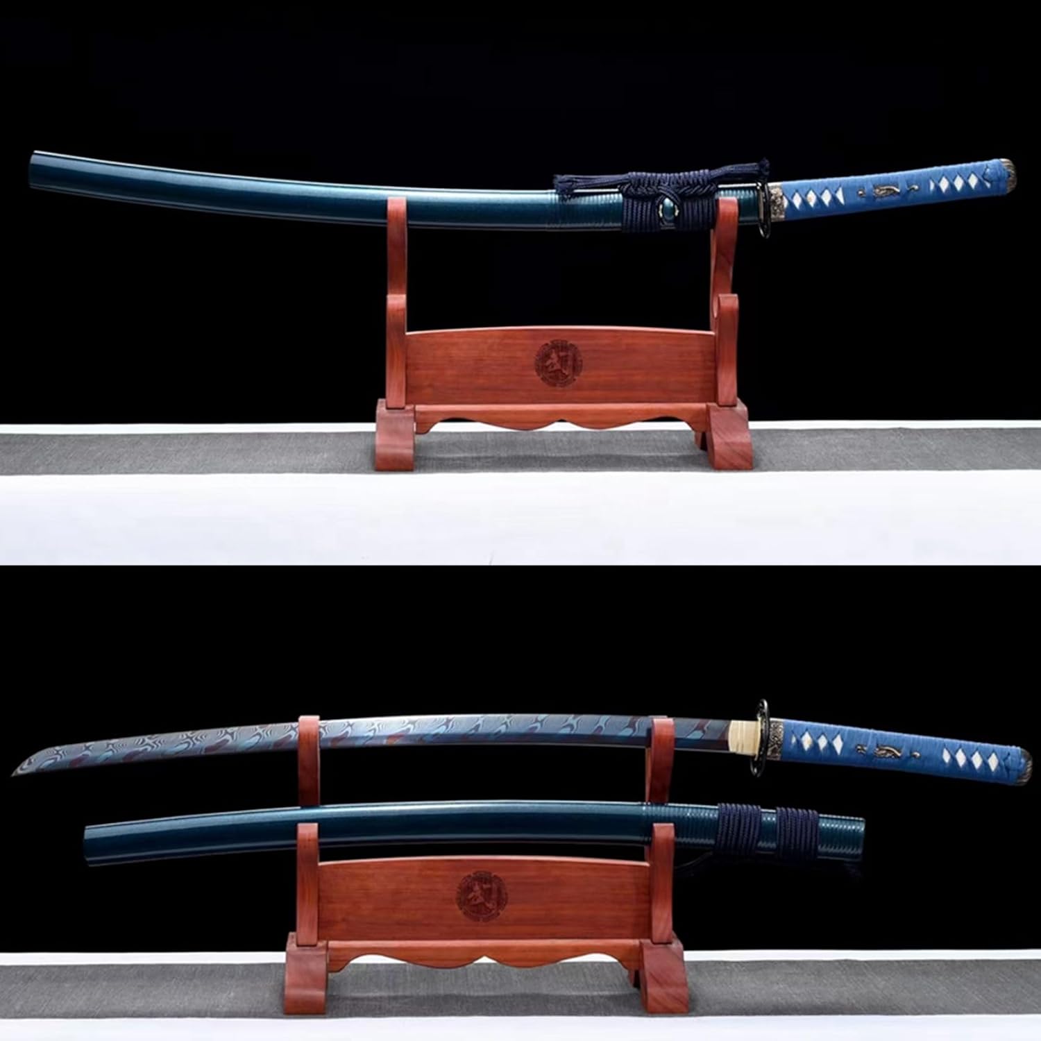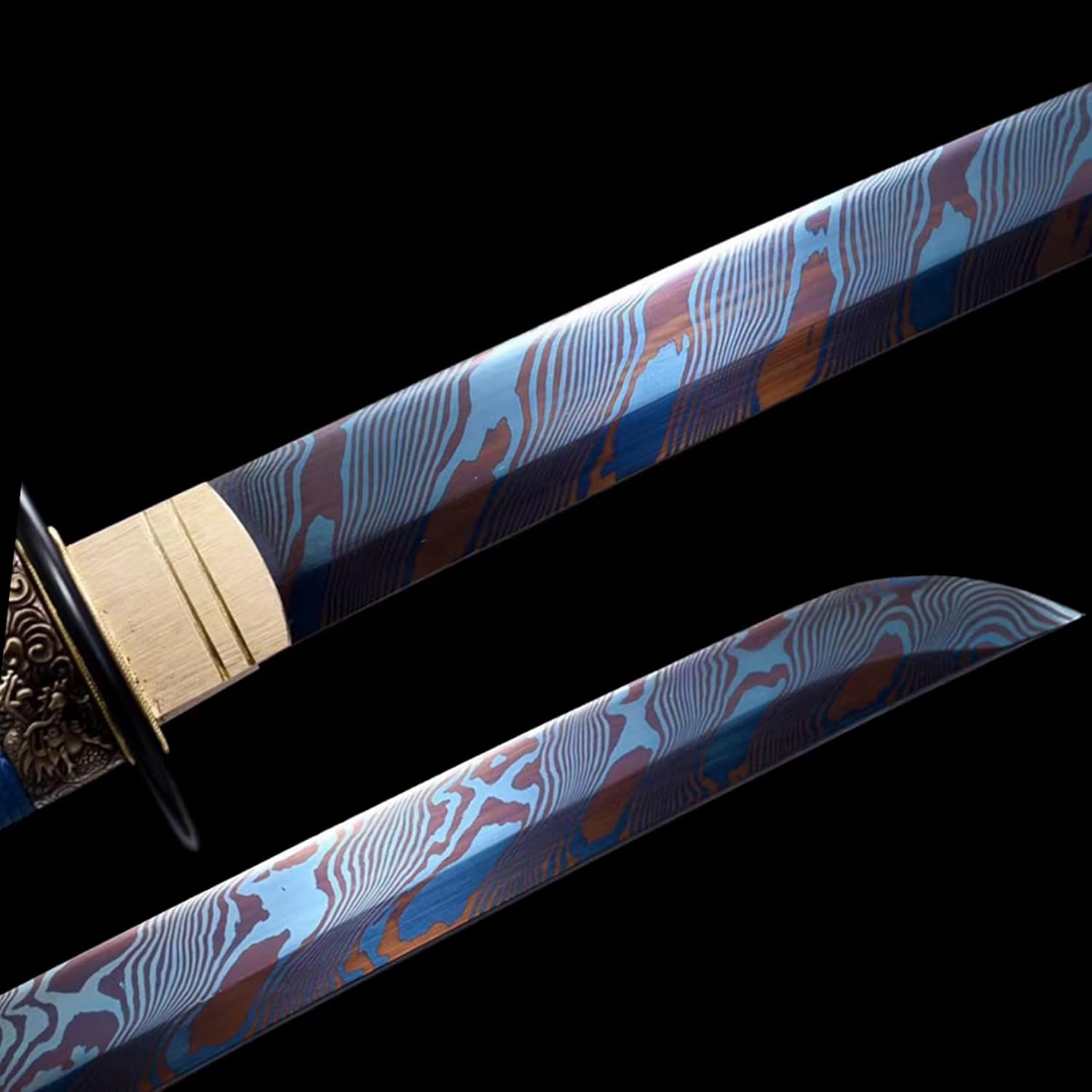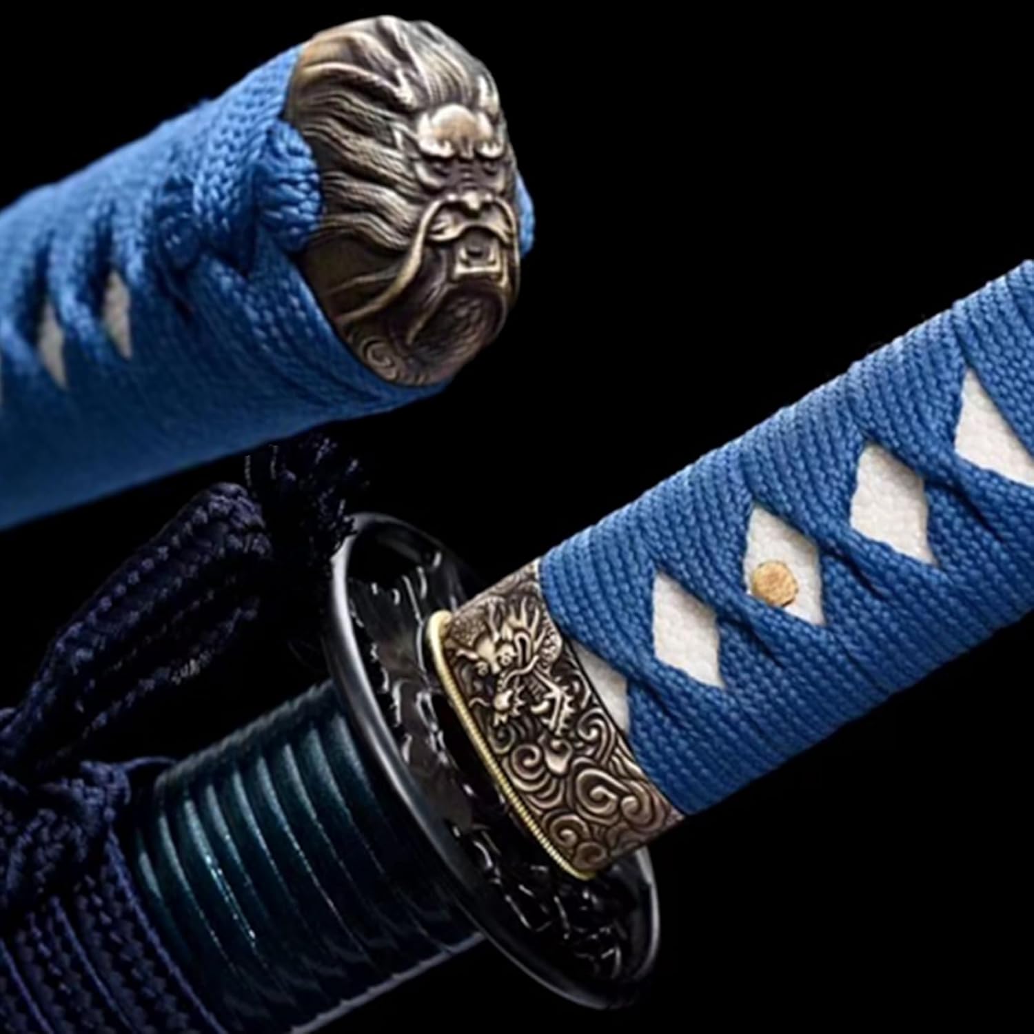 【Buona Materia】: questa katana è realizzata in acciaio dal modello centinaia di volte raffinato con una lama sfumata blu grigliata, che ha elevata durezza e tenacità. Il paramano è realizzato in ferro con intagli squisiti e il fodero è un fodero in legno massello mezzo rattan dipinto con vernice blu glitterata. Katana di alta qualità realizzata con i migliori materiali. 【Eccellente sensazione alla mano】: il manico è realizzato in pelle di pesce perla e corda avvolta a mano, che fornisce una presa migliore. Perfetta combinazione di eleganza e potenza, questa katana è progettata pensando all'equilibrio e alla praticità, consentendo all'utente di padroneggiarla facilmente ed esercitare la massima forza, soddisfacendo sia gli appassionati che i collezionisti di arti marziali. 【Lama fatta a mano】 La lama di questa spada è forgiata a mano, mostrando una lavorazione squisita che non ha eguali nel settore. La sua lama affilata taglia l'aria senza sforzo, rendendola ideale per la pratica della spada o l'allenamento nelle arti marziali. La lama affilata con la sua luce fredda è molto interessante per tagliare e pugnalare. 【Artigianato straordinario】 Numerosi trattamenti termici e processi di tempra assicurano che la lama sia robusta, durevole e resistente alla corrosione. Sia per l'uso quotidiano che per la raccolta a lungo termine, può mantenere la sua qualità e lucentezza originali. Con squisita fattura, pregevole fattura e bella forma, è una bellissima opera d'arte. Che si tratti di collezionare, giocare, fare regali o divertirsi, è la felicità di un uomo! 【Patrimonio culturale】 La katana non è solo un'arma o un'opera d'arte, ma porta anche una ricca connotazione culturale giapponese. Rappresenta lo spirito di coraggio, lealtà e onore dei guerrieri giapponesi ed è una parte importante della cultura giapponese. Possedere una spada da samurai è come possedere un pezzo di storia e patrimonio.