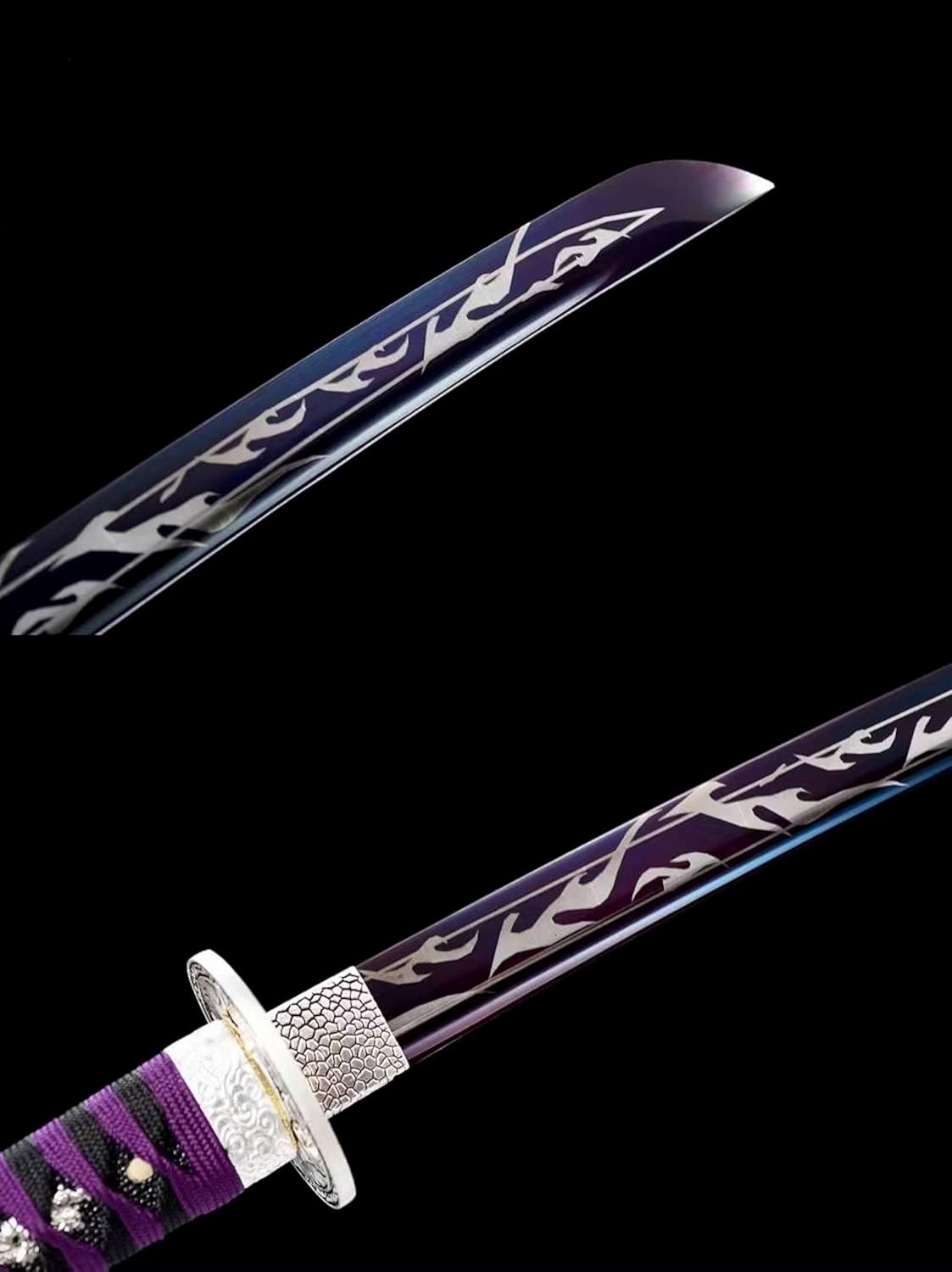 La lama è forgiata in acciaio al manganese di alta qualità con una durezza fino a 60°. Lunghezza totale: 103 cm, lunghezza lama: 71 cm, lunghezza manico: 26,5 cm, larghezza lama: 3,2 cm. Il design di queste dimensioni non solo soddisfa i tradizionali standard estetici delle spade da samurai, ma tiene conto anche della comodità e della flessibilità dell'uso quotidiano. Il manico è avvolto da una corda morbida, si adatta al palmo della mano ed è facile da impugnare. Ha una buona resistenza allo scivolamento e all'usura e offre il massimo comfort durante l'utilizzo. La katana viene fornita con un fodero in legno per riporre in sicurezza la lama.