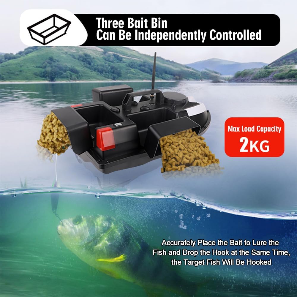 Lunga durata: dotato di una batteria ricaricabile di grande capacità, basso consumo energetico e lunga durata. Supporta un allarme di bassa carica per ricordare agli utenti di richiamare la barca in tempo e di non perderla. Design a triplo contenitore: adotta il design a triplo contenitore controllato indipendentemente. La capacità di carico è di circa 2 kg, è possibile controllare la nidificazione dei punti fissi a piacimento. Qualità affidabile: realizzato in ABS di alta qualità, resistente all'usura e agli urti. Una cabina completamente chiusa con uno scafo aerodinamico riduce la resistenza all'acqua e garantisce una maggiore stabilità. Con luce anteriore ad alta luminosità e fanale posteriore, che migliora la visibilità durante la guida notturna, riconosce facilmente la direzione di navigazione e garantisce un posizionamento preciso.