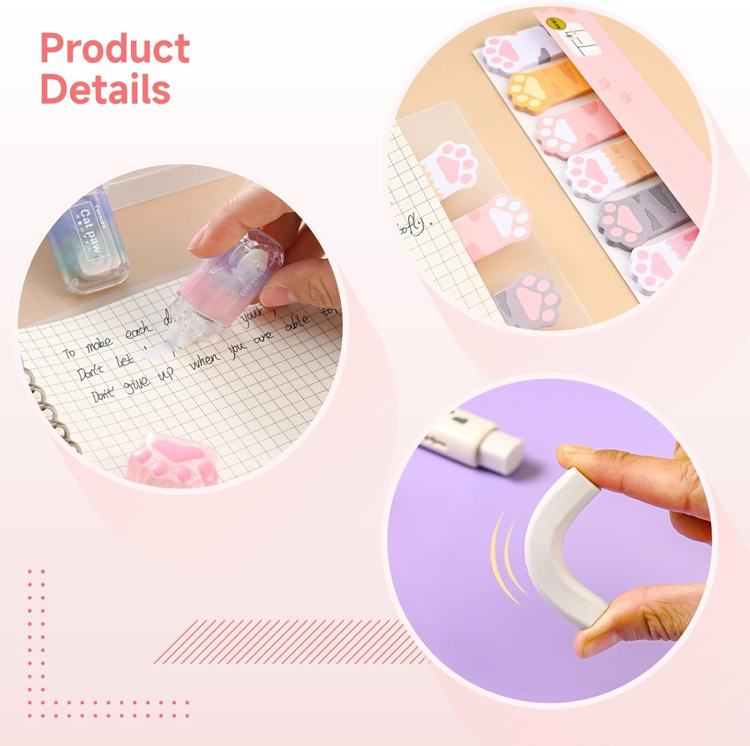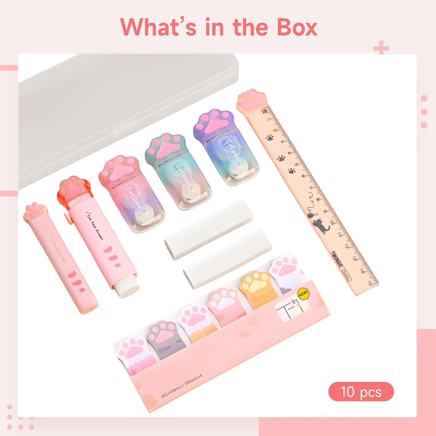 Collezione completa di cancelleria: il set di dieci pezzi presenta disegni di zampe per gatti; il kit viene fornito con evidenziatori, un righello e un taglierino; ha tutto ciò di cui hai bisogno per il lavoro o la scuola Stile dolce: le stampe dolci e bianche aggiungono giocosità ai must-have; gli accessori per gatti portano divertimento alle attività quotidiane; per chi ama la cancelleria Resistenza: l'uso prolungato è reso possibile grazie alla struttura in plastica; le parti superiori a forma di zampe garantiscono una presa comoda; gli strumenti mantengono la qualità quotidiana Veloce da trovare: gli accenti mostrano le impronte delle zampe, che lo rendono facile da trovare; la dimensione lo rende facile da riporre; crea uno spazio di lavoro che ha un design intelligente Pratico: combina l'utilità con uno stile divertente per studenti, pianificatori o personale d'ufficio; un ottimo regalo per collezionisti e persone che amano i gatti