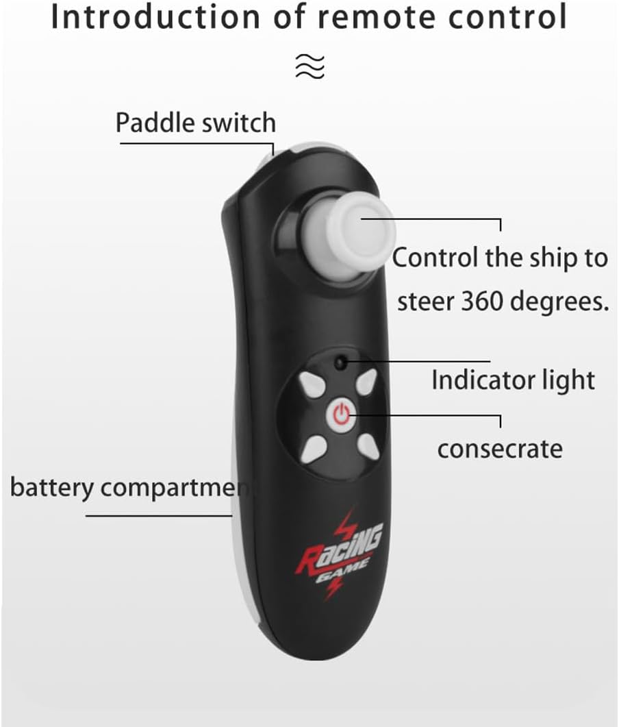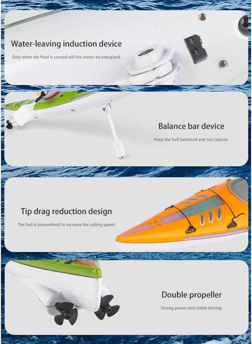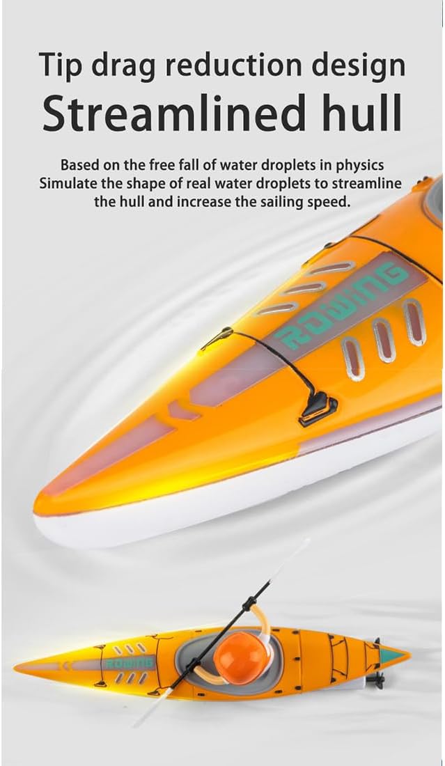 Kayak RC con alta e bassa velocità: prendi il pieno controllo delle tue avventure acquatiche! Questo kayak RC naviga sapientemente in avanti, indietro, a sinistra e a destra. Con le modalità selezionabili ad alta e bassa velocità, puoi goderti una dolce crociera o un emozionante e veloce salto sull'acqua, rendendo ogni sessione di gioco dinamica e divertente Potente batteria con ricarica rapida e riproduzione estesa: dotata di una batteria al litio ad alta velocità che supporta la ricarica rapida (circa 30 minuti). Goditi una durata prolungata con una singola carica, ricco di forti raffiche di potenza per una velocità emozionante quando ne hai bisogno, riducendo al minimo i tempi di attesa e massimizzando il tempo di riproduzione Compatto e sicuro per il divertimento in acqua: le sue dimensioni compatte sono perfettamente progettate per vasche da bagno interne, piscine per bambini e piscine gonfiabili. Lasciate che i vostri ragazzi si godano l'emozione della navigazione telecomandata in un ambiente sicuro e controllato, lontano dai pericoli delle acque libere Interruttore intelligente attivato dall'acqua per una sicurezza senza sforzo: dispone di un interruttore di alimentazione automatico intelligente che si attiva al contatto con l'acqua e si spegne quando viene estratto. Questo funzionamento a mani libere lo rende incredibilmente sicuro e facile da usare per i giocatori, prevenendo eventuali rischi operativi Perfetto per gite in famiglia e legame genitore-figlio: un compagno ideale per gite in famiglia autunnali al parco o al lago. Questo kayak interattivo è progettato per favorire la preziosa interazione genitore-figlio, creando ricordi gioiosi mentre corri e navighi insieme sull'acqua