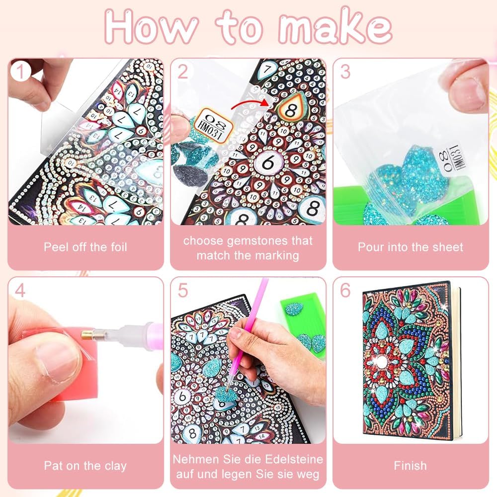 【Facile da fare】 Pittura con diamanti per quaderno mandala A5 super facile da realizzare, basta attaccare i diamanti sulla copertina, il taccuino finito risulta, squisito e brillante. Quaderno Mandala A5 Diamond Painting Adatto a bambini, adulti e principianti. 【Materiale di alta qualità】 Taccuino Mandala A5 Diamond Painting Robusta copertina rigida priva di acidi e carta bianca color crema, la carta spessa impedisce all'inchiostro di fluire attraverso le pagine, durevole e flessibile. Dipingere con diamanti. Il quaderno Mandala A5 con pittura a diamante è un regalo speciale per la famiglia e gli amici. Più divertimento nella vita: il quaderno con pittura a diamante A5 mandala fatto a mano può portare a un senso di realizzazione, ridurre lo stress, bilanciare gli sbalzi d'umore, aumentare la fiducia in se stessi e promuovere la pazienza. Quaderno Mandala A5 Diamond Painting Adatto agli anziani. Allo stesso tempo, puoi anche divertirti con la famiglia con questo taccuino Mandala A5 Diamond Painting Diamond Painting Quaderno individuale. Anche le tue bambine adoreranno il libro di pittura con diamanti. 【Notebook multiuso】 Notebook Mandala A5 Diamond Painting Scrittura comoda. Quaderno Mandala A5 Diamond Painting Adatto per schizzi, pittura, musica, insegnamento, viaggi, affari, appunti, diario, piani giornalieri, settimanali e mensili e altro ancora. Regalo creativo: quaderno mandala A5 con pittura a diamante. Regalo ideale per famiglia, amici, colleghi, compagni di classe, studenti, insegnanti, educatori per compleanni, Natale, Capodanno, San Valentino, anniversari e festività.