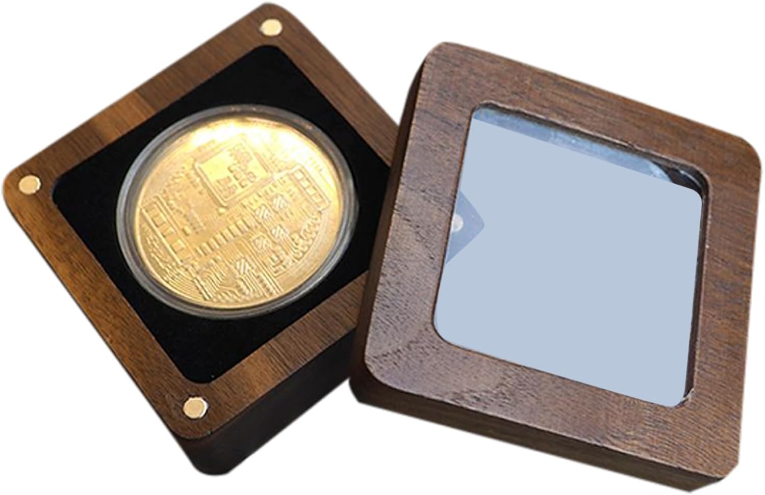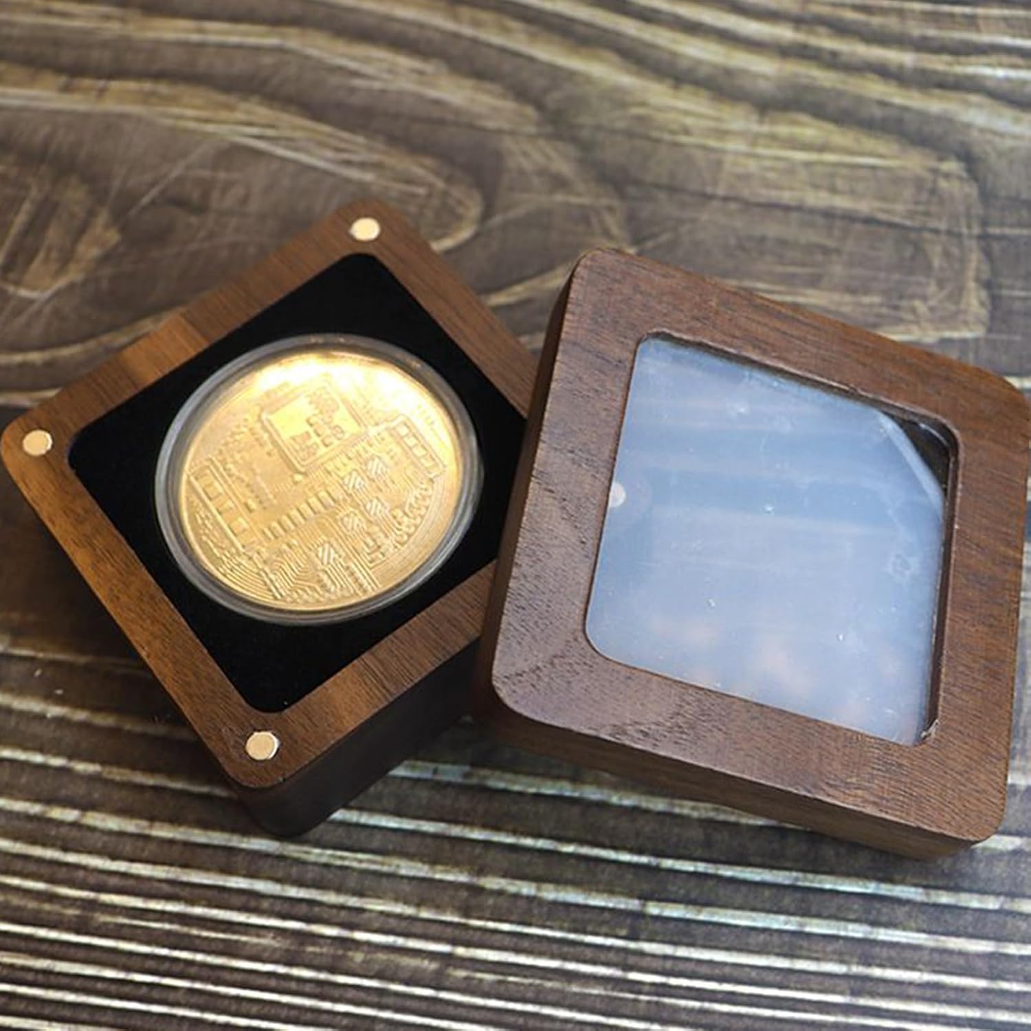 Presentazione senza soluzione di continuità: realizzata con un design a finestra, questa scatola in legno per monete solleva senza sforzo l'estetica; accendere e spegnere il display per ammirare direttamente la moneta commemorativa, la moneta d'argento o le medaglie Funzione di protezione migliorata: con rivestimento di qualità che fornisce buone prestazioni di ammortizzazione, questa scatola di visualizzazione in legno previene efficacemente i danni dovuti allo scivolamento e alla collisione, consentendo di scegliere tra diversi colori per soddisfare le preferenze personali Design portatile: mantieni la tua moneta sicura e facilmente accessibile con questa elegante e versatile scatola in legno per monete. Perfetto per mostrare la tua collezione a casa o all'aperto Ottimo regalo: mostra apprezzamento per la persona amata con una bella scatola in legno per monete, un regalo pratico per compleanni, Natale, Pasqua o feste dell'anno con familiari e amici Espositore e conservazione sicuri: costruito con una bella grana naturale, questa scatola per monete in noce scuro fornisce una protezione efficace per la collezione all'interno, migliorando il suo fascino di colore scuro