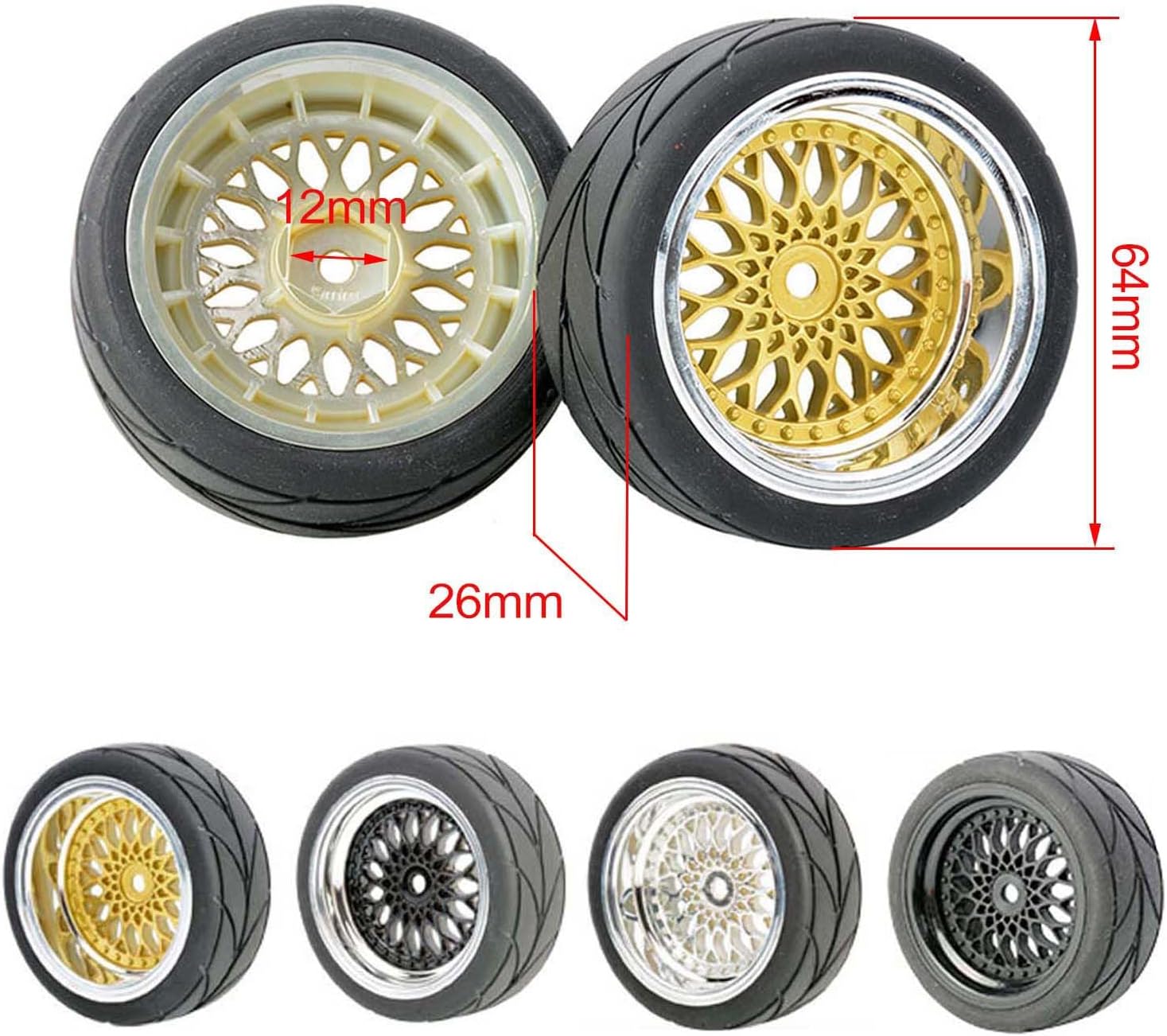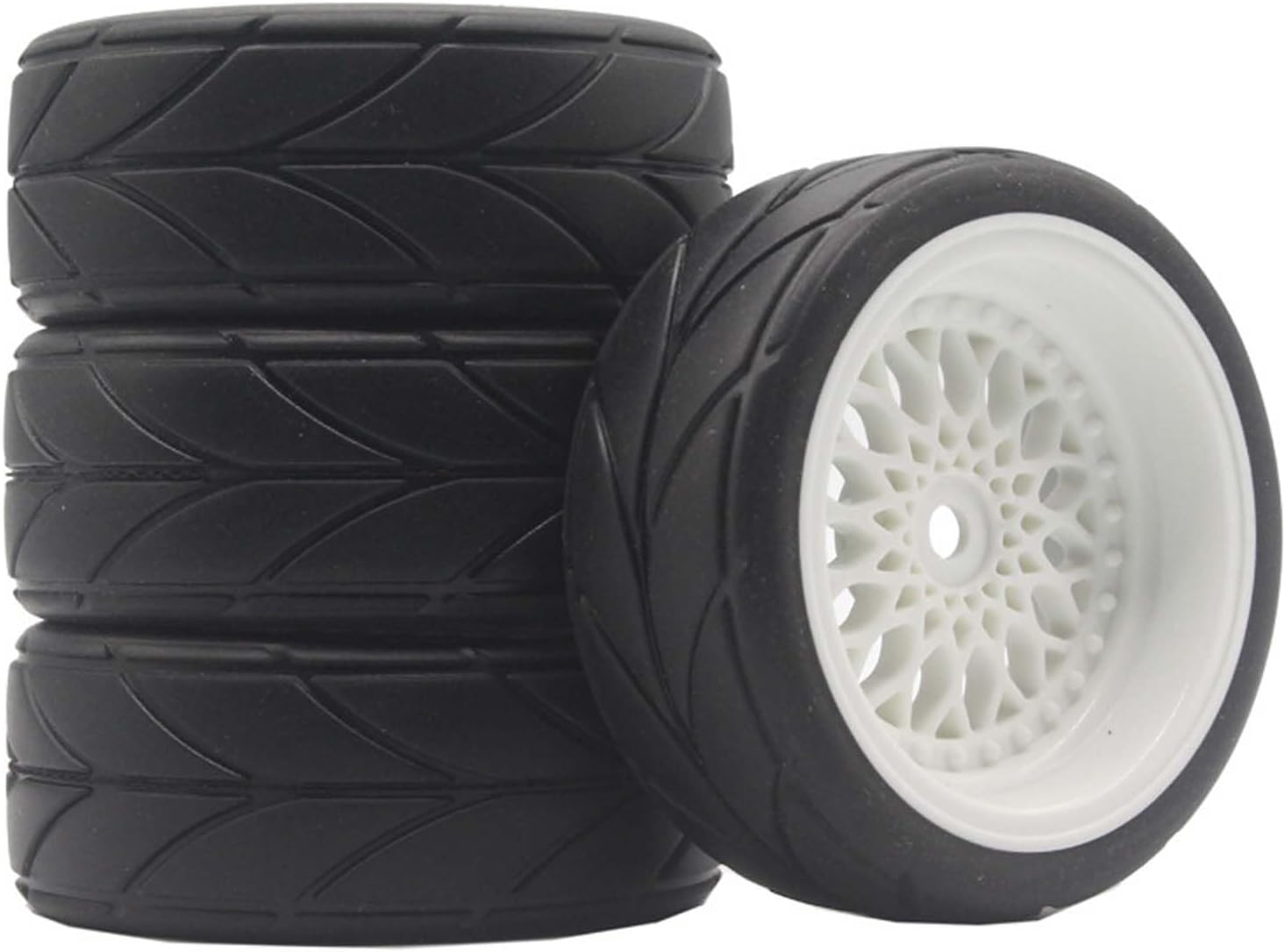 Dimensione della ruota: diametro esterno: 52 mm/2,05 pollici, larghezza: 26 mm/1,02 pollici, dimensione esagonale: 12 mm/0,47 pollici, profondità di inserimento: 3 mm/6 mm/9 mm per opzionale Set di pneumatici e ruote di ricambio adatto per auto da corsa RC 1: 10 On-Road, Drift Auto, Touring Car Per ogni pneumatico è inserita una spugna, facile da installare e durevole da usare. Gli pneumatici con motivo frecce sono in gomma, i cerchi sono in plastica, un sostituto perfetto per il tuo kit. NOTA: si prega di controllare attentamente le dimensioni della ruota prima dell'acquisto per evitare che non siano adatte alla tua auto radiocomandata.