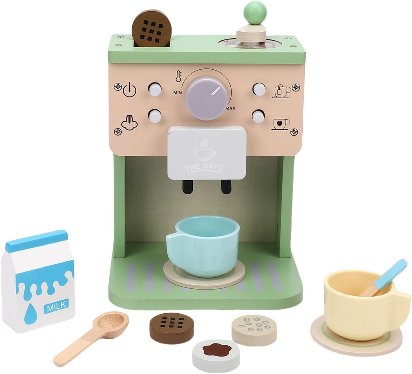[Gioco di ruolo interattivo] Incoraggia la creatività e la coordinazione occhio-mano attraverso il gioco fantasioso con il nostro coinvolgente set di caffettiera in legno. [Costruzione di qualità] Realizzato con legno di prima qualità e materiali sicuri per un'esperienza di gioco piacevole e che dura. [Valore educativo] Migliora il vocabolario e rafforza le abitudini alimentari sane attraverso scenari di gioco di ruolo divertenti e interattivi. [Aggiunta versatile] Completa qualsiasi cucina giocattolo, rendendola un o una ricompensa meravigliosa per compleanni, vacanze o occasioni speciali. [Dimensione perfetta] Misura circa 15 x 12 x 21 cm, ideale per le mani dei più piccoli che vogliono esplorare e godersi le loro avventure culinarie.