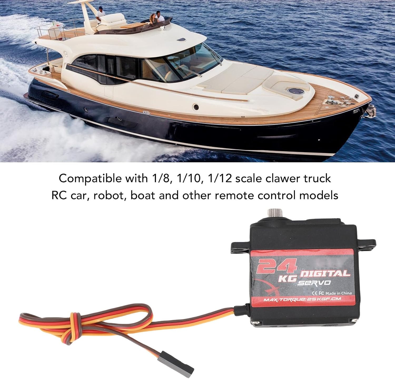 Keenso Servo Digitale Metal Gear, Angolo di Rotazione di 180°, Servo Horn 25T Compatibile con 1/8 1/10 1/12 RC Car Boat Robot Truck (24kg)
