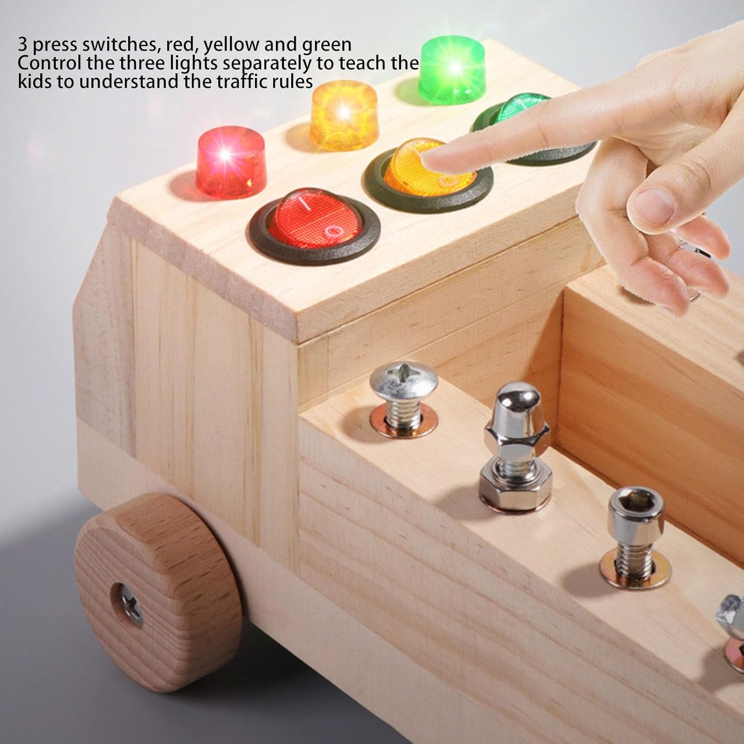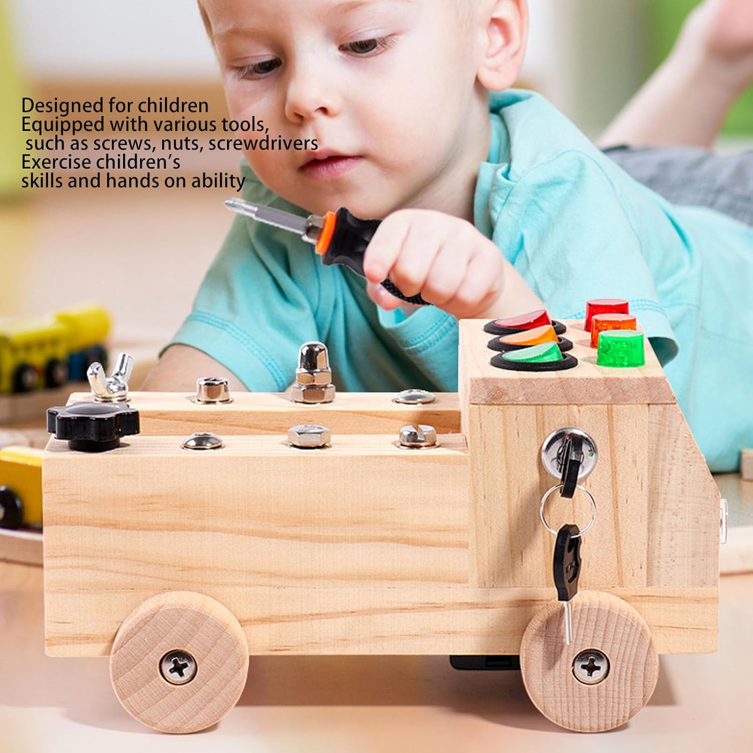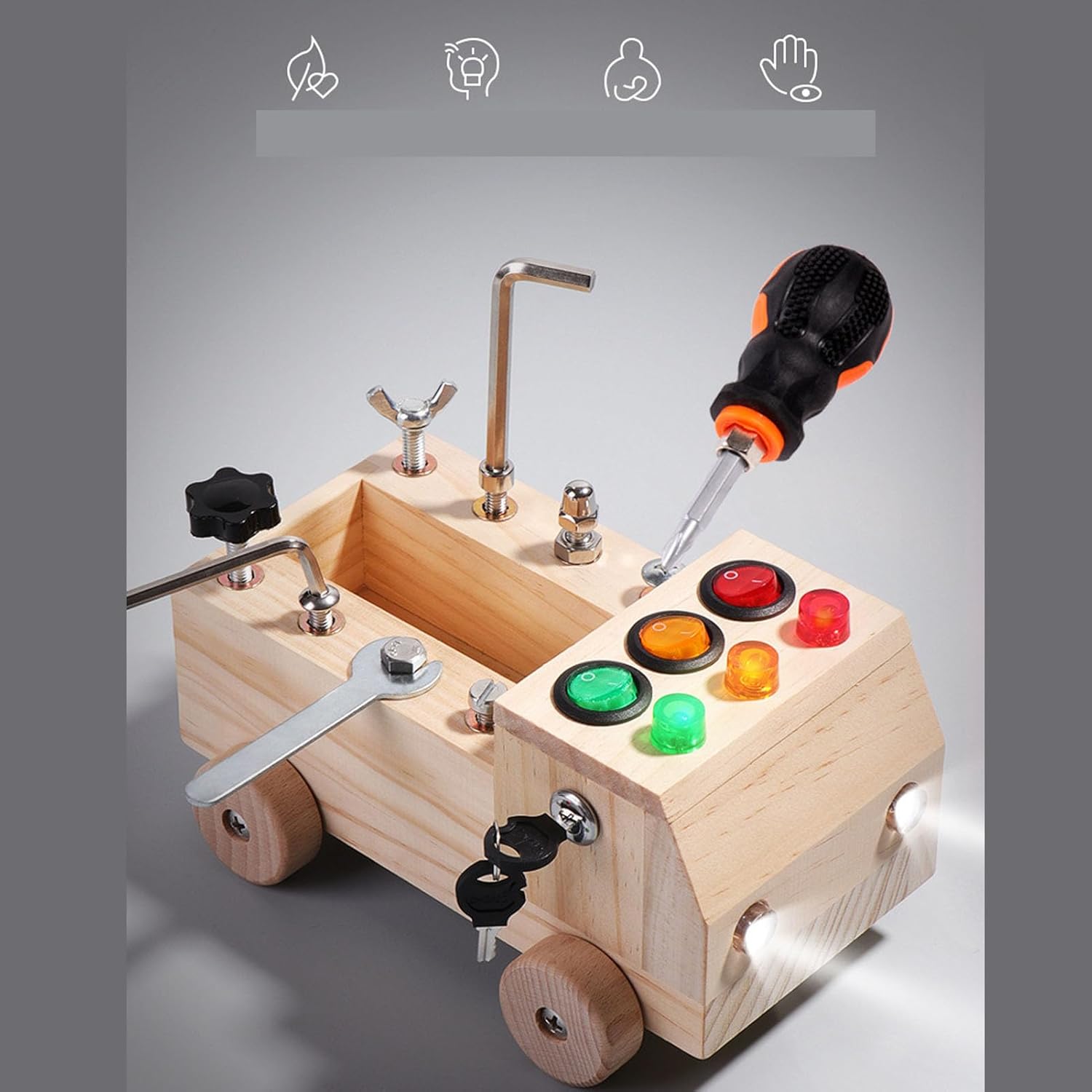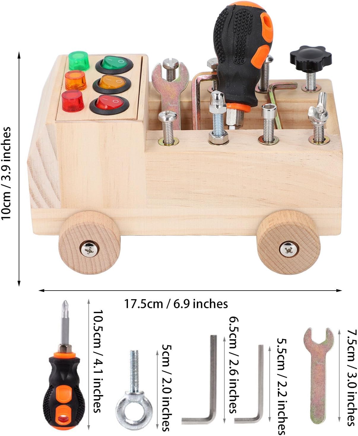 [Abilità e creatività migliorate] È stato dimostrato che la tavola sensoriale migliora le capacità motorie, le capacità di risoluzione dei problemi, la logica, l'immaginazione, l'attenzione e la coordinazione dei bambini attraverso giochi educativi e coinvolgenti. [Intrattenimento portatile per bambini] Progettato per il divertimento in movimento, questo set di giocattoli compatto è per i viaggi con dimensioni di 17,5x10 cm. si inserisce facilmente in zaino per l'intrattenimento durante viaggi, picnic o in viaggio, ideale per vari ambienti come aerei, automobili e ristoranti. [Promuovi l'apprendimento e l'immaginazione] Accendi la creatività con il set di strumenti dei nostri bambini. utilizzando il cacciavite e la testa esagonale, i bambini imparano a conoscere varie viti, migliorando le loro capacità di riconoscimento e abilità di vita. [Costruzione durevole e ] Realizzata in legno di pino, la nostra tavola sensoriale garantisce longevità e sicurezza. ogni angolo è meticolosamente lucidato per rimuovere gli spigoli vivi, offrendo un'esperienza di gioco per i bambini. (sono necessarie due batterie AA, non incluse) [Infinite opportunità di apprendimento e gioco] Il set di tavolette per cacciaviti combina una tavoletta per cacciaviti e un giocattolo con interruttore della lampada, favorendo la percezione del colore e migliorando le capacità motorie mentre i bambini assemblano le ruote del camion in modo .