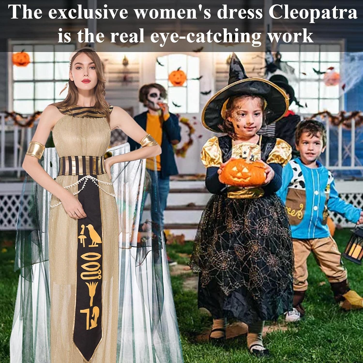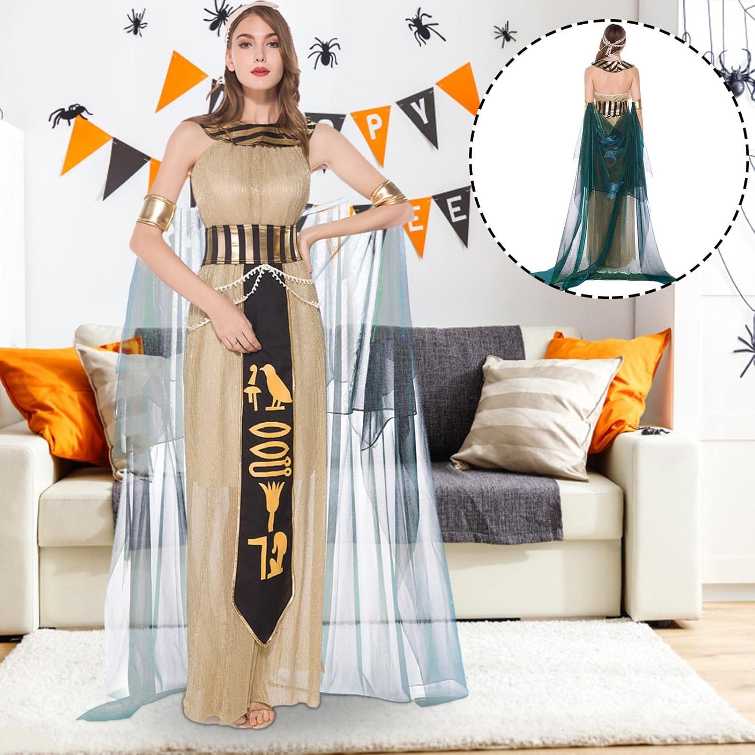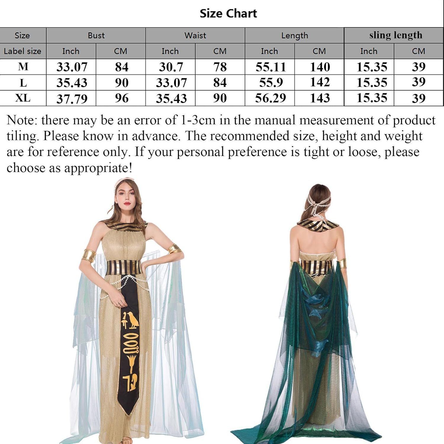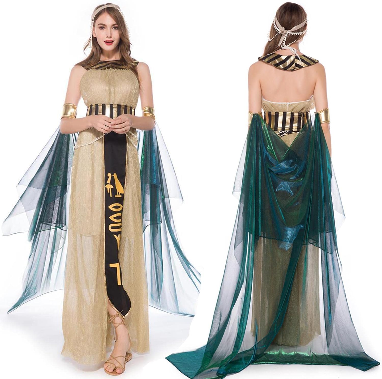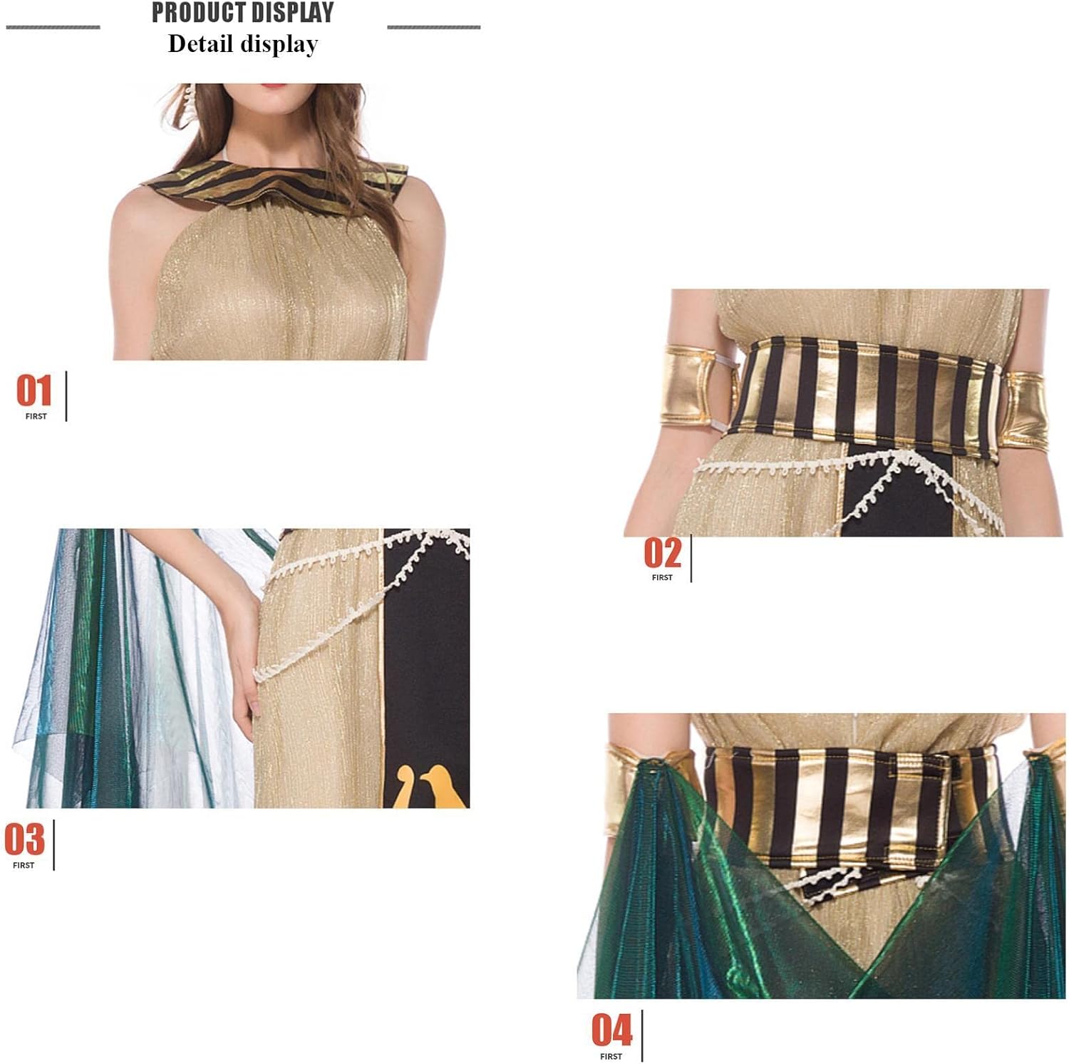 ✺[Nuovo design in stile egiziano] Progettati nello stile dell'antica regina egiziana, i costumi di Halloween per donna sono eleganti, sexy, belli, senza maniche e con una perfetta vestibilità slim. ✺[Materiale di alta qualità] Cleopatra è caratterizzato da un orlo lungo e ampio per un facile movimento, morbido, confortevole e traspirante, realizzato in tessuto spandex di alta qualità. ✺[Esecuzione squisita] Non facile da sbiadire deformare, il costume da donna Cleopatra è cucito con squisita fattura, dettagli raffinati e abbinamenti di colori naturali. ✺[Ampia gamma di usi] Per distinguerti dalla massa, le donne egiziane in costume possono essere utilizzate per Halloween, Natale, feste di ballo, cosplay, vestiti per programmi TV e altro ancora, perfetto per le vacanze. ✺[Grandi regali di festa] Creando un look da festa unico e attraente, il costume da dea da donna è adatto per essere un regalo meraviglioso per amici, vicini e famiglia, rendendoti orgoglioso di trascorrere il carnevale come una bellezza affascinante.