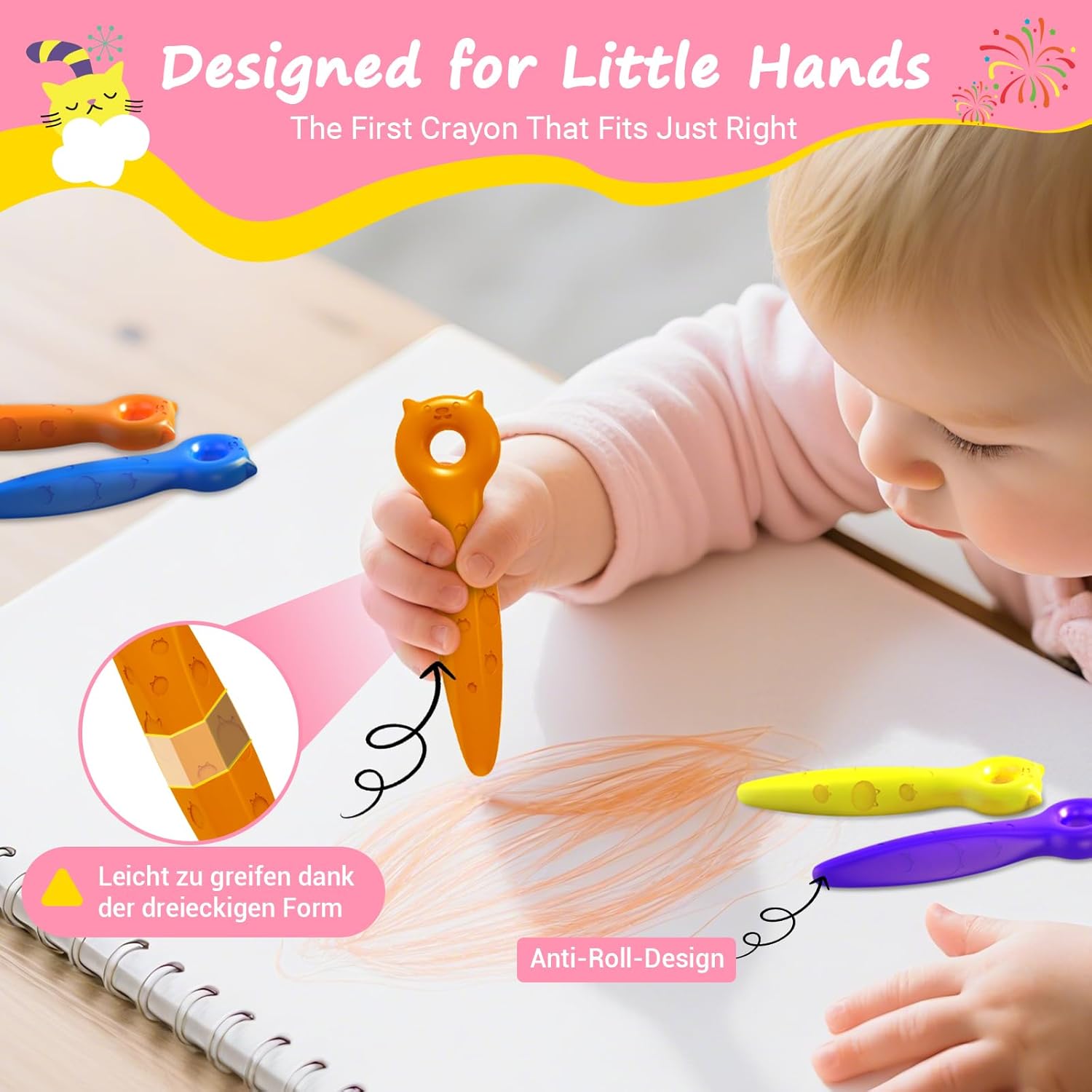 【Un regalo perfetto per i piccoli artisti】Cerchi i pastelli perfetti per i bambini? Questi pastelli a cera spessi a forma di gatto sono regali di compleanno o di festa indimenticabili. Amati dai più piccoli e apprezzati dai genitori, trasformano ogni momento dedicato al disegno in una gioiosa scoperta 【I più piccoli adoreranno la forma di un gatto stravagante】Questi pastelli per bambini hanno la forma di gattini giocosi, rendendo ogni sessione di colorazione più divertente e fantasiosa. Più che strumenti per colorare, sono giocattoli interattivi che stimolano la creatività e coinvolgono i piccoli artisti 【Impugnatura facile per le manine dei più piccoli】 Appositamente progettati come pastelli a cera facili da impugnare per i bambini, le forme triangolari si adattano perfettamente alle loro manine, aiutando a sviluppare le prime capacità motorie. Pastelli ideali per i bambini da 1 a 3 anni che iniziano il loro percorso creativo 【12 colori vivaci che scatenano la gioia】 Questo set da colorare per bambini include 12 pastelli vivaci e lavabili che scorrono fluidamente sulla carta. Dagli scarabocchi ai primi capolavori, questi pastelli per bambini incoraggiano la libera espressione senza dover pulire in modo disordinato 【Sicuro, senza sporcare e approvato dai genitori】 Questi pastelli atossici per bambini soddisfano gli standard di sicurezza ASTM D-4236. Sono lavabili, non macchiano la pelle o le superfici e sono resistenti alla rottura: ideali per bambini piccoli, neonati e piccoli artisti alle prime armi 【Acquisto senza rischi】Per qualsiasi domanda prima o dopo l'ordine, contattateci tramite "Messaggio dall'acquirente e dal venditore". Forniamo assistenza clienti entro 24 ore. Inoltre, se ricevete la merce e riscontrate problemi di qualità, potete contattarci per un reso o un cambio