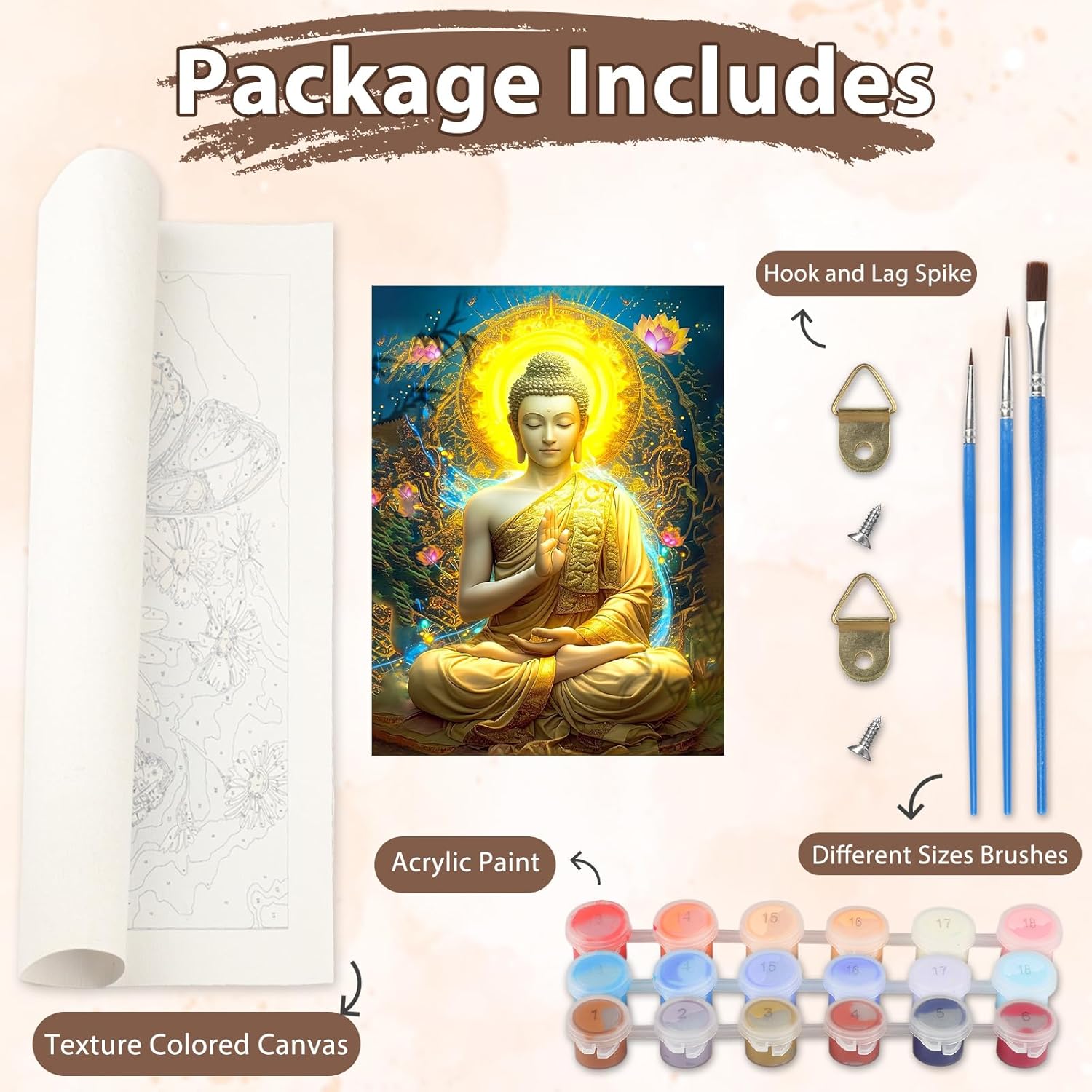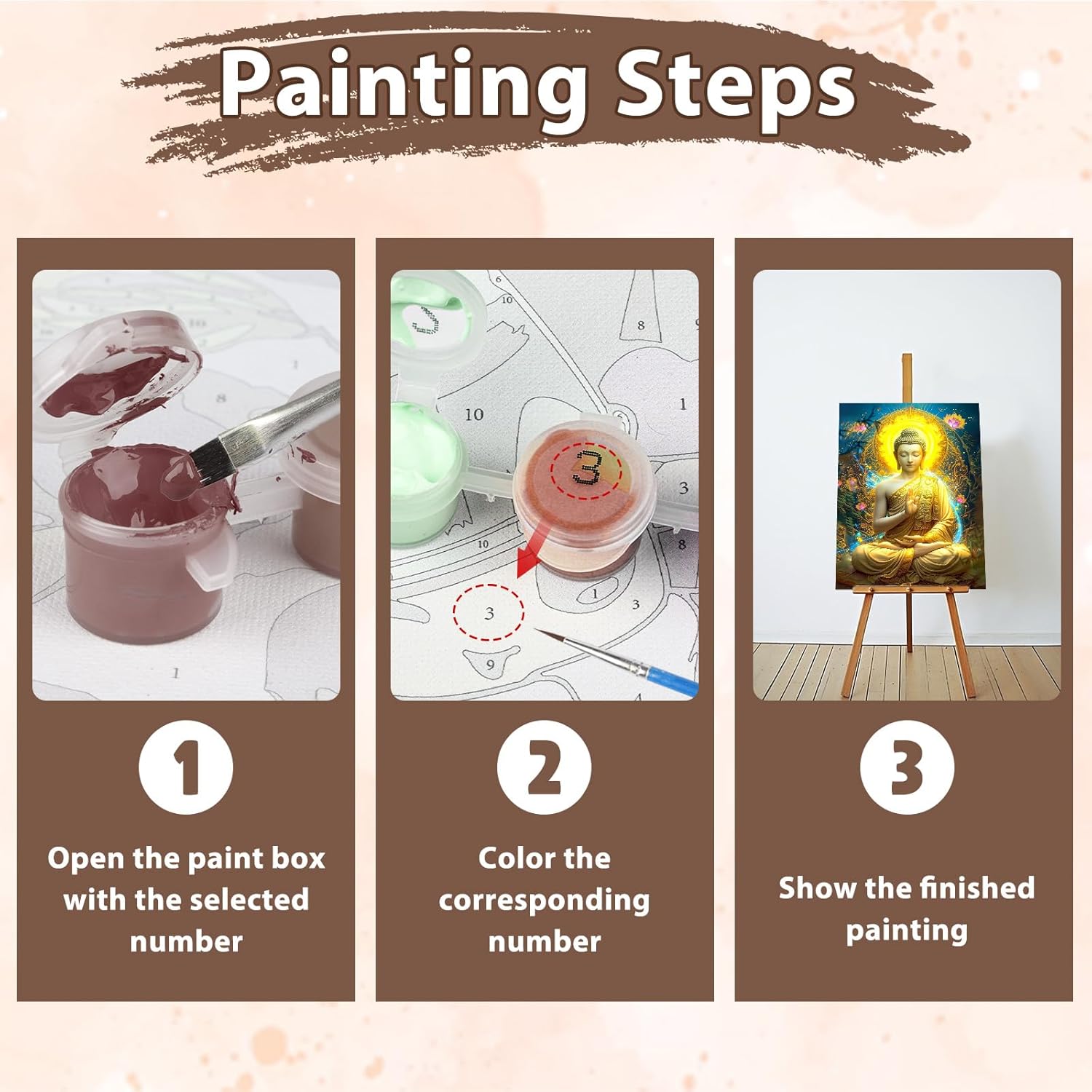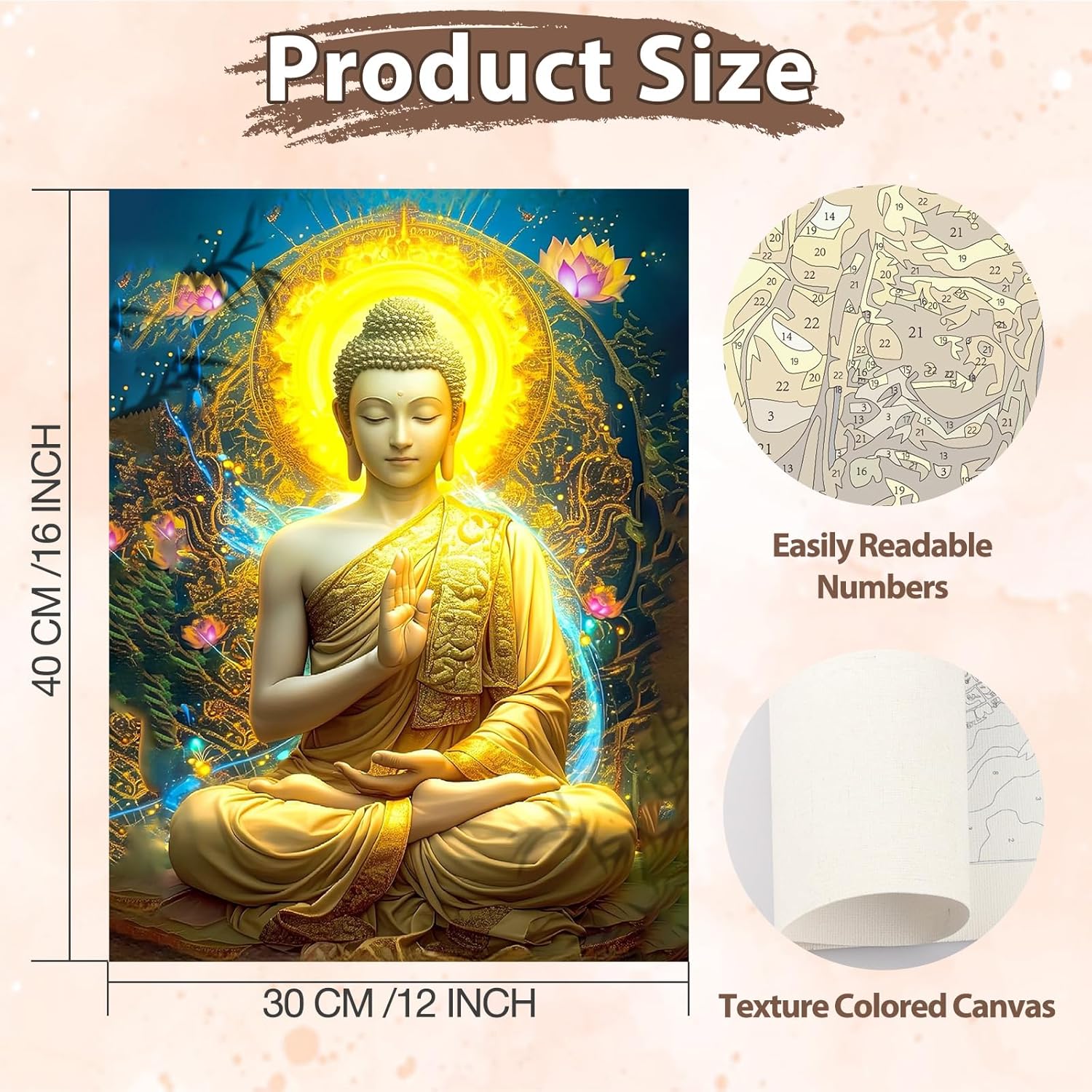KEYIFA Buddha Buddista Dipingere con i Numeri per Adulti, Painting by Numbers Kit con Pennelli e Acrilico Pigmento, Fai da te Olio La Pittura di Numeri Kit, Decora la Casa 30x40cm