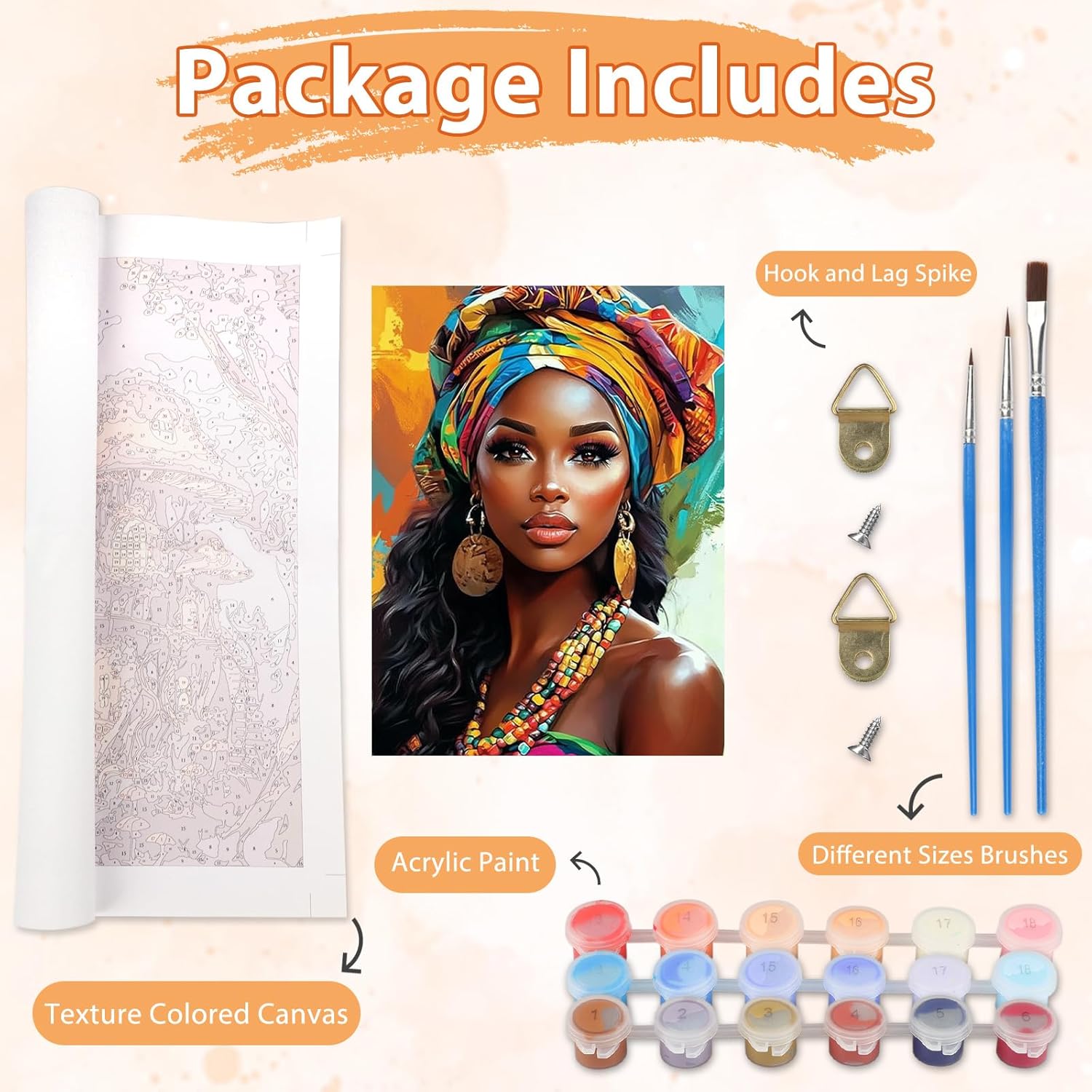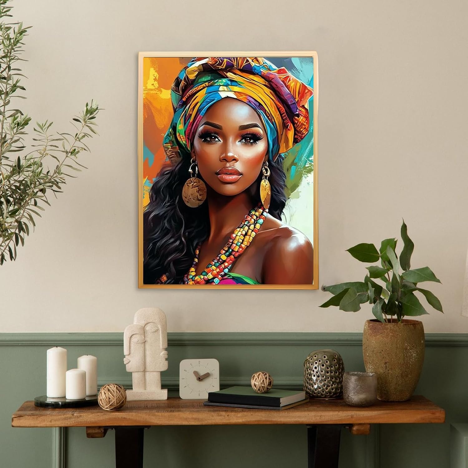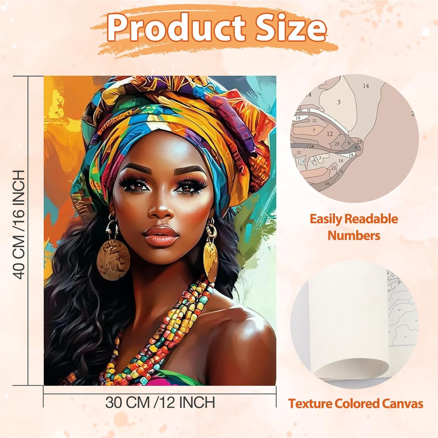KEYIFA Donna Turban Dipingere con i Numeri per Adulti, Gioielli Painting by Numbers Kit con Pennelli e Acrilico Pigmento, Fai da te Olio La Pittura di Numeri Kit, Decora la Casa 30x40cm