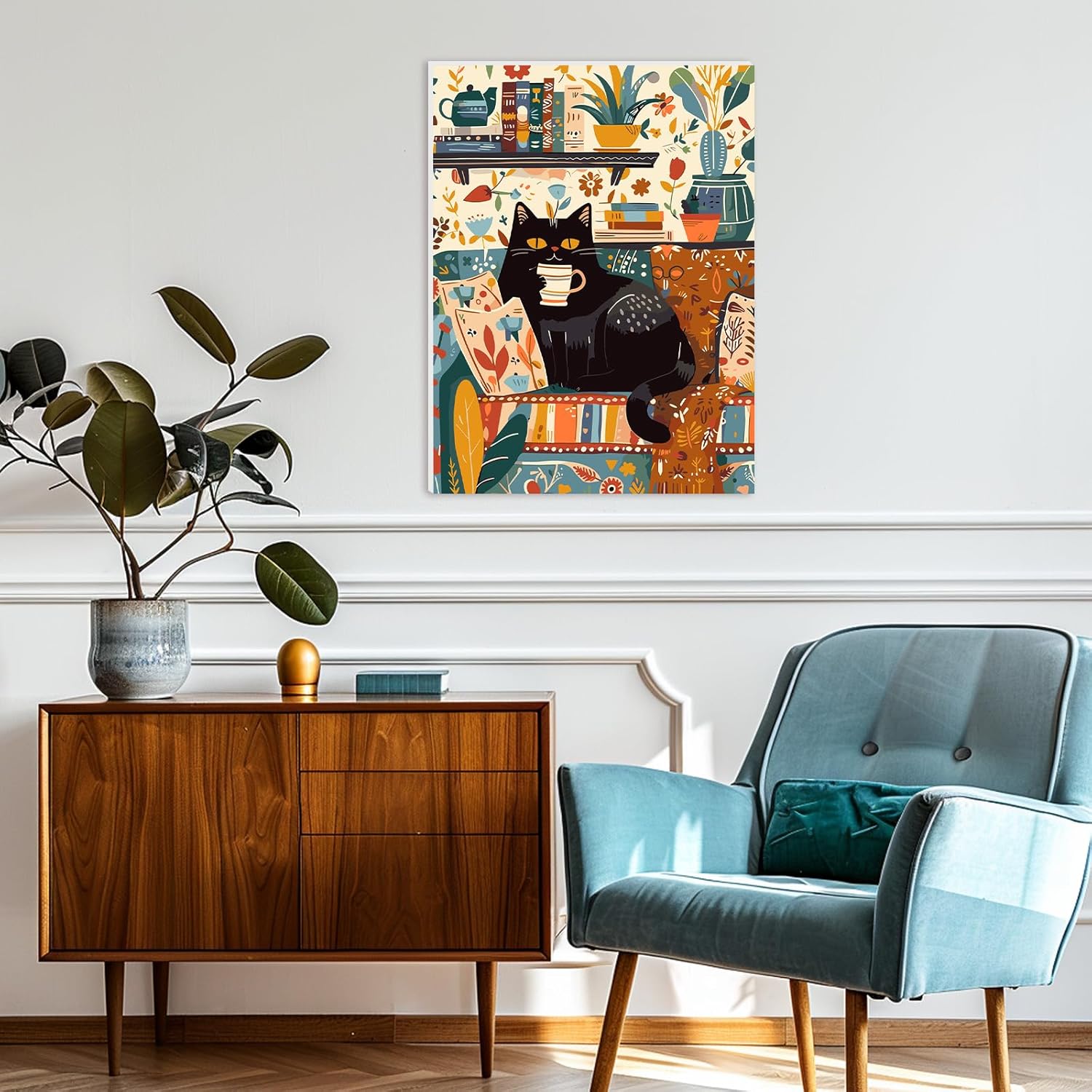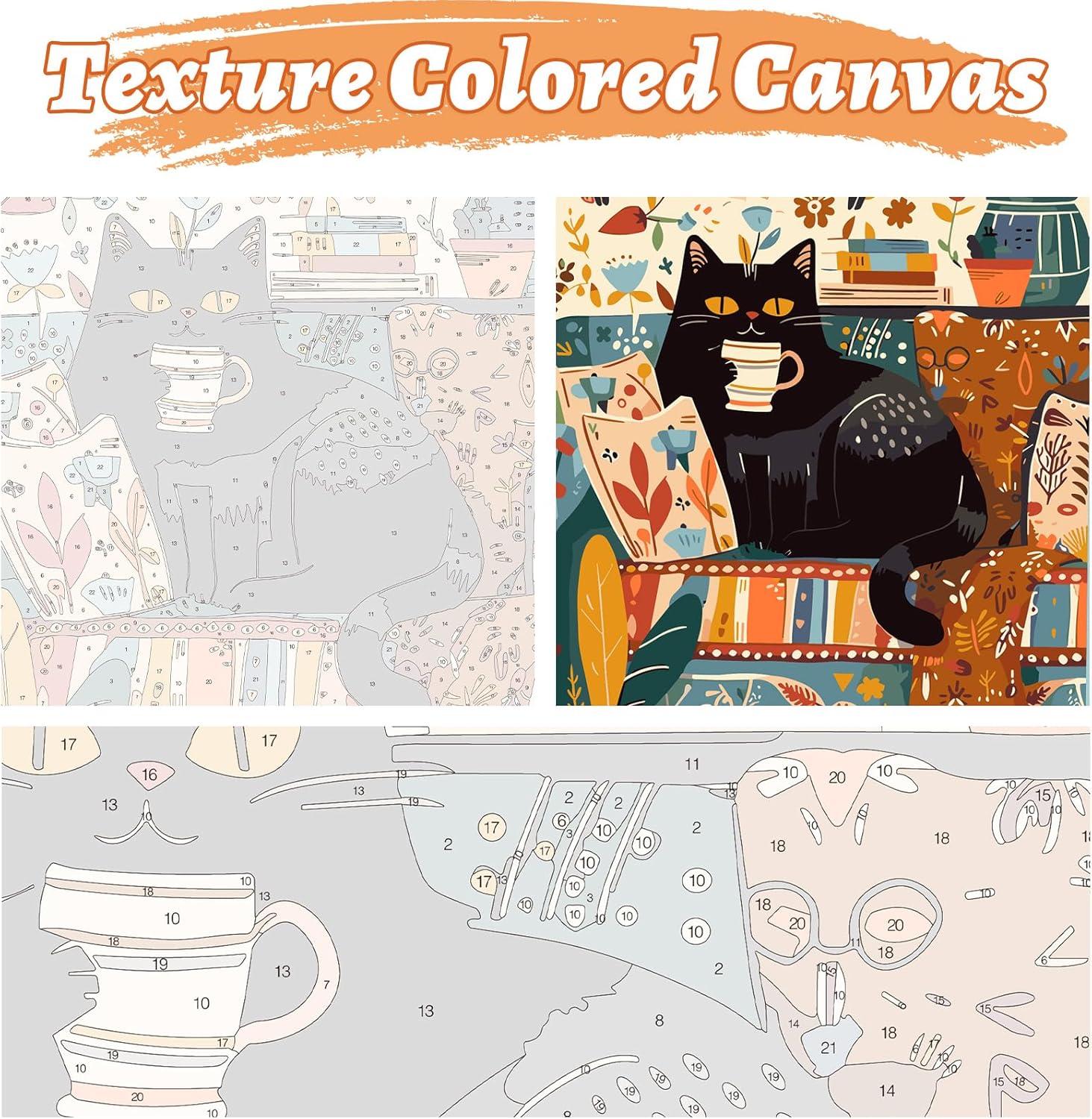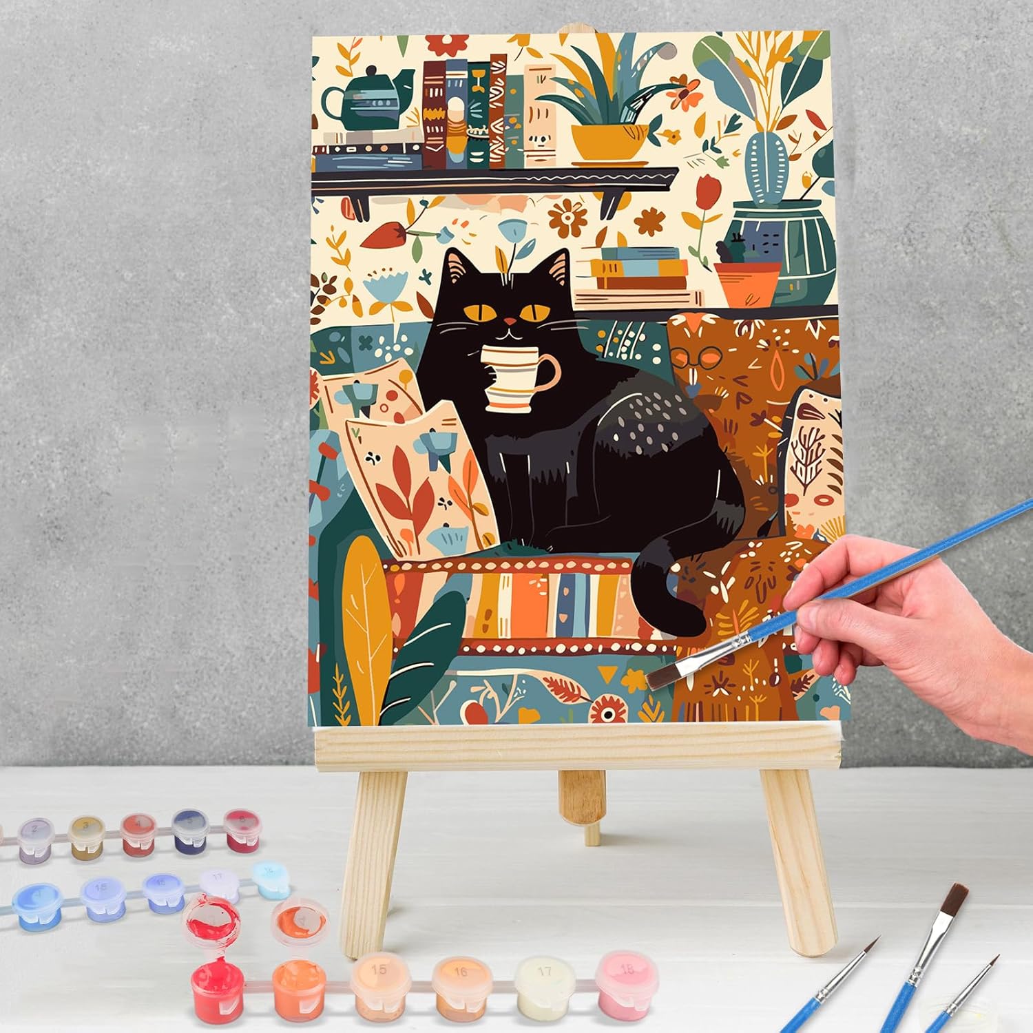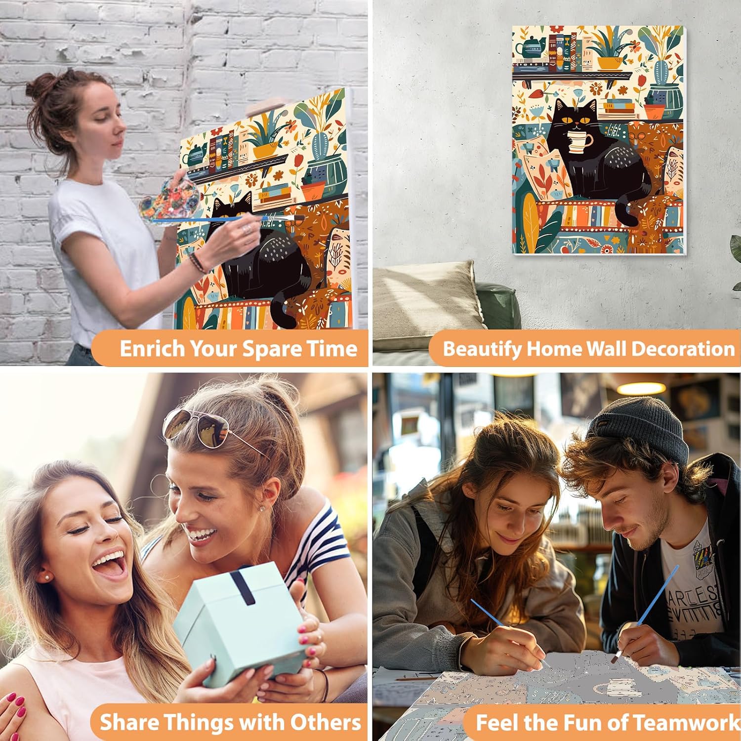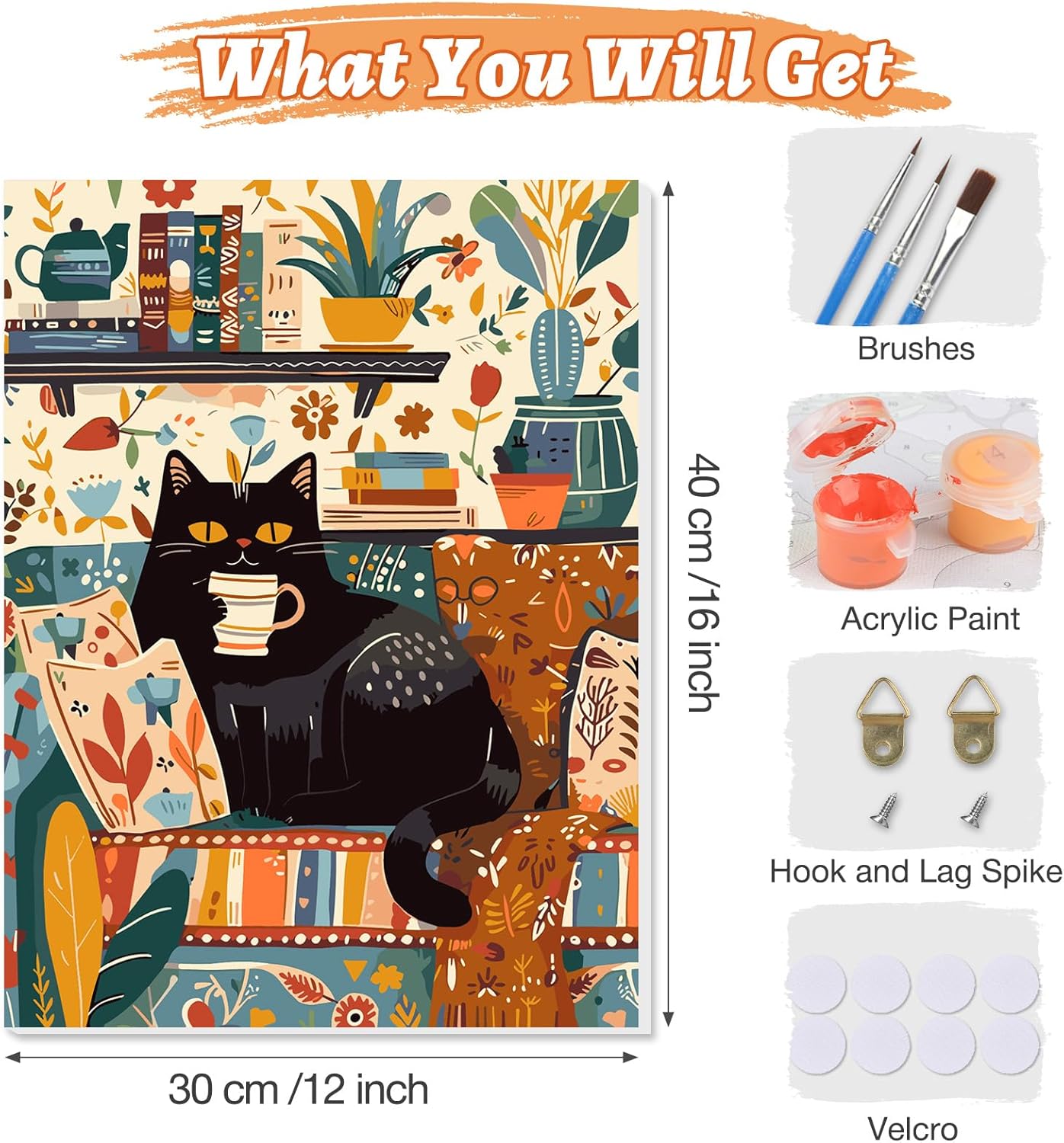KEYIFA Gatto Nero Dipingere con i Numeri per Adulti con Telaio, Painting by Numbers Kit con Pennelli e Acrilico Pigmento, Fai da te Olio La Pittura di Numeri Kit, Decora la Casa 30x40cm