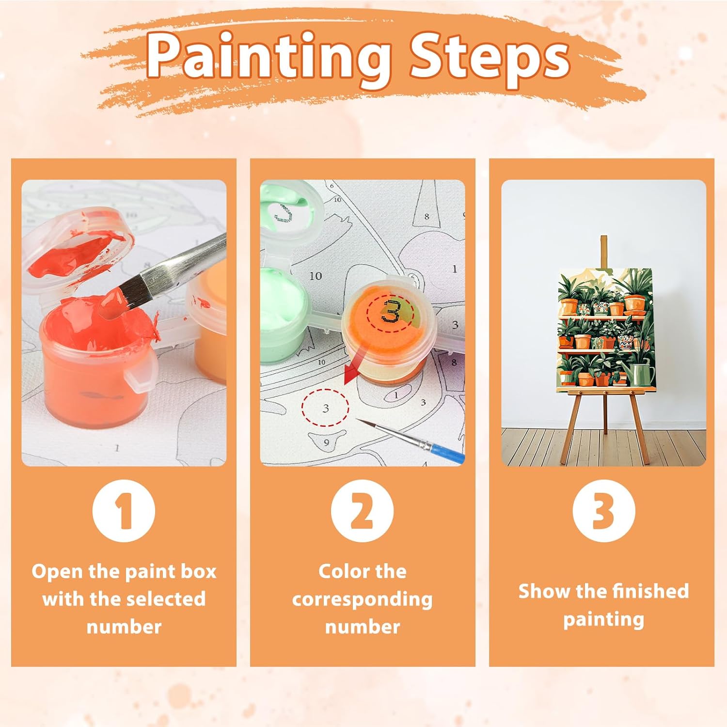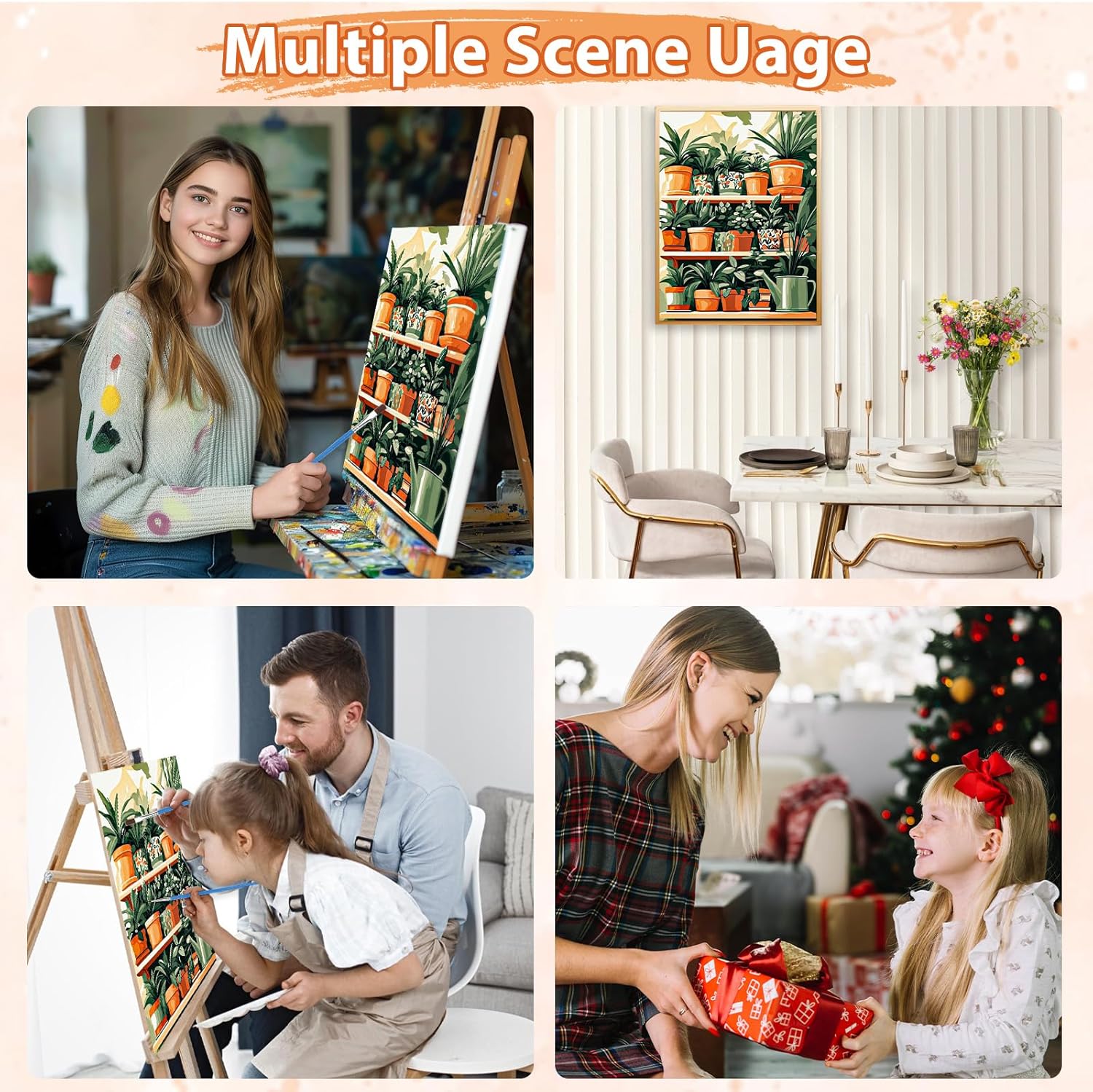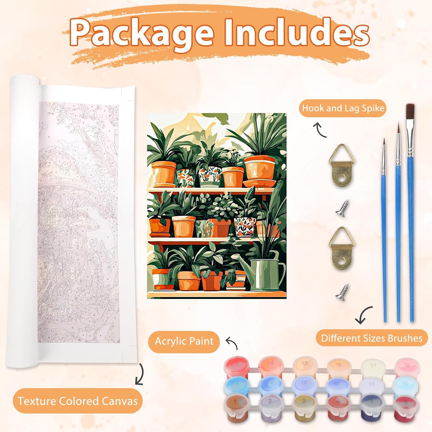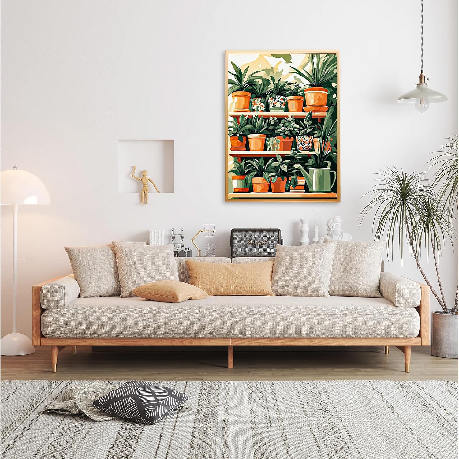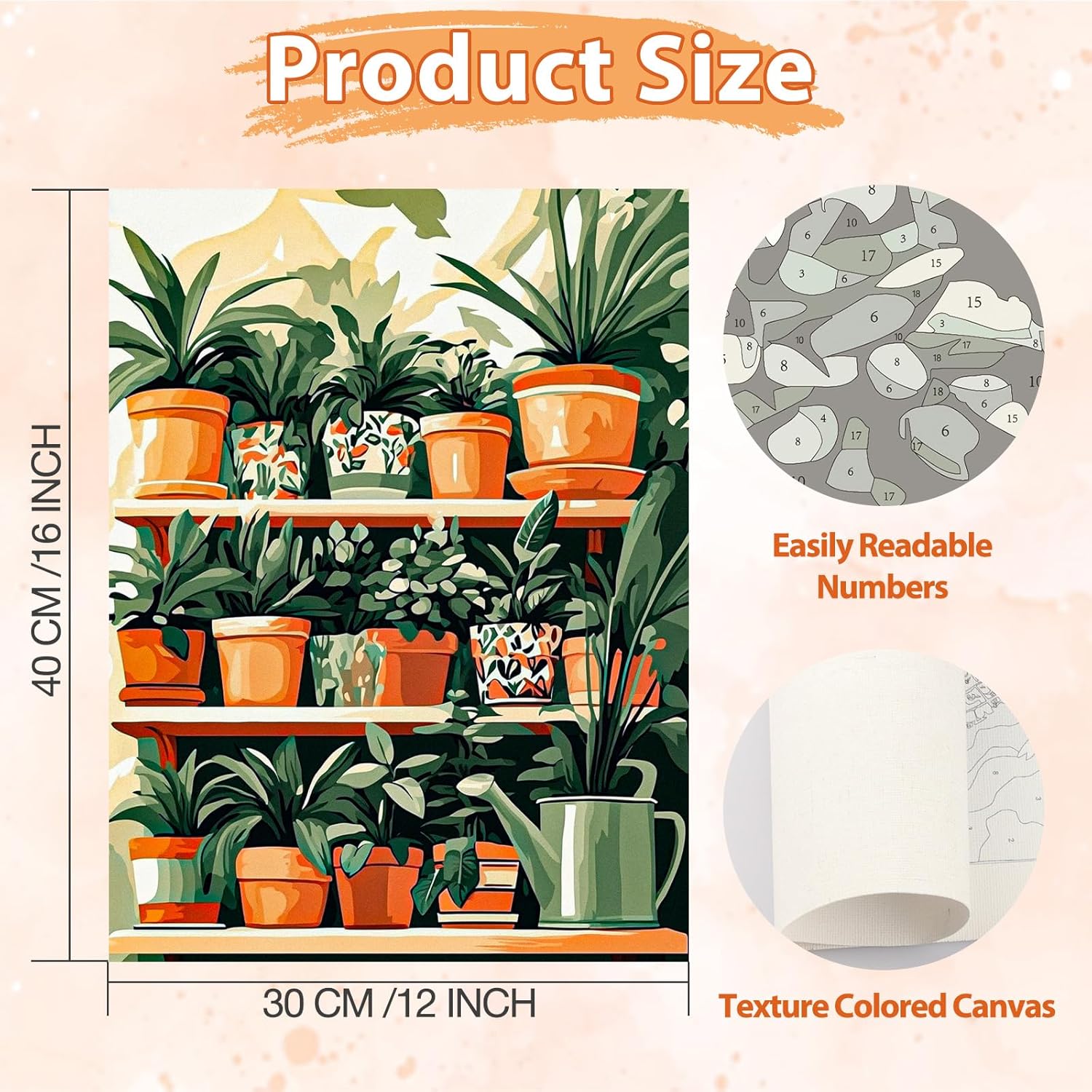KEYIFA Piante Vasetti Dipingere con i Numeri per Adulti, Painting by Numbers Kit con Pennelli e Acrilico Pigmento, Fai da te Olio La Pittura di Numeri Kit, Decora la Casa 30x40cm