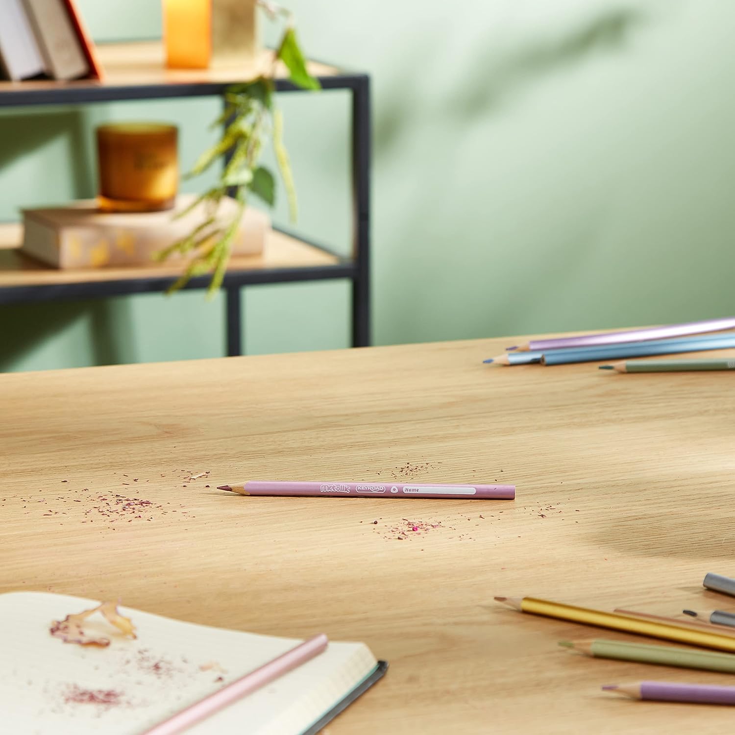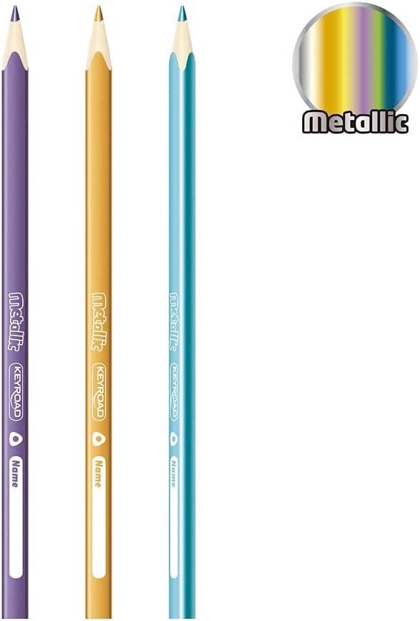 KEYROAD Matite colorate triangolari metalliche ergonomiche con mina particolarmente morbida e dal colore intenso 12 matite colorate metalliche - Colore: vari colori - Le matite colorate contengono pigmenti di alta qualità per una ricca saturazione e morbidezza del colore Ideale per libri da colorare, scuola per scrivere e dipingere rilassati - adulti e bambini Grafite morbida Facile da temperare 12 pezzi per unità di vendita - Custodia in cartone Foro per appenderlo