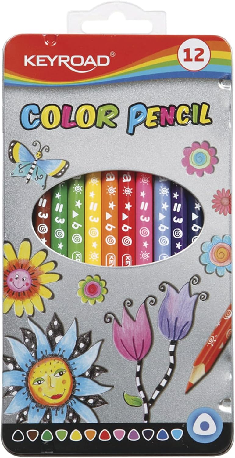 Matite colorate KEYROAD Triangolari ergonomiche, con mina morbida e dai colori intensi. Ideale per libri da colorare. 12 pezzi per unità di vendita - in scatola di metallo. Moderno ed elegante. Grafite morbida. Facile da affilare. Ideale per libri da colorare, scuola per scrivere e dipingere in modo rilassato. Area per scrivere nomi per adulti e bambini per la personalizzazione