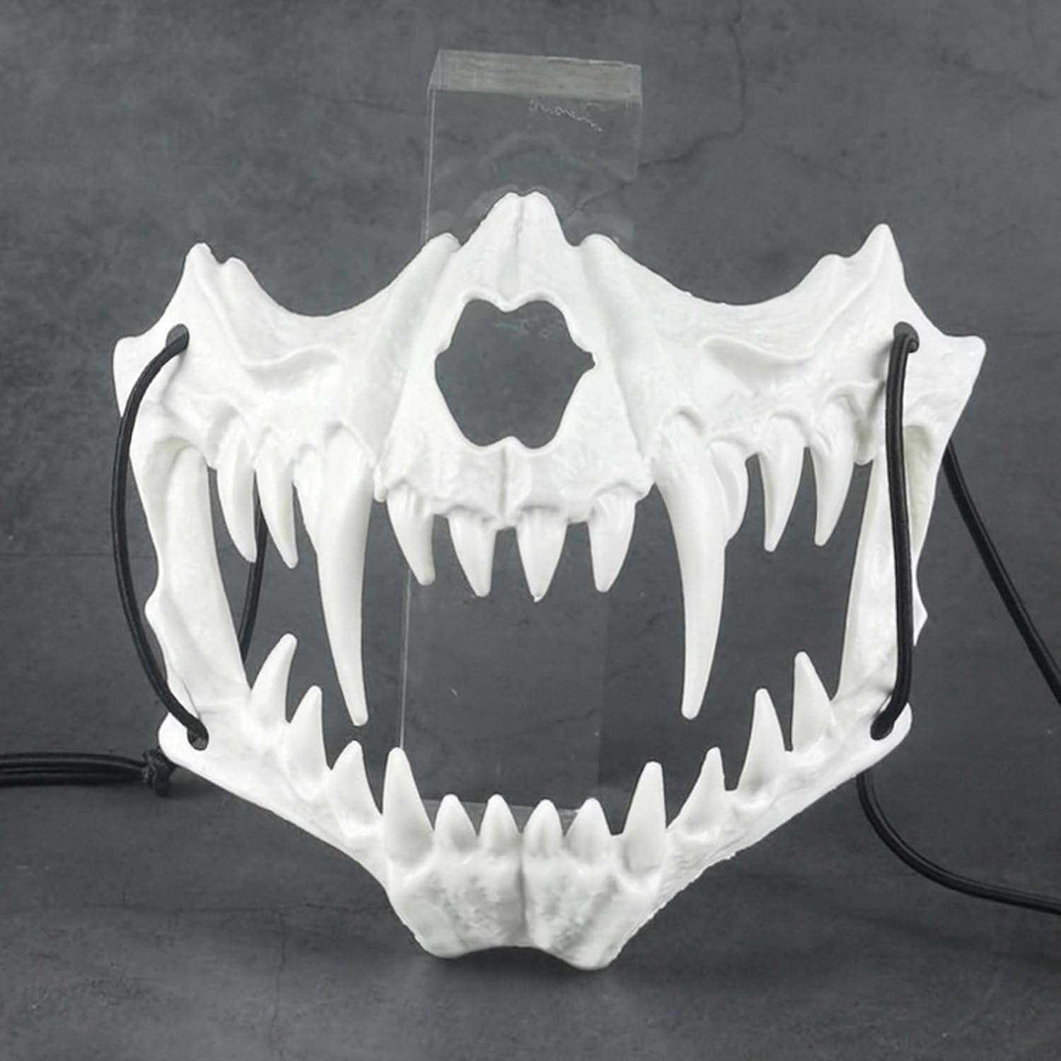 Materiale in resina di alta qualità: realizzato in lussuoso materiale di resina ecologica, resistente, bello da vedere e facile da indossare. La maschera è dotata di una fascia regolabile che può essere regolata in base alle dimensioni della testa ed è adatta alla maggior parte delle persone. Forma unica: Classica forma a teschio animale, maschere a teschio maschili e femminili, visione e respirazione senza barriere. È possibile vedere attraverso gli occhi e respirare attraverso il naso della maschera zombie. Questo porta più divertimento e un'atmosfera vivace. Maschera realistica: la mascella del cranio è mobile. Maschere giapponesi di Halloween, inquietante horror diavolo lupo mannaro maschera cranica. Dimensioni: circa 17 cm x 15 cm, taglia unica. Ampia applicazione: Maschere di Halloween sono adatti per Halloween, qualsiasi partito, cosplay, Natale, carnevale, festa in costume e altre occasioni speciali.