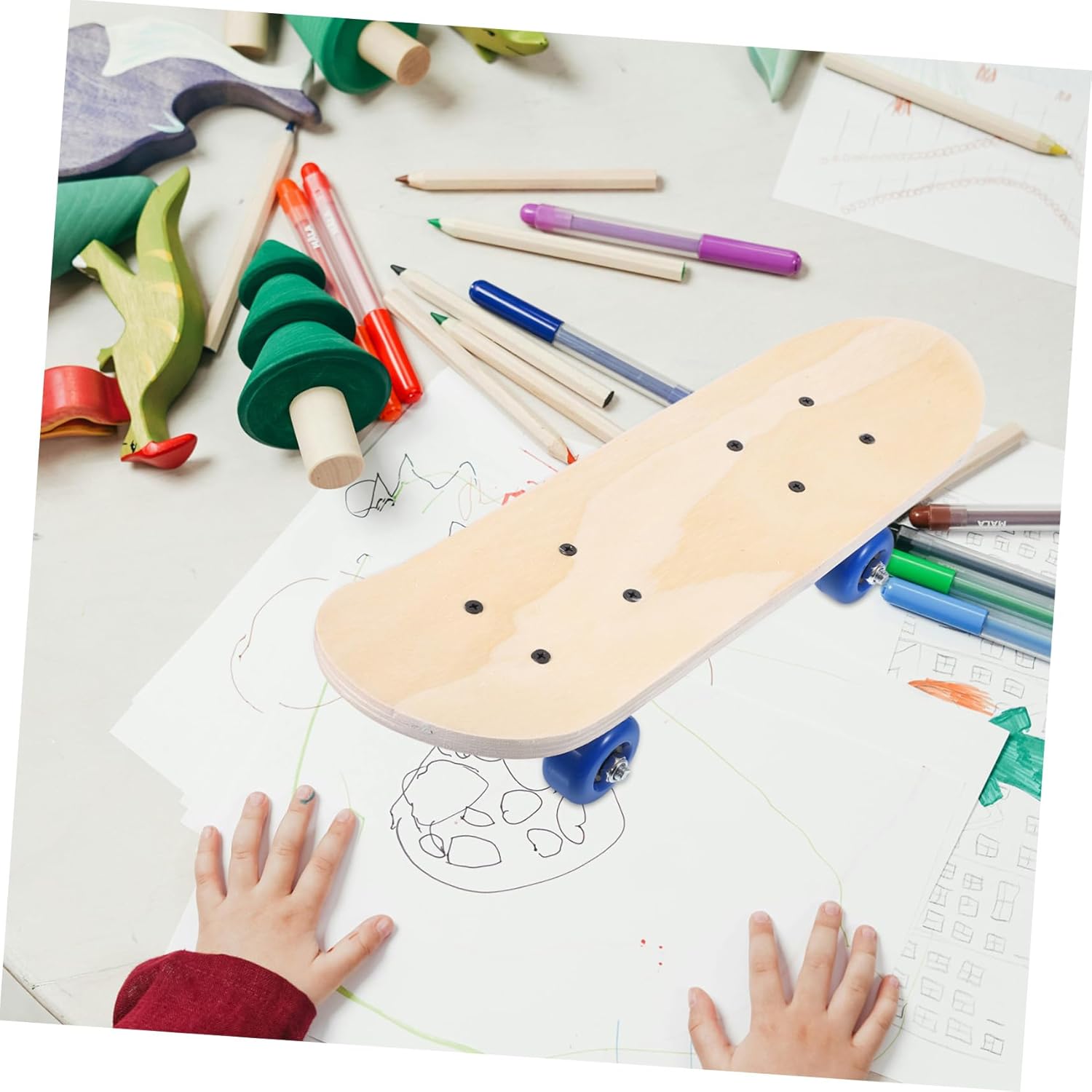 Graffiti creativi: il mazzo double face consente ai bambini di liberare la propria creatività e disegnare liberamente, soddisfacendo il loro per l'arte Robusta struttura in legno: realizzata in legno, garantisce un utilizzo sicuro e consente ai bambini di godersi appieno il divertimento dello skateboard Sicurezza e salute: garantisce la salute dei bambini rispettando gli standard, contribuendo al benessere del nostro pianeta Utilizzo multifunzionale: può essere utilizzato come skateboard o come elemento decorativo in una stanza, aggiungendo un tocco di personalità e creatività agli spazi dei bambini Interazione genitore-figlio: la pittura su skateboard può diventare un hobby condiviso tra genitori e figli, migliorando le relazioni e coltivando talenti artistici e abilità pratiche