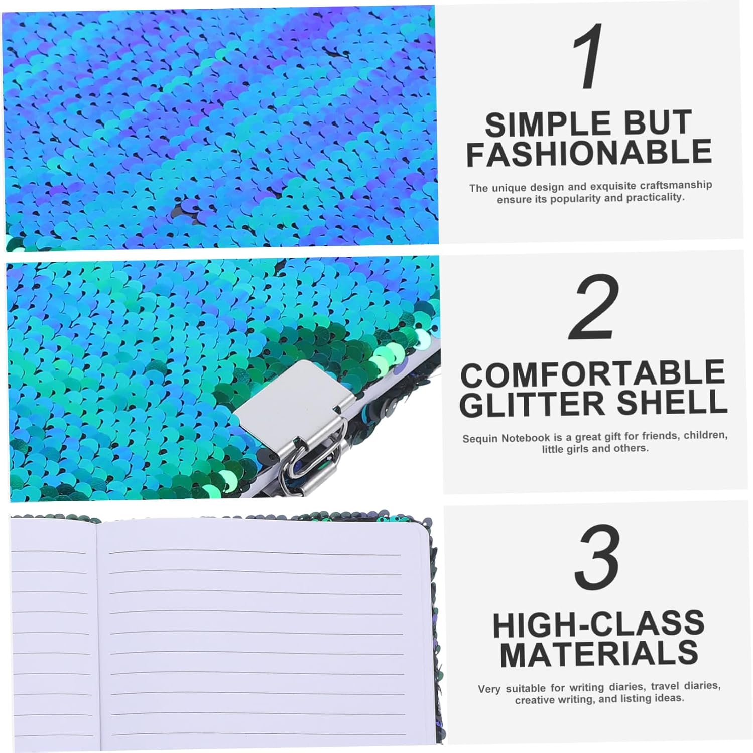 Simpatico quaderno a spirale: questo adorabile e decorativo quaderno è squisitamente realizzato e durevole ed è molto amato dalla maggior parte delle persone, quaderni per la scuola Quaderno con paillettes per ragazze: può essere inserito in questo quaderno decorativo o come diario o blocco note per scrivere ciò che pensi, pianifichi o hai idee Quaderno per ragazze: molto adatto per scrivere diari, diari di viaggio, scrittura creativa ed elencare idee, quaderno con paillettes: design portatile e chiudibile a chiave, comodo da portare con te in viaggio, in vacanza o nella vita quotidiana, quaderni carini per ragazze Quaderno scolastico: design con serratura, questo quaderno con paillettes è anche pensato per aiutare i bambini a sviluppare buone abitudini, blocco note