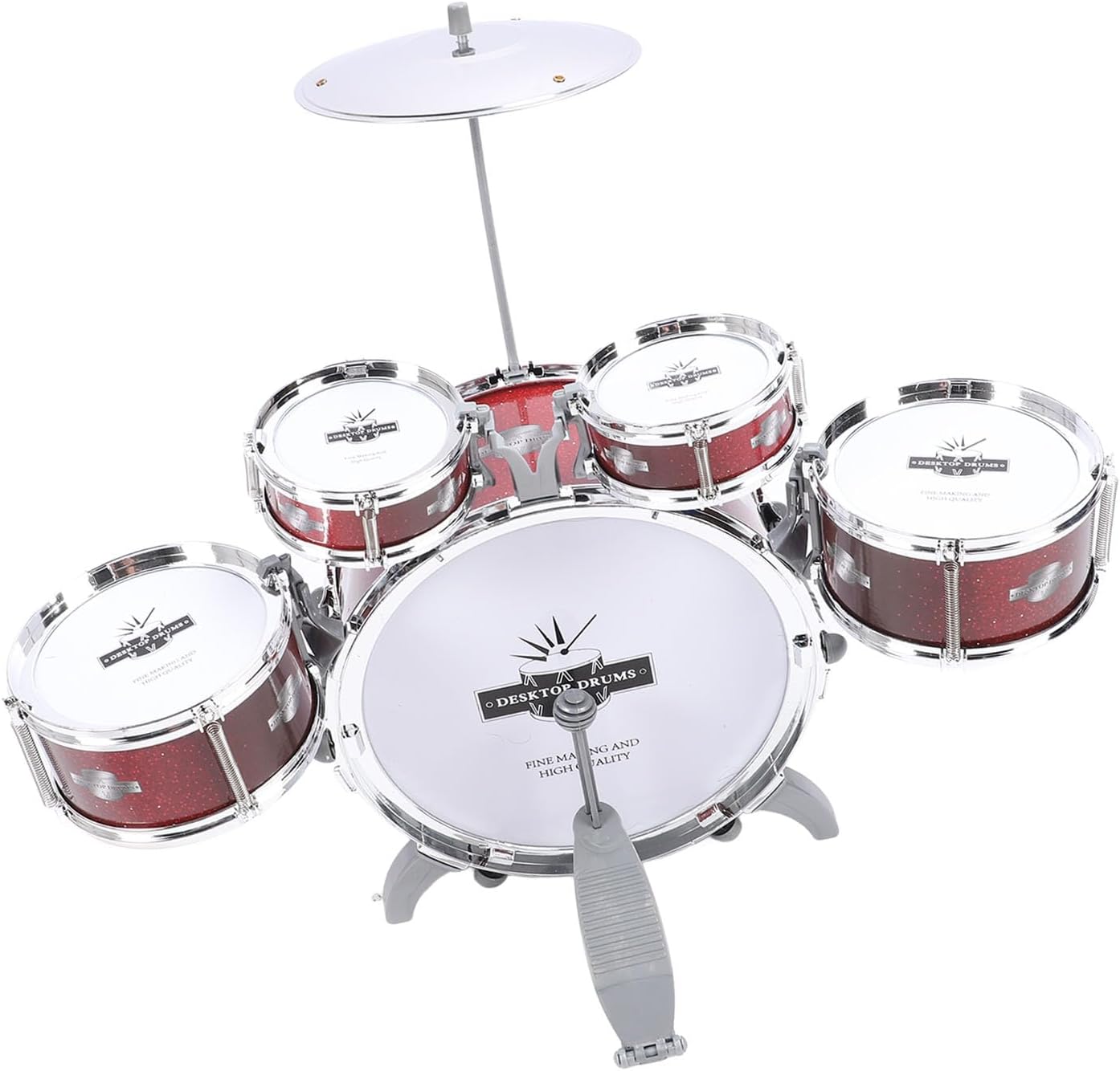 5 tamburi: questo set di tamburi è progettato per i bambini. Con la batteria classica 5, può ispirare l'interesse e il potenziale della musica dei bambini. Viene fornito con tutti gli articoli necessari per iniziare a tagliare. Il drum kit completamente funzionale offre un modo eccellente per i bambini di sviluppare abilità musicali. Utente target: progettato specificamente per i bambini, questo set di batteria è stabile e ideale per i bambini piccoli. Funzione: funge da grande strumento di illuminazione musicale per i più piccoli. Esperienza: il suono consente ai bambini di immergersi nel proprio mondo musicale. Educational: i tamburi per bambini sono strumento ideale per i bambini per sviluppare talenti musicali e senso ritmo. L'esposizione precoce agli strumenti musicali può suscitare l'interesse dei bambini per la musica e suonare la batteria aiuta a migliorare le loro abilità motorie e la percezione del ritmo. Scenario di utilizzo: questo jazz tamburo è strumento musicale a percussione adatto a bambini di tutte le età. È un ideale per Natale, compleanni, giornata per bambini, vacanze e altre occasioni speciali. Può aiutare i bambini nell'apprendimento della teoria della musica. Stimolazione degli interessi: il piccolo set di tamburi stimola l'interesse di apprendimento dei bambini. Promuove l'interazione tra genitori e bambini durante il gioco, rafforzando il loro legame.