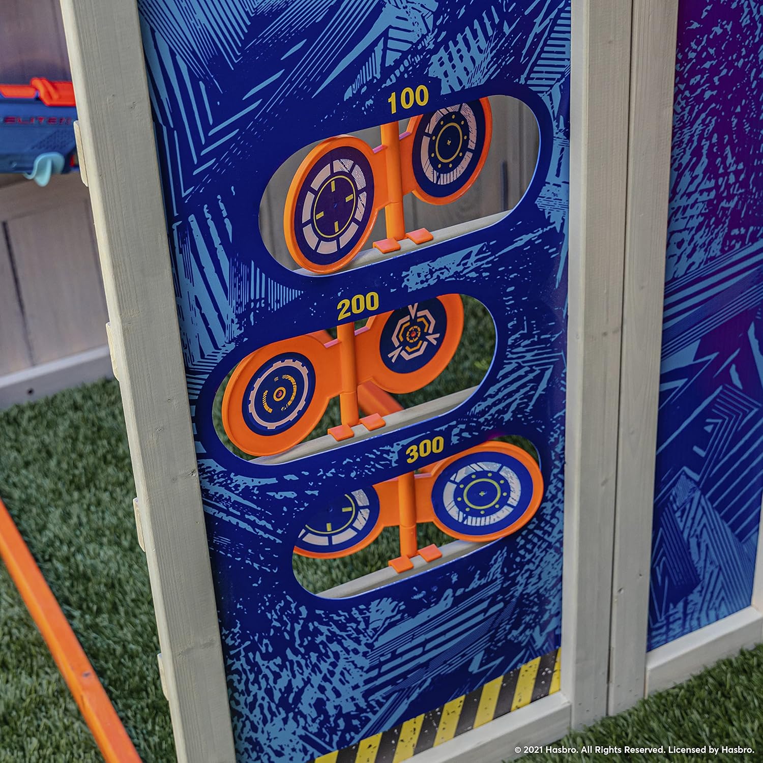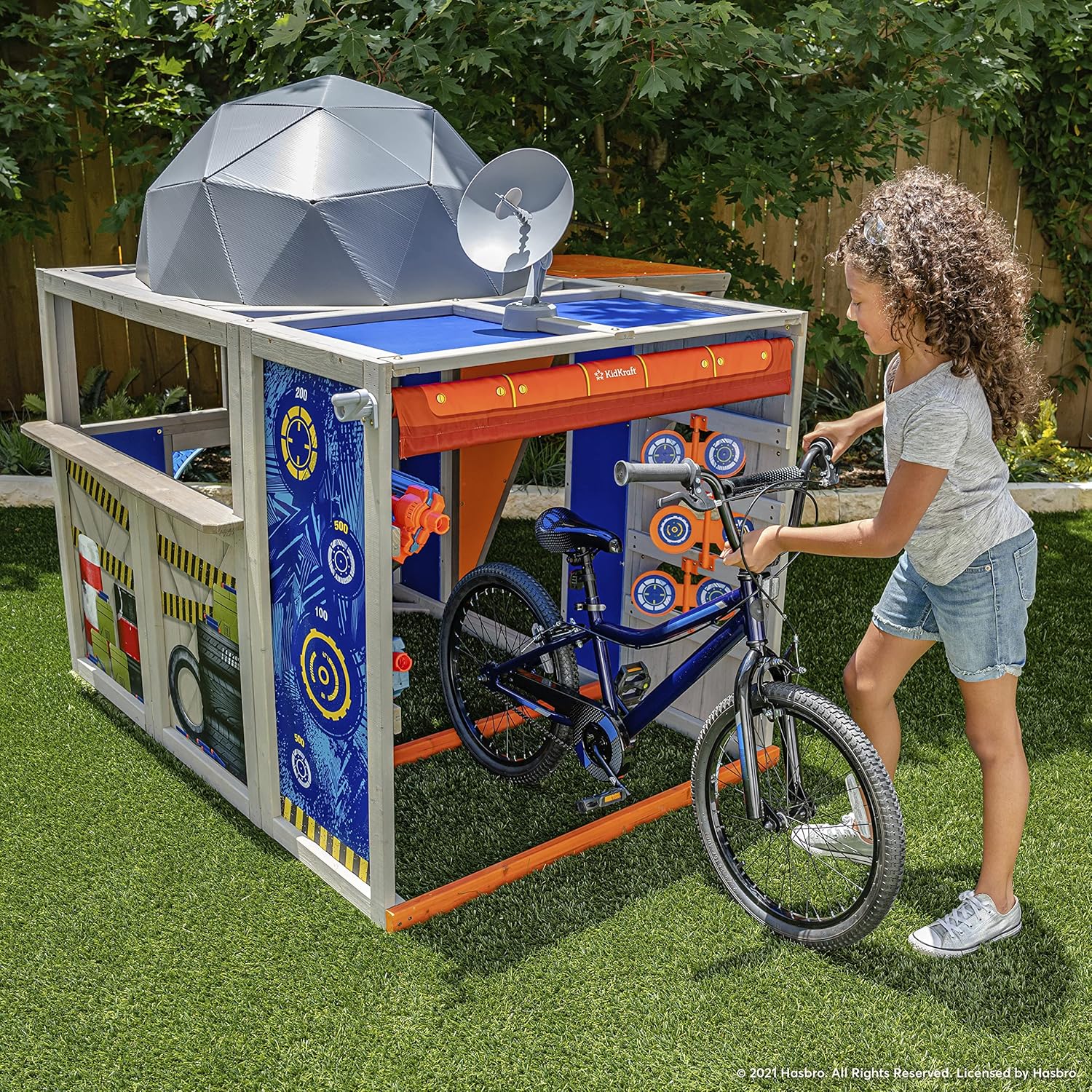 12 bicchieri con marchio Nerf per la pratica Stoccaggio Blaster all'interno per mantenere il disordine contenuto e pronto per il gioco L'apertura del tunnel di strisciamento è un modo furtivo per emergere e esplodere Ingresso bunker arrotolabile a manovella per la distribuzione del veicolo spia Dome top con periscopio; Spiare la concorrenza e piano di difesa