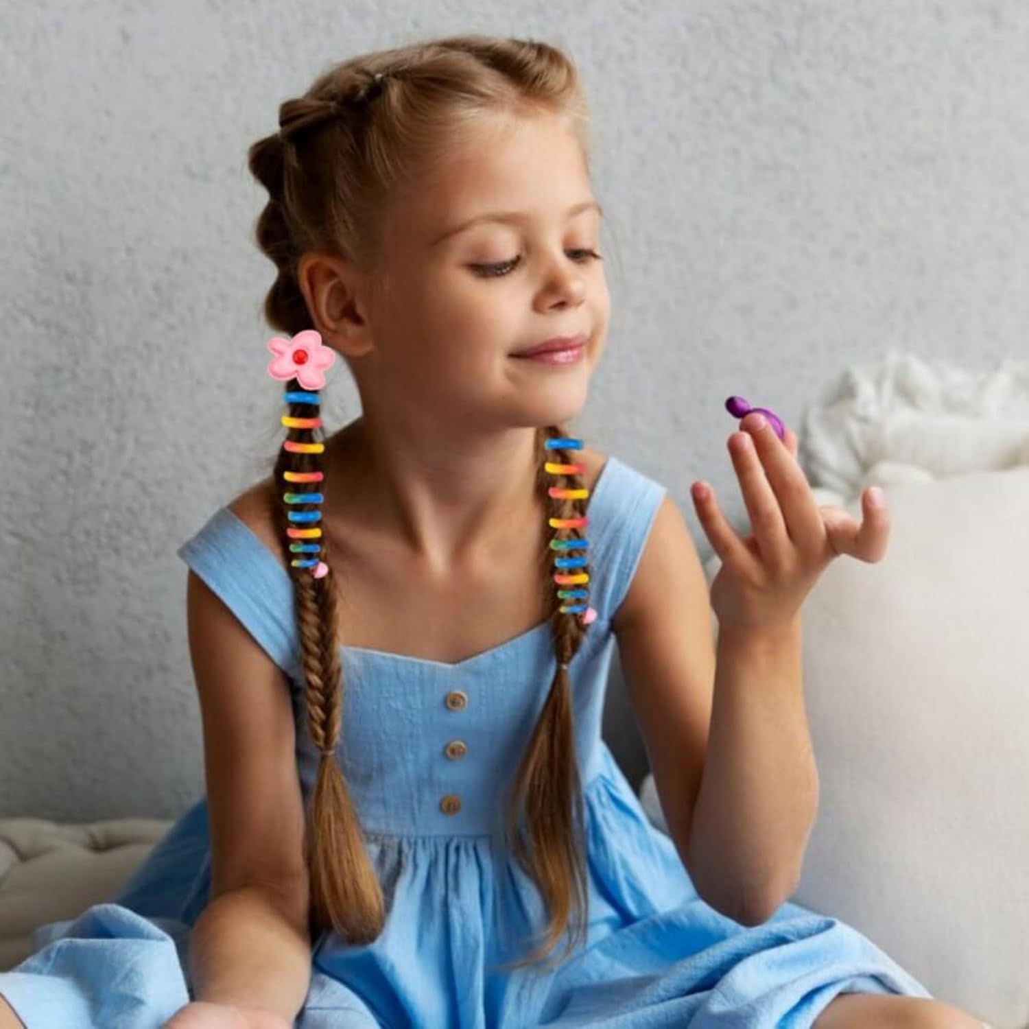 Il materiale morbido ed elastico protegge i capelli durante la legatura Set da 4 in diversi colori per uno stile versatile Perfetta per i capelli dei bambini, mantiene saldamente senza scivolare Taglia unica per bambini, adatta per trecce Contenuto della confezione: 4 fasce per capelli per bambini