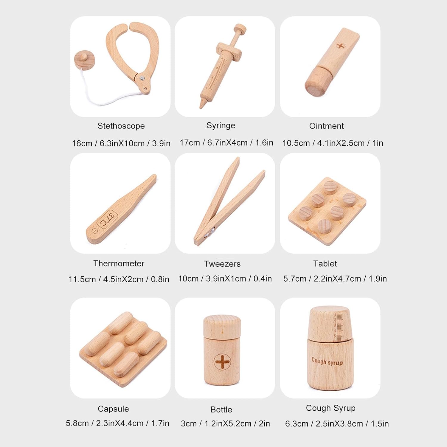 Giochi di ruolo fantasiosi: questo set di giochi per il dottore in legno per bambini è progettato per soddisfare le esigenze di gioco dei bambini in età prescolare, promuovendo la creatività e l'immaginazione. I bambini possono entrare nei panni di un medico. Essenziale per il gioco interattivo: adatto ai bambini che amano giocare a casa, questo set di giochi interattivo consente ai bambini di vestirsi come medici. Promuove le abilità sociali mentre si impegnano in un gioco cooperativo, condividono esperienze ed esprimono empatia verso gli altri. Materiale sicuro ed eccellente: realizzato in legno di faggio, questo set di giocattoli garantisce sicurezza e non tossicità per i bambini di età compresa tra 2 e 6 anni. I genitori possono fidarsi della sua durata e costruzione, rendendolo una scelta affidabile per il gioco quotidiano. Elementi di design educativo: lo stetoscopio e altri strumenti non sono divertenti ma anche educativi. Aiutano a introdurre i bambini ai concetti di base, promuovendo la loro comprensione della salute e l'importanza dei praticanti nella società. Migliora le capacità motorie: i blocchi e gli accessori in legno visivamente accattivanti nel Playset sono progettati per aiutare a migliorare la coordinazione degli occhi per la mano dei bambini. Impegnano piccole mani in attività divertenti e stimolanti che sviluppano abilità motorie mentre scatenano un godimento infinito.