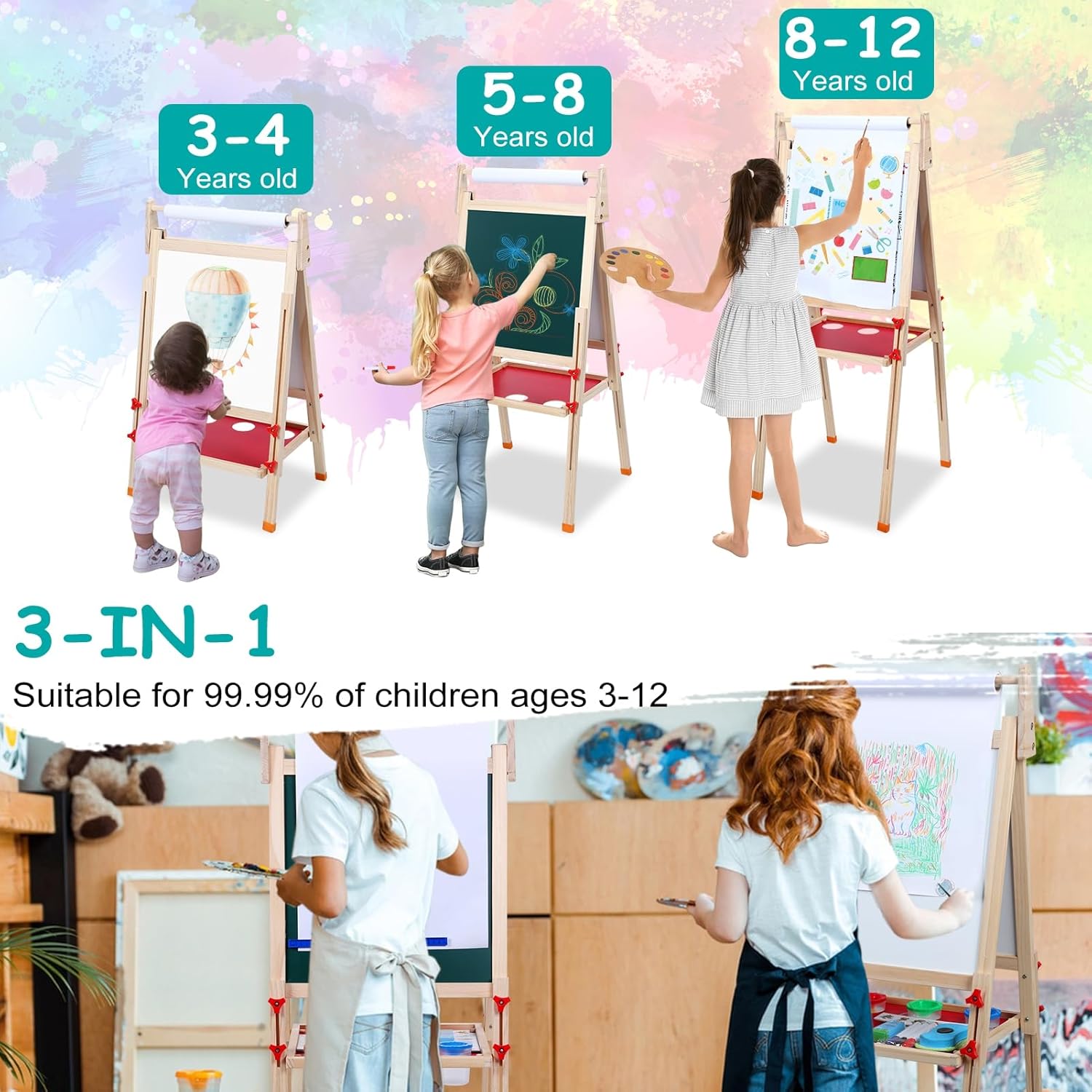 Ideale per ispirare l'apprendimento della creatività: questo cavalletto per bambini offre ore di attività creative come pittura, colorazione, disegno, caratteri e giochi di matematica, ecc., Che è sia piacevole che educativo. Doppia pittura: questi bambini dei bambini sono dotati di un vassoio rosso che può inserire gli accessori che desideri. È su entrambi i lati con lavagna bianca su un lato, lavagna di gesso sull'altro lato con una clip per tagliare carte di diverse dimensioni. Materiale sicuro: il cavalletto per bambini è realizzato in legno di alta qualità. Conformità alle prove standard. Tutto è per la sicurezza dei bambini di utilizzare questa lavagna magnetica per bambini. Altezza regolabile: l'altezza del supporto artistico può essere regolata da 80 cm a 110 cm e la dimensione della cornice del layout è di 48 cmx46cmx110cm. È adatto a bambini dai 3 ai 12 anni. L'altezza del cavalletto per bambini dai 4 agli 8 anni e il cavalletto per bambini di età compresa tra 2 e 4 anni possono essere regolati in base ai bambini di età diverse. Ciò significa che dalla scuola materna alla scuola elementare hai solo un cavalletto d'arte per Ki Adatto per bambini: il banco d'arte per bambini di 2-4 anni e lo stand d'arte per bambini di 4-8 anni può essere sperimentato su entrambi i lati. Una gioia da disegnare.