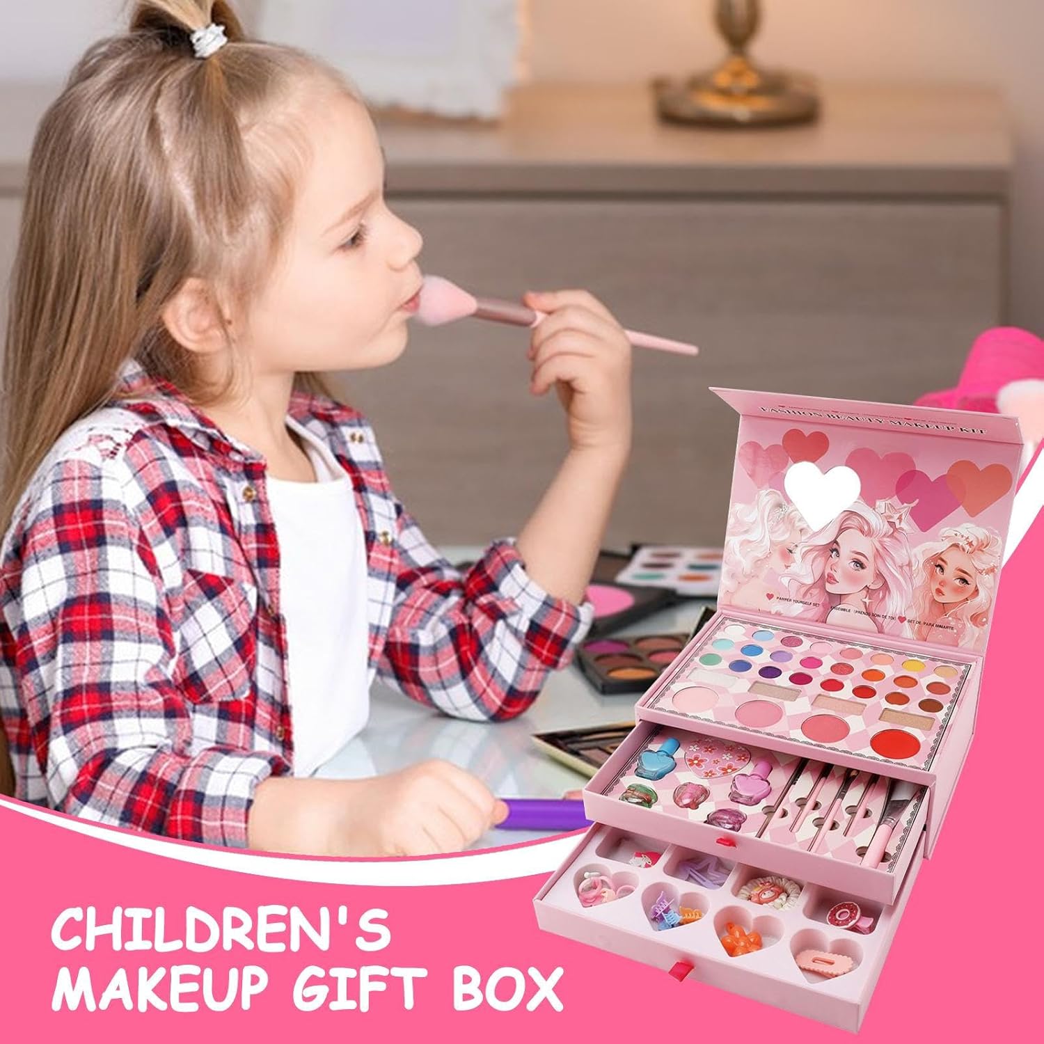 Washable and Non-Harmful Formula: Crafted from skin-safe water-soluble this set allows worry-free play and easy cleanup after each use encouraging kids to explore makeup without staining or skin irritation for peace of mind and fun combined Complete Cosmetic Experience: Includes lipstick eyeshadow blush brushes and mirror offering a full pretend makeup routine that helps boost creativity coordination and self-expression through engaging imaginative princess-inspired beauty play Encourages Social Play: Designed for shared use this makeup set fosters bonding among friends and siblings perfect for slumber parties school drama class themed birthdays or casual playdates that develop communication and group interaction skills Reusable and Educational Fun: Built with reusable tools and accessories this set promotes responsible play and learning while helping kids understand colors textures and facial features during educational art projects or performance prep Versatile for Multiple Events: Ideal for birthday parties holiday events school plays or community workshops this playset adapts to various festive and educational environments while doubling as a thoughtful gift for aspiring young performers