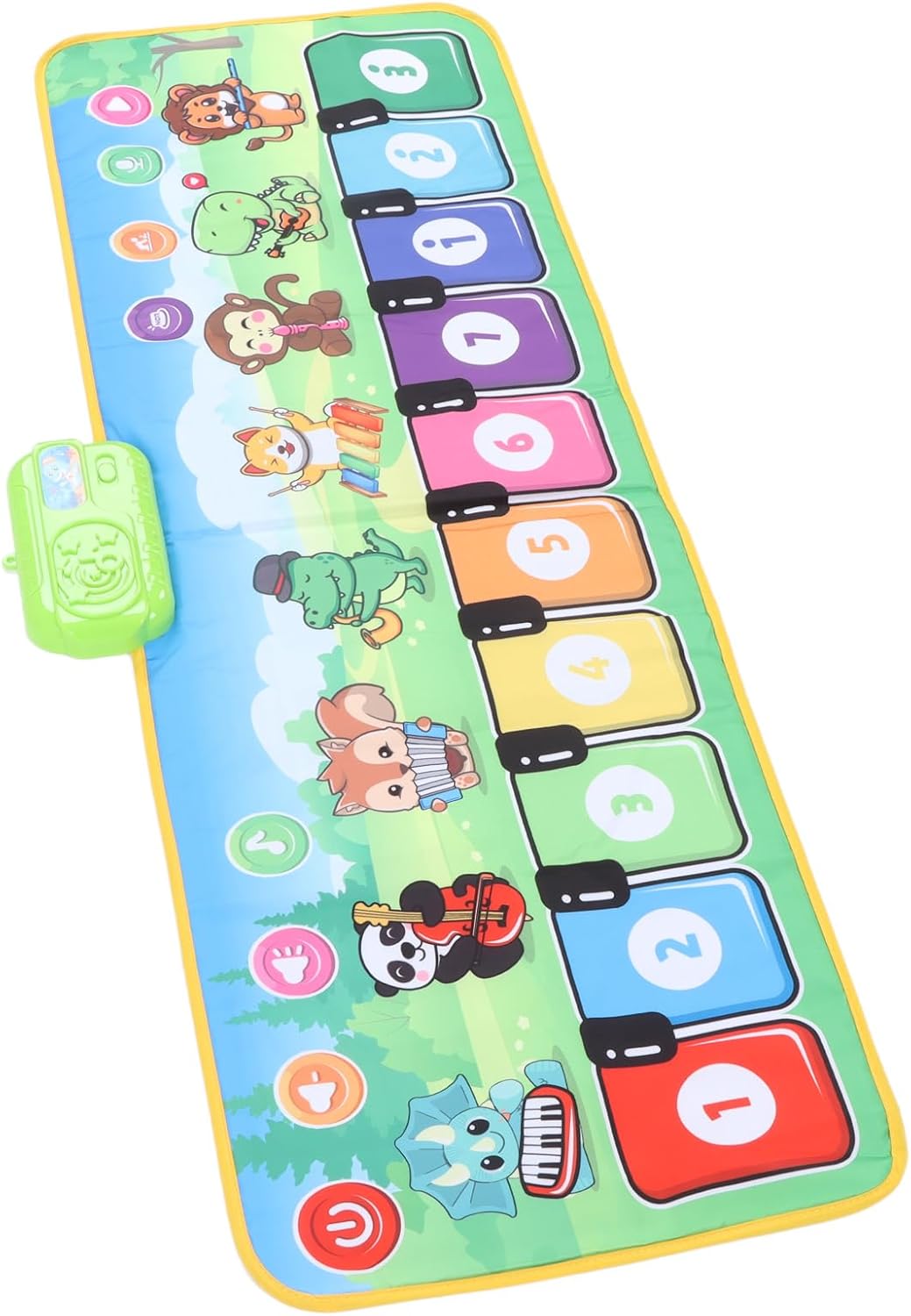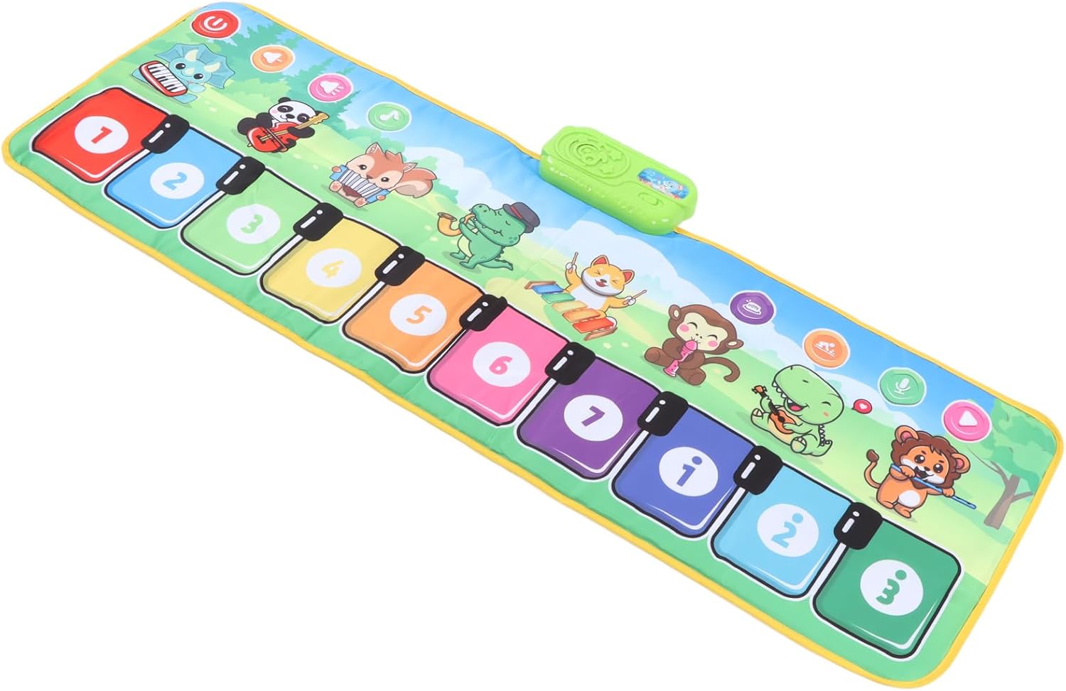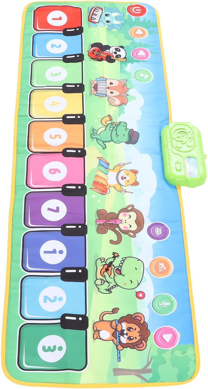 [Coinvolgimento dell'apprendimento musicale] Questo tappetino per pianoforte interattivo fornisce ai bambini un modo entusiasmante di sviluppare le prime capacità cognitive e il coordinamento degli occhi a mano. Con motivi di animale colorati che producono suoni di strumenti quando toccati, stimola lo sviluppo sensoriale mentre insegna a causa ed effetto in un ambiente musicale divertente. [Modalità di gioco multifunzionale] Con varie modalità musicali e ricchi effetti sonori, il nostro tappetino per pianoforte danzante offre infinite opzioni di intrattenimento. I bambini possono esplorare diversi suoni di strumenti, seguire le chiavi di illuminazione o creare le proprie melodie, perfette per lo sviluppo di ritmo e creatività musicale mantenendo attivi. [Materiale morbido premium] realizzato con tessuto sigillato di alta qualità sottile ma resistente, questo tappetino pieghevole offre un comodo tempo di gioco. La superficie impermeabile consente una facile pulizia con un panno umido, mentre la consistenza morbida garantisce sicurezza per piccole mani e piedi durante le sessioni di gioco energiche. [Design anti-slip sicuro] Il retro appositamente strutturato impedisce lo scivolo indesiderato durante il gioco, dando ai genitori la pace. L'attrito migliorato mantiene il tappeto saldamente in atto su qualsiasi superficie del pavimento, permettendo ai bambini di ballare e saltare con fiducia mentre si godono l'esplorazione musicale. [Perfetta scelta ] Questo tappetino per pianoforte divertente ed educativo è un ideale per compleanni, vacanze o occasioni speciali. Adatto a ragazzi e ragazze, combina divertimento e apprendimento in un pacchetto attraente che delizierà i bambini sostenendo le loro pietre miliari dello sviluppo.