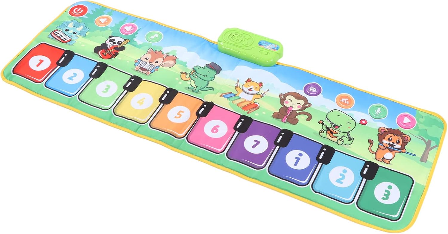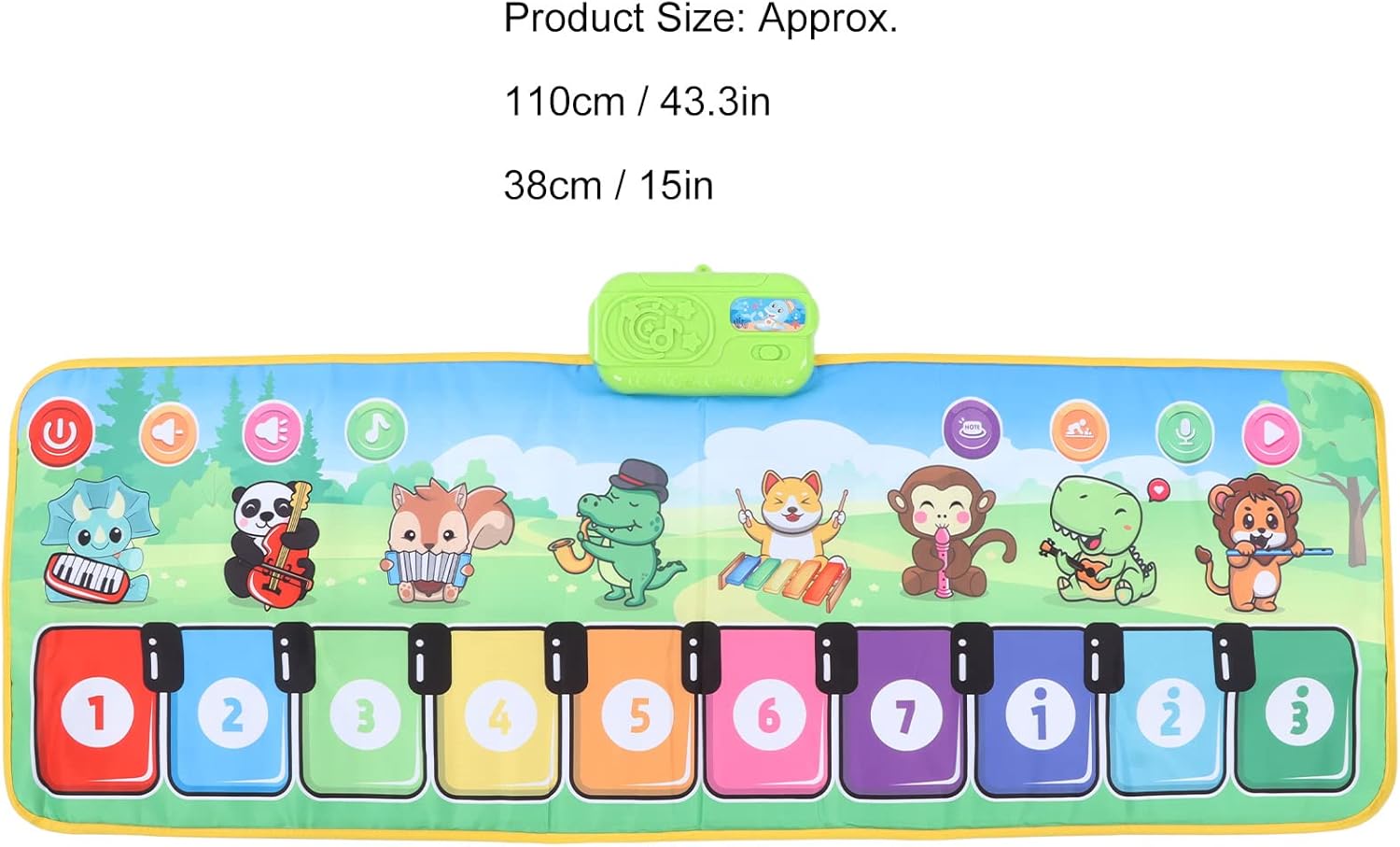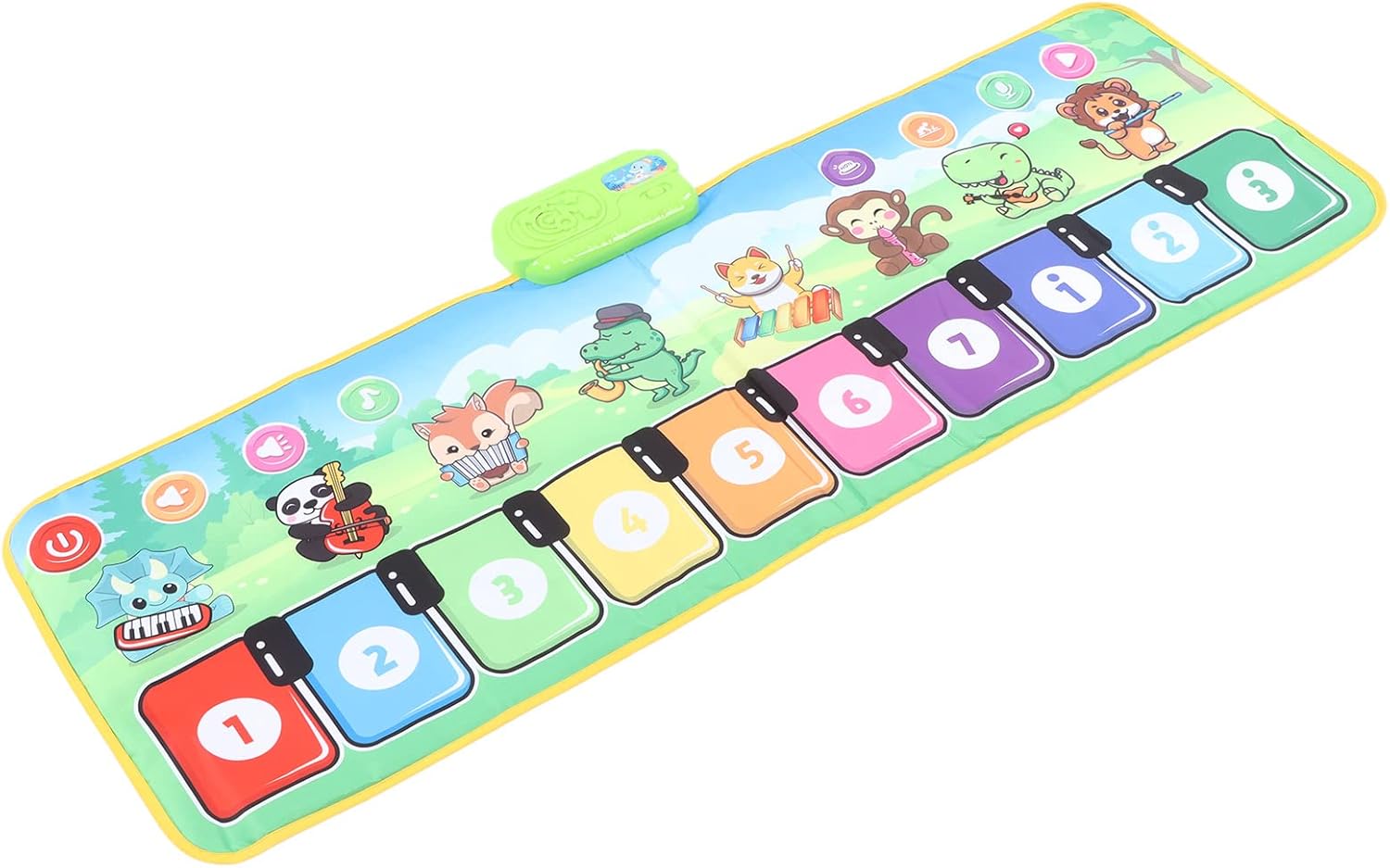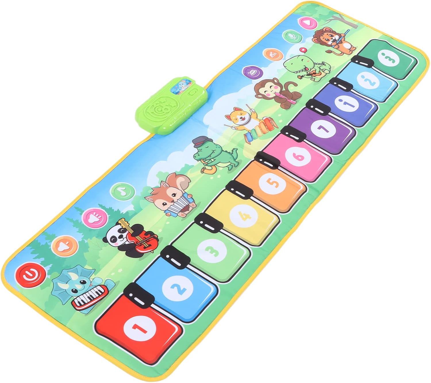[Coinvolgimento dell'apprendimento musicale] Questo tappetino per pianoforte interattivo fornisce ai bambini un modo entusiasmante di sviluppare le prime capacità cognitive e il coordinamento degli occhi a mano. Con motivi di animale colorati che producono suoni di strumenti quando toccati, stimola lo sviluppo sensoriale mentre insegna a causa ed effetto in un ambiente musicale divertente. [Modalità di gioco multifunzionale] Con varie modalità musicali e ricchi effetti sonori, il nostro tappetino per pianoforte danzante offre infinite opzioni di intrattenimento. I bambini possono esplorare diversi suoni di strumenti, seguire le chiavi di illuminazione o creare le proprie melodie, perfette per lo sviluppo di ritmo e creatività musicale mantenendo attivi. [Materiale morbido premium] realizzato con tessuto sigillato di alta qualità sottile ma resistente, questo tappetino pieghevole offre un comodo tempo di gioco. La superficie impermeabile consente una facile pulizia con un panno umido, mentre la consistenza morbida garantisce sicurezza per piccole mani e piedi durante le sessioni di gioco energiche. [Design anti-slip sicuro] Il retro appositamente strutturato impedisce lo scivolo indesiderato durante il gioco, dando ai genitori la pace. L'attrito migliorato mantiene il tappeto saldamente in atto su qualsiasi superficie del pavimento, permettendo ai bambini di ballare e saltare con fiducia mentre si godono l'esplorazione musicale. [Perfetta scelta ] Questo tappetino per pianoforte divertente ed educativo è un ideale per compleanni, vacanze o occasioni speciali. Adatto a ragazzi e ragazze, combina divertimento e apprendimento in un pacchetto attraente che delizierà i bambini sostenendo le loro pietre miliari dello sviluppo.