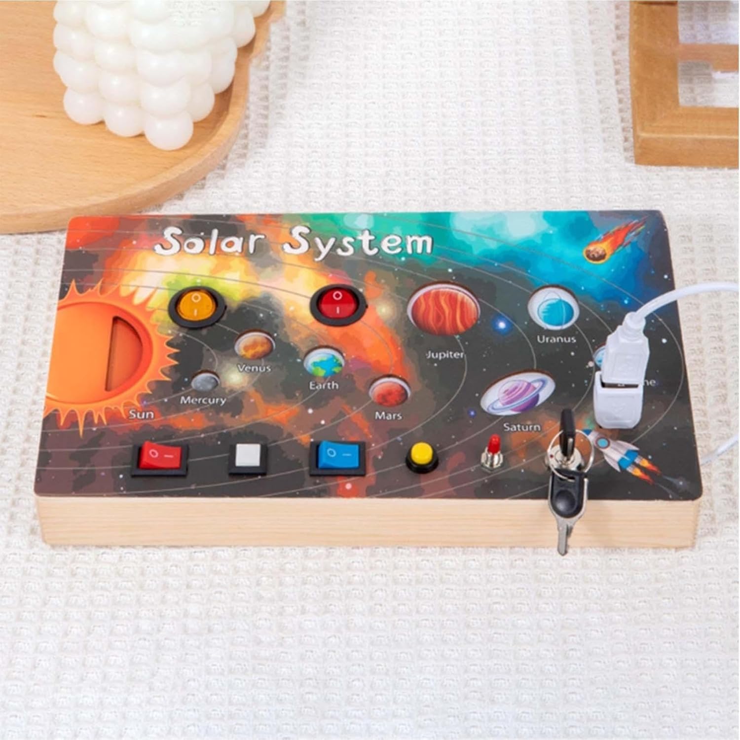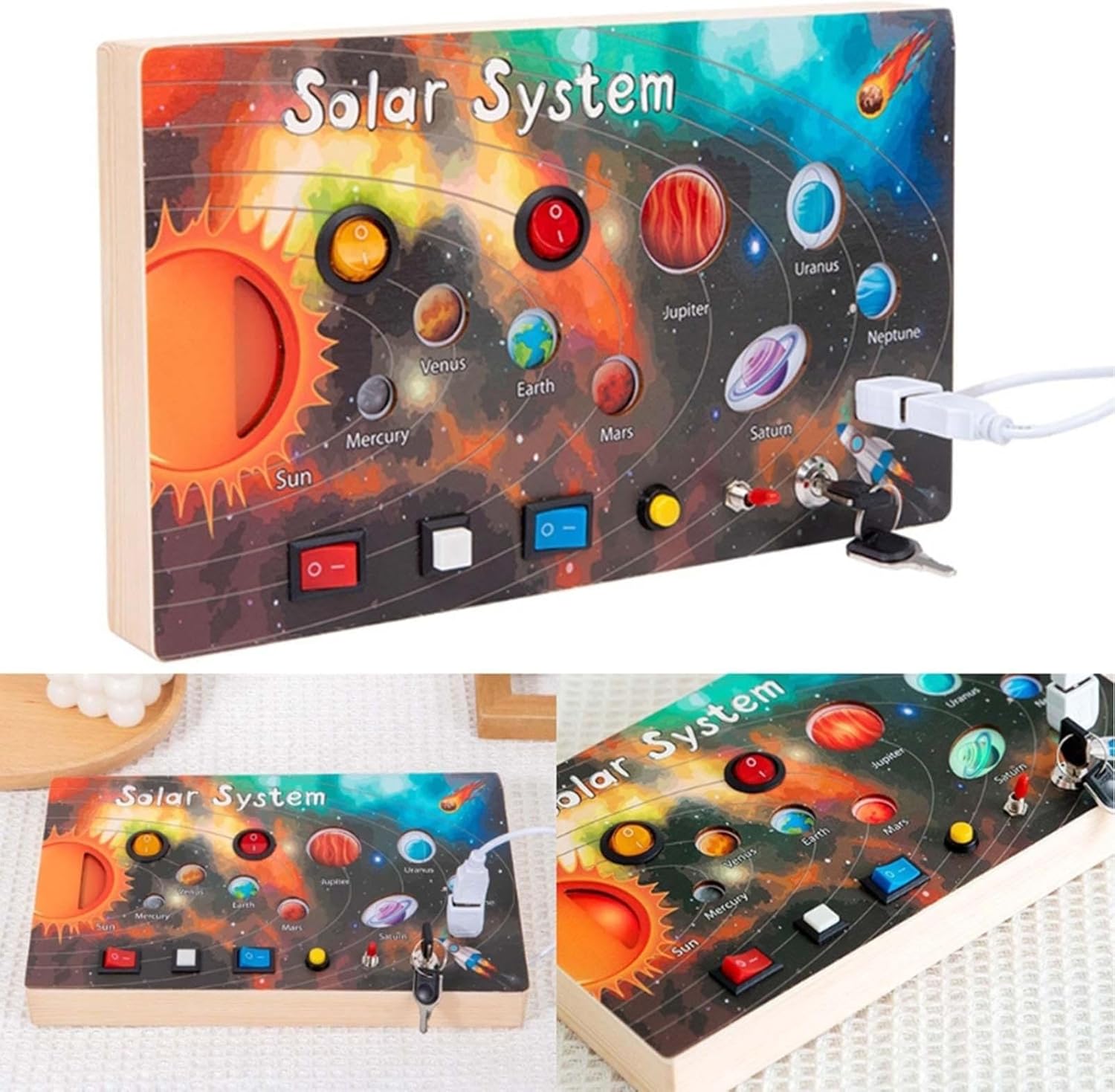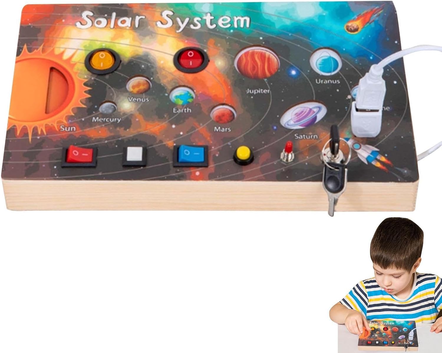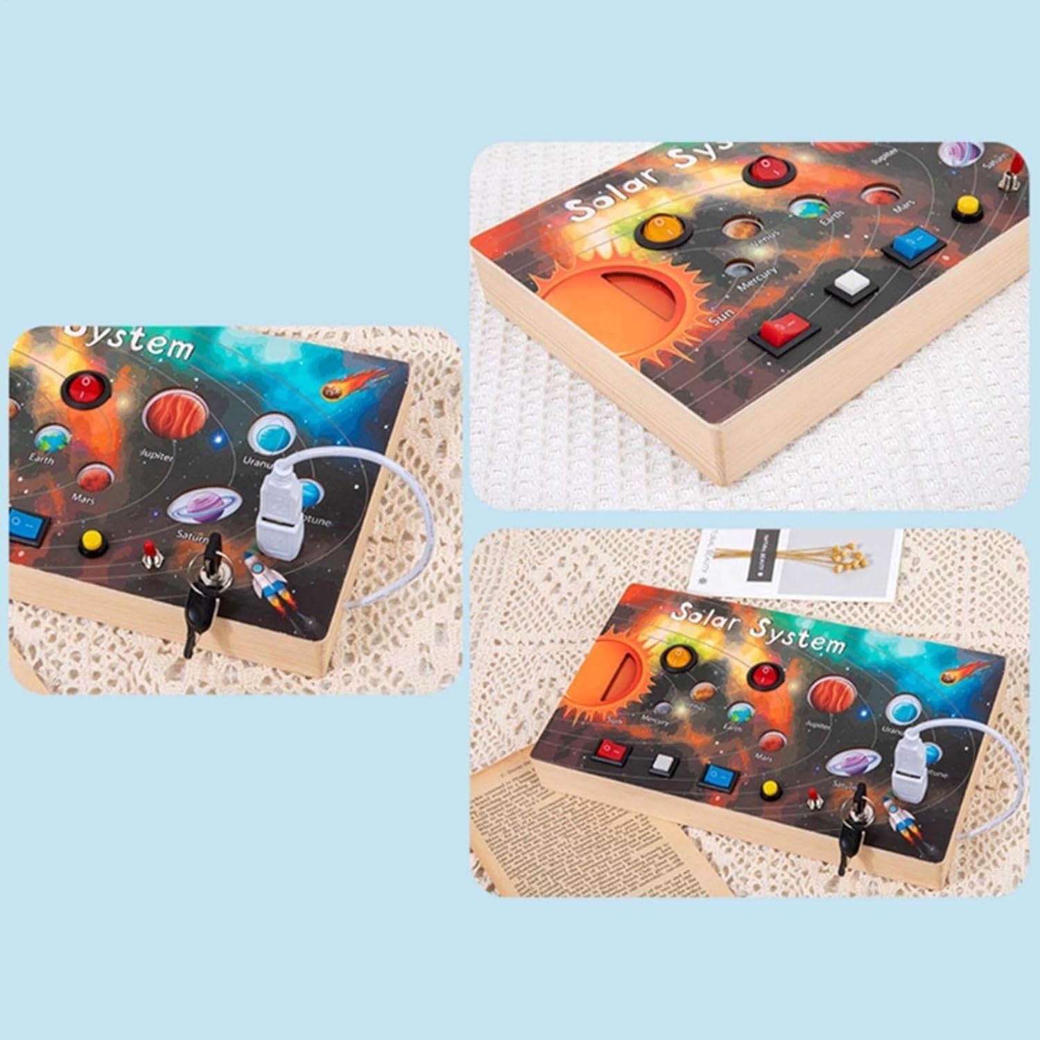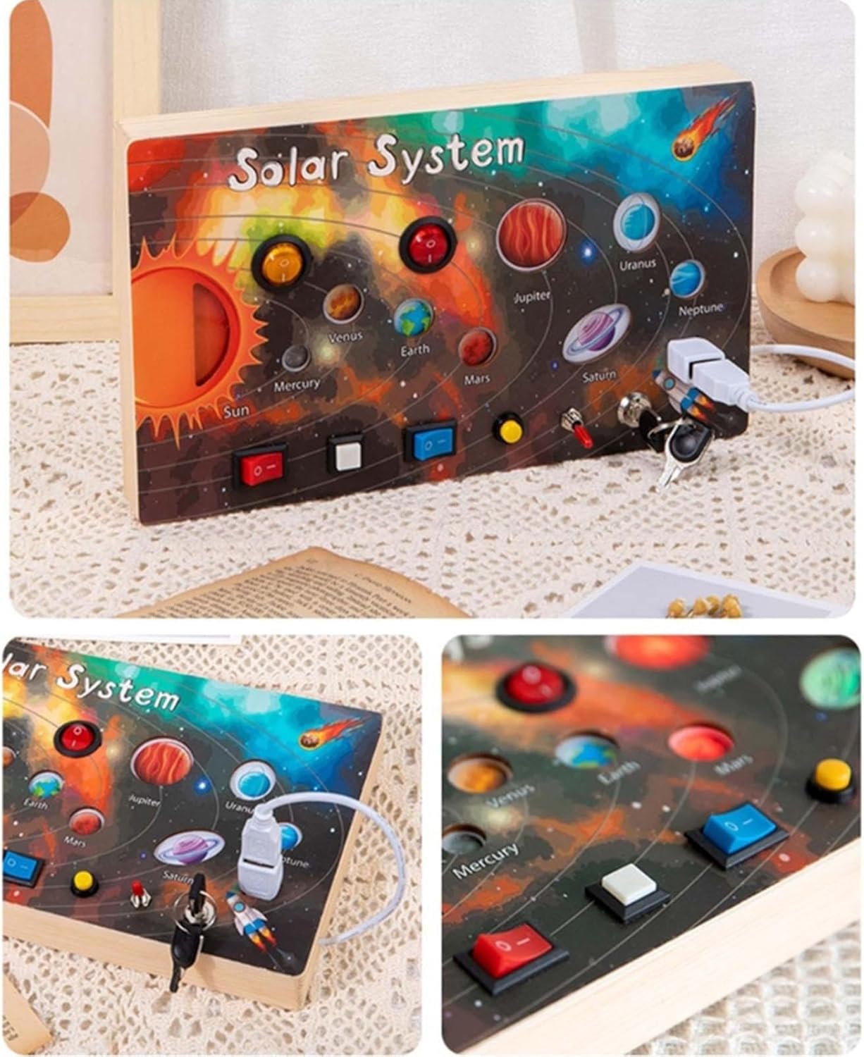 Migliora l'esplorazione sensoriale: offre ai bambini un'esperienza multisensoriale per impegnarsi in trame, forme e colori sul pannello di attività del sistema solare e stimolare lo sviluppo cognitivo Design pratico: stimola le giovani menti con un'esperienza sensoriale e incoraggia i bambini a esplorare e innovare attraverso l'interazione pratica con il sensore di attività Facile da viaggiare: offre divertimento continuo all'aperto ed evita qualsiasi fastidioso suono "allarme" che può compromettere l'esperienza, perfetto per le mani piccole con sensore di attività Emozionante tempo di gioco genitore-figlio: diversi pulsanti di controllo promuovono esperienze di gioco interattive e aumentano la partecipazione per età compresa tra 1 e 5 anni a una frazione del costo con la scheda di sensori di attività Ottimo regalo: inventa le giovani menti con un design adatto all'età, migliora le abilità motorie e le capacità di risoluzione dei problemi, fornendo una presentazione premurosa per compleanni, eventi scolastici e festività