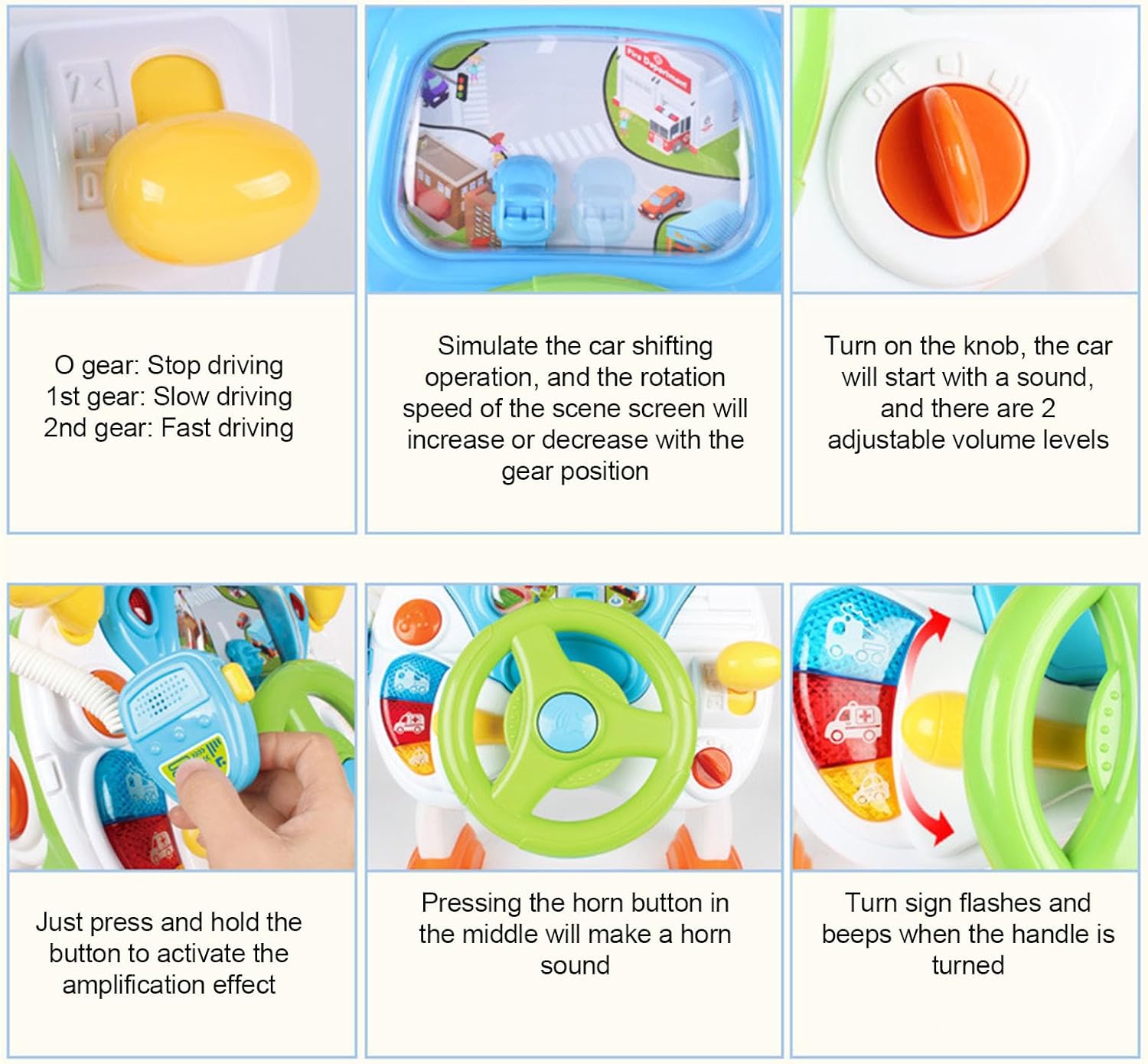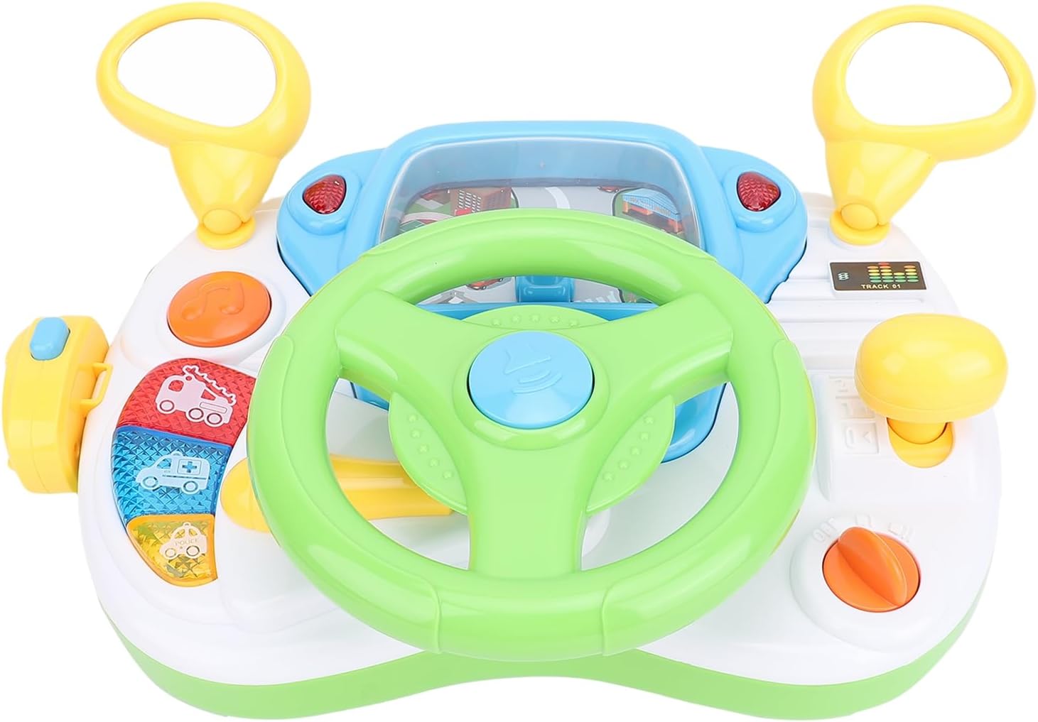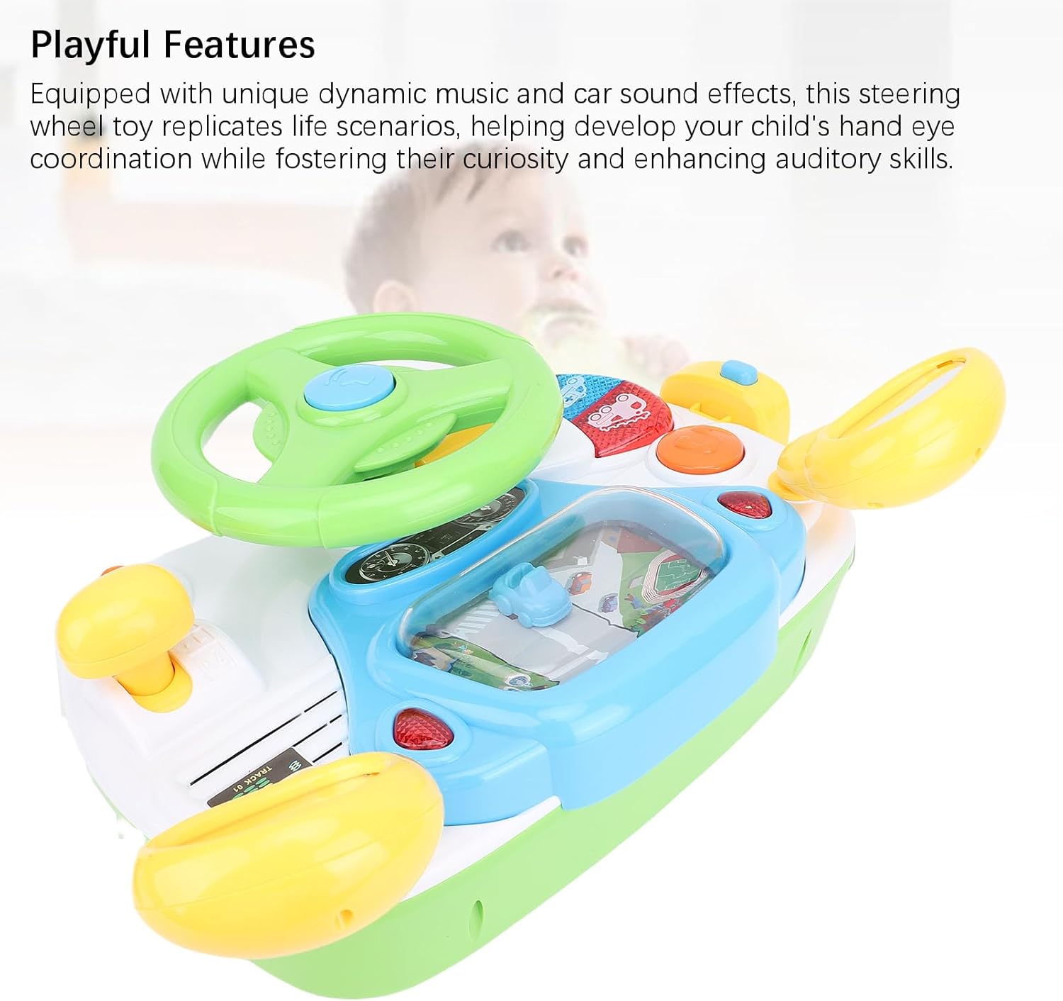 Vera esperienza di guida: il giocattolo del volante presenta un design completamente rotante e effetti sonori coinvolgenti, offrendo un'esperienza di guida davvero autentica che migliora il divertimento di ruolo per i tuoi piccoli. Giocattolo divertente e interattivo: questo giocattolo di sterzo coinvolgente non invecchia mai! Ogni pulsante offre una funzione diversa, dalla musica eccitante ai suoni di avvio reale, rendendo ogni sessione di gioco un'avventura piena di simulazione e divertimento. Caratteristiche giocose: dotato di effetti sonori di musica dinamica e di auto, questo giocattolo del volante replica gli scenari di vita, aiutando a sviluppare la coordinazione oculare a mano di tuo figlio, promuovendo la loro curiosità e migliorando le capacità uditive. Early Education Play: questo giocattolo del volante è un eccellente strumento di apprendimento precoce. Man mano che tuo figlio si impegna in giochi di guida simulati, miglioreranno le loro capacità di immaginazione e apprendimento, fissando le basi per lo sviluppo cognitivo. Idea : il giocattolo del volante rende l'idea per amici e familiari. Adatto per compleanni e spazio speciale, questo delizioso giocattolo è un must per ogni bambino di divertirsi ed esplorare il loro gioco fantasioso!