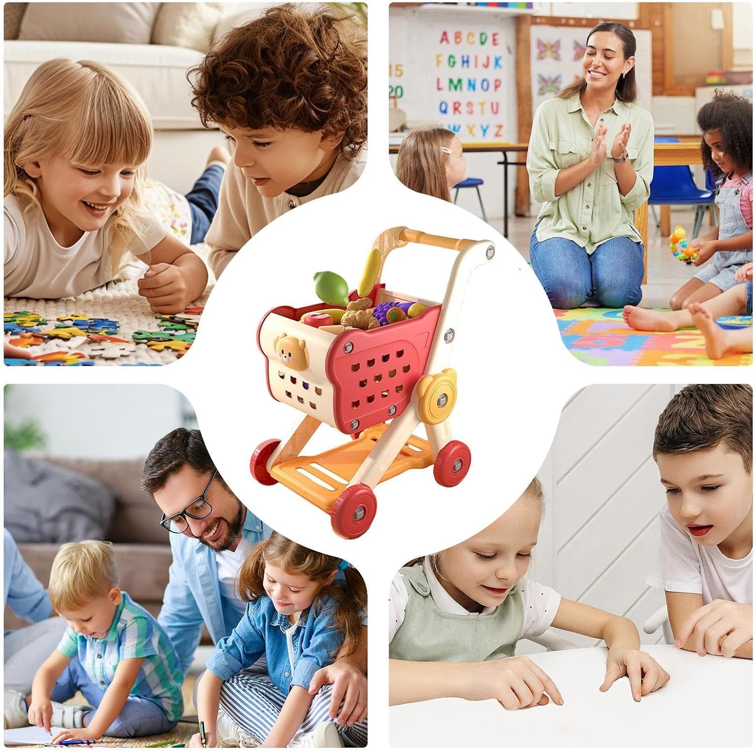completi di playset: la combinazione di un carrello della spesa completamente funzionale e diversi pezzi di gioco fornisce strumento educativo in cui i bambini possono rafforzare il pensiero logico organizzando oggetti, pianificando acquisti e gestendo le configurazioni del gioco, offrendo ore di intrattenimento senza schermo in aule o case Carrello per giocattoli per risparmio spaziale: con un layout multilivello a più pensieroso, il carrello dei giocattoli per i bambini aiuta i giovani studenti a gestire i loro giocattoli o pretendono la spesa ordinatamente Design stabile e sicuro: dotato di un di frenatura anti-punta e ruote arrotondate, il carrello per la spesa per bambini offre un buon equilibrio e minimizza i pericoli di ribaltamento, consentendo ai giovani utenti di godere di giochi di shopping della drogheria ininterrotti garantendo la fiducia dei genitori negli ambienti attivi Carrello per la spesa per bambini: con un carrello per la spesa finta di bambini con bordi arrotondati e una maniglia ergonomica, questo prodotto garantisce un uso sicuro e confortevole, minimizzando i rischi durante il gioco; Le sue superfici fluide e il materiale ABS robusto un'esperienza di shopping realistica ma sicura Aumenta lo sviluppo sensoriale: questo carrello del carrello dello shopping aiuti sviluppo della consapevolezza spaziale e delle capacità cognitive incorporando attività divertenti come l'ordinamento e la gestione degli oggetti, ispirando la curiosità con disegni che motivano i giovani studenti a esplorare e interagire negli scenari giocosi