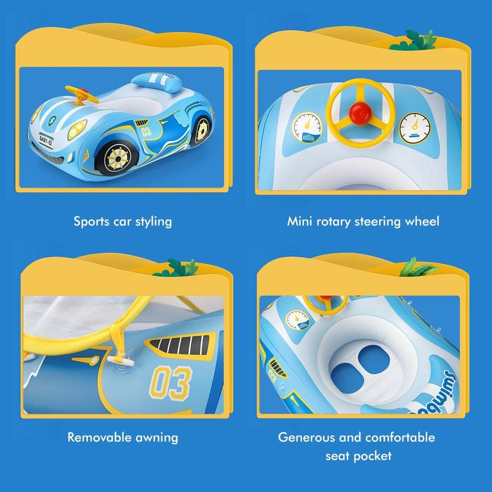 [Stabilità in acqua] corpo ampliato e stabile + cuscino anti-backward impedire l'inclinazione maggiore sicurezza, postura di nuoto ideale per l'apprendimento del bambino. [Protezione solare] Il baldacchino traspirante protegge il bambino dal sole, si gonfia/si sgonfia facilmente, si piega per lo stoccaggio e il trasporto. [Design divertente] Mini volante rotabile con corno forte ispira il gioco dell'acqua, il migliore per piscine e spiaggia. [Materiale durevole] realizzato in PVC da 0,35 mm ispessito di alta qualità, durevole, progettato per neonati e neonati. [Utilizzo versatile] Divertiti in vasca, spiaggia, mare, galleggianti estivi, aiuto per il nuoto, vacanze e altro ancora.