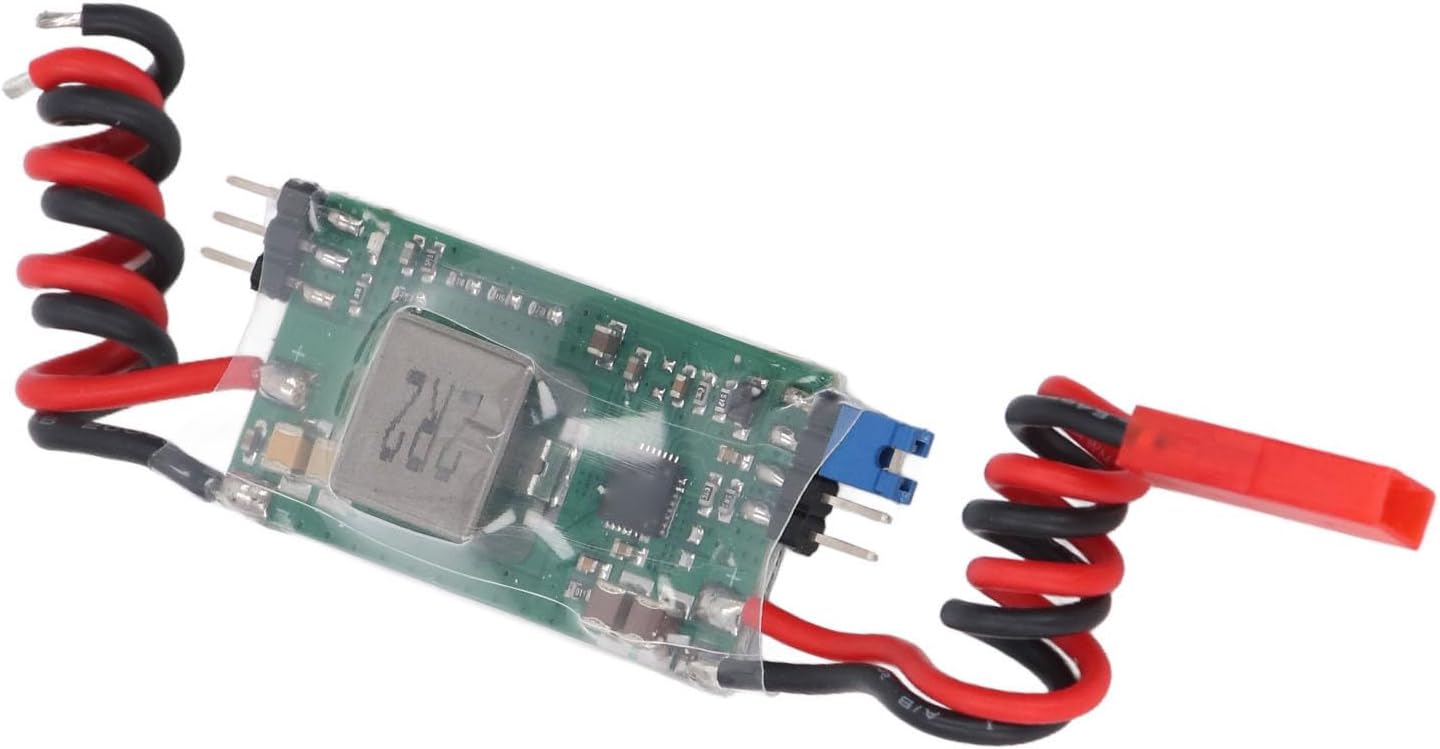 Tecnologia di riduzione del rumore: dotato di un cerchio anti-interferenza sulla linea di uscita, questo modulo riduce significativamente le interferenze elettromagnetiche, garantendo prestazioni stabili dei ricevitori in qualsiasi ambiente. Compatto e leggero: misurando solo 45 mm x 22 mm x 7,5 mm, questo UBEC è piccolo e leggero e offre una corrente di uscita continua di 8 A e un massimo di 12 A per soddisfare le esigenze di alimentazione più impegnative. Design efficiente: dotato di un controller di alimentazione a commutazione con rettifica sincrona, questo UBEC raggiunge un'efficienza impressionante fino al 93%, integrata funzioni di sicurezza contro sovracorrente e sovratemperatura. Compatibilità versatile: con la sicurezza integrata contro l'inversione di polarità e un intervallo di tensione operativa 7 V a 25,5 V, questo UBEC semplifica la configurazione, eliminando la necessità di un pacco batteria separato per il ricevitore. Potenza ad alte prestazioni: questo modulo UBEC converte le tensioni di ingresso 7 V a 25,5 V, fornendo in modo affidabile fino a 8 A di corrente di uscita per alimentare ricevitori, giroscopi e servi multipli.