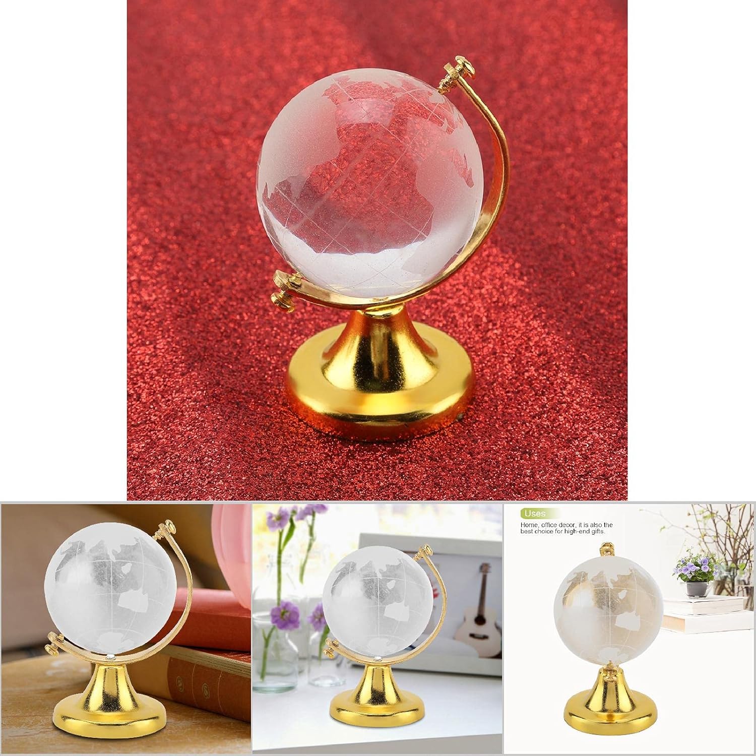 Mini globo Ottima decorazione per la casa o l'ufficio. Gold Mini Globe È anche un'ottima scelta per gli amici. Mini Globo Il materiale cristallino è rigorosamente controllato e le bolle sui materiali cristallini vengono rimosse per formare un globo di cristallo. Usi della sfera di vetro decorativa: decorazione della casa, dell'ufficio, è anche la scelta migliore per regali di fascia alta. Mini globo di vetro, simpatici accessori per scattare foto.