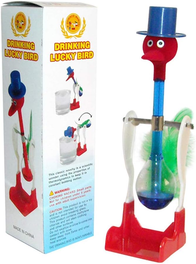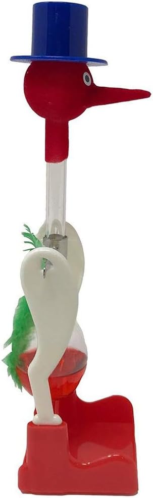 Ottima decorazione per casa, ufficio, ufficio. Realizzato con materiali di alta qualità, ambientale e sicurezza, nessun danno al corpo umano. Carino Bir, una volta che l' inizi l'acqua di clamore, non si fermerà, gioca. Riempi un bicchiere con acqua, immergi la testa e guarda la festa che inizia. Fa un ottimo giocattolo da scrivania a dondolo a forma di . Il liquido all'interno, condensato dal raffreddamento evaporativo dell'acqua dal becco dell', lo carica sulla sua testa e lo rimette in acqua. La condensa viene restituita nel bacino liquido del baster per uccelli e si ribalta.