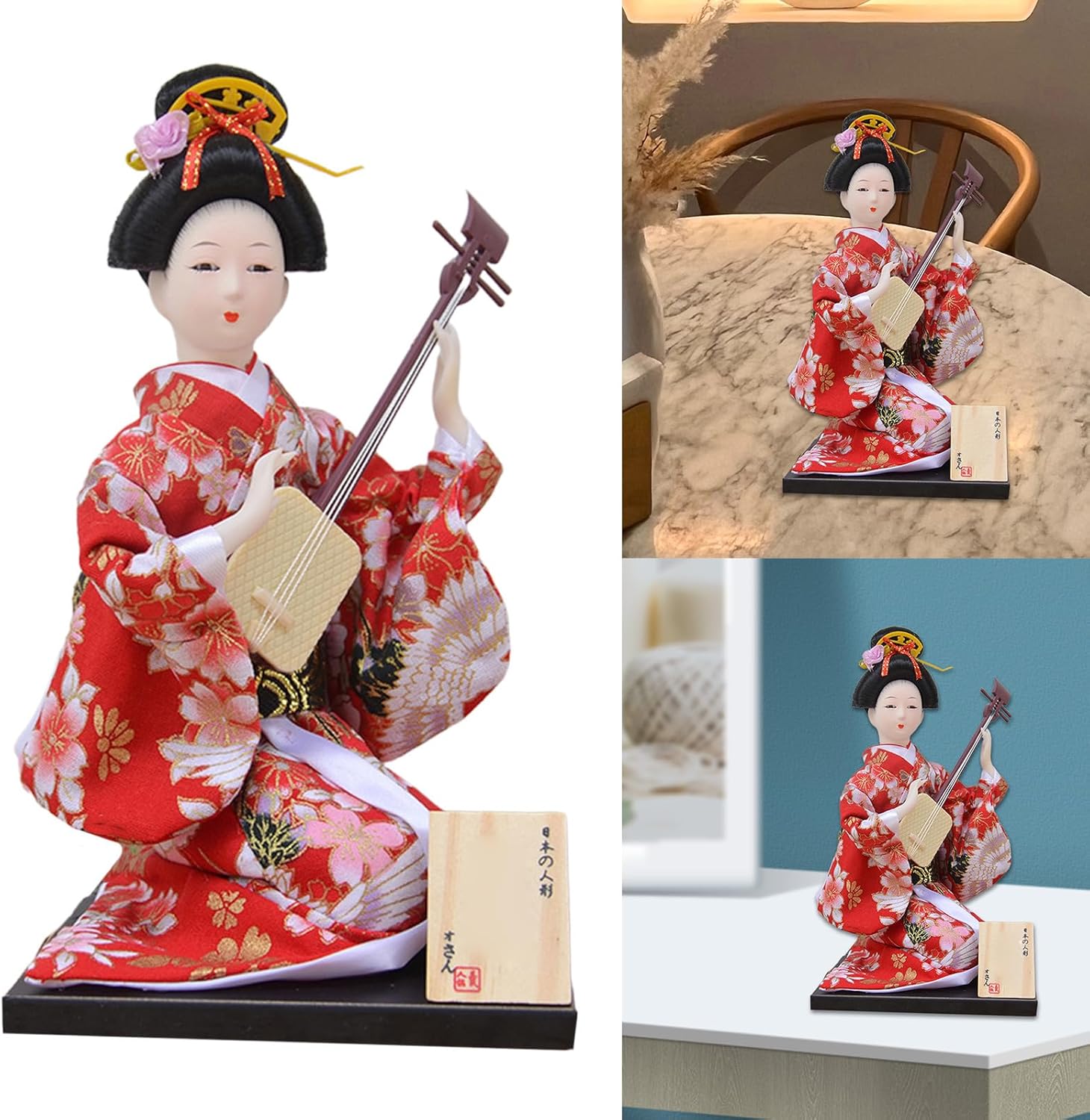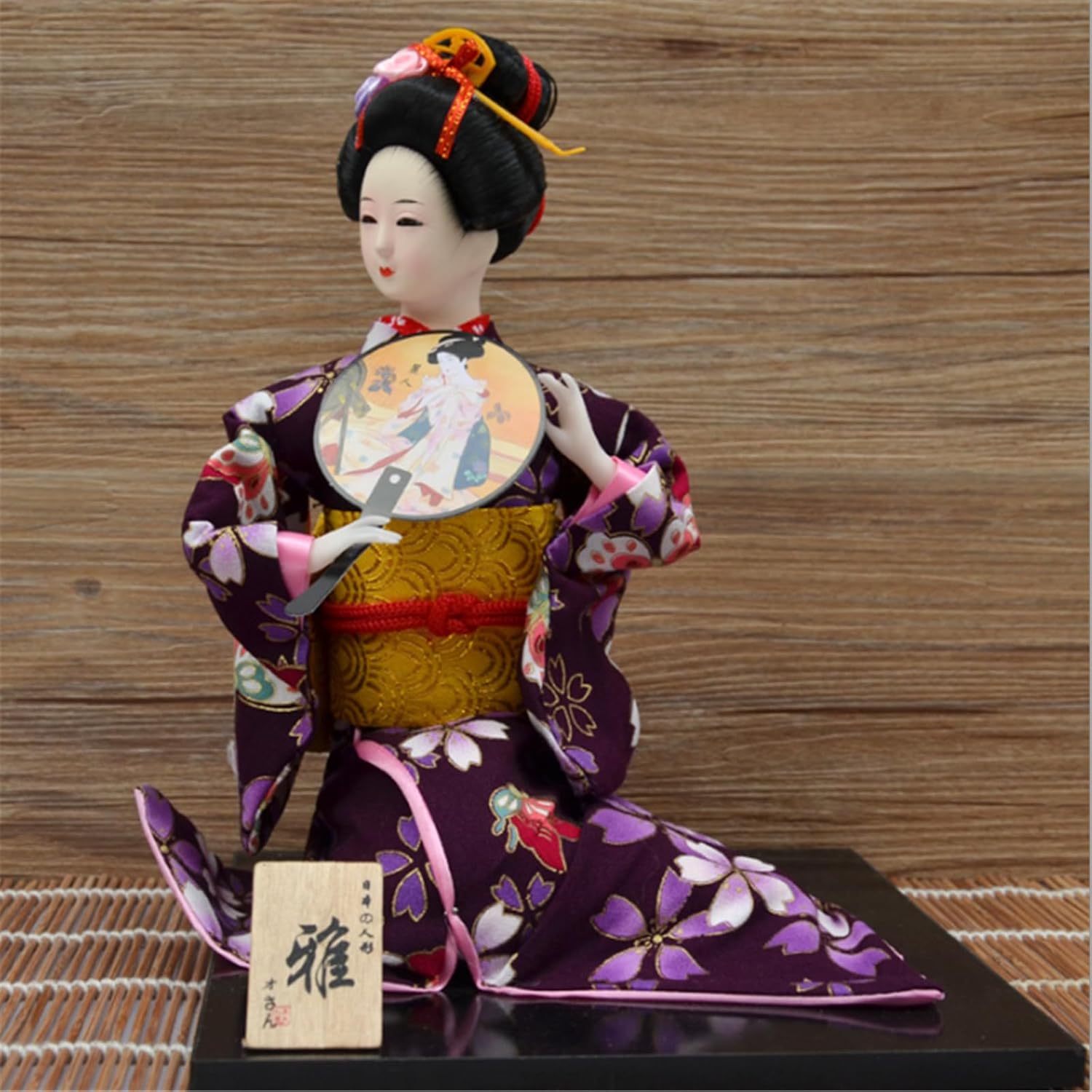 Illumina il tuo spazio con questo squisito kimono giocattolo da 12 pollici per portare un tocco di elegante decorazione giapponese a qualsiasi ambiente. Questo ornamento decorativo funge da centrotavola che incarna il fascino e la tradizione dell'arte giapponese. Da esporre nei ristoranti di cucina giapponese, come parte della decorazione giapponese o come regalo. Una varietà di materiali tra cui resina per mani e piedi e una base in legno. Questo giocattolo presenta dettagli intricati e un design unico ed elegante Perfetto per gli amanti della cultura giapponese, proprietari di ristoranti e collezionisti, decorazioni distintive