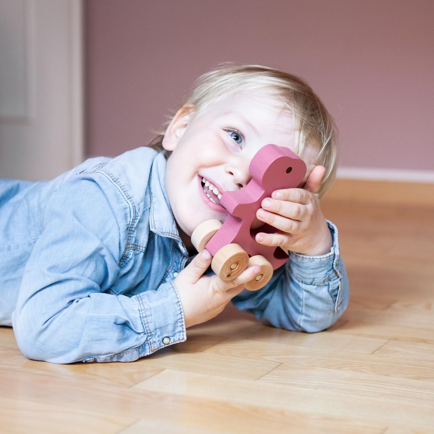 Dinosauro spingi e tira per un divertimento che dura a lungo, anche per i giochi tra fratelli Adatto a bambini dai 12 mesi circa in poi Il dinosauro può essere tirato, spinto o integrato in modo creativo nel gioco libero, rendendolo un giocattolo pedagogico Materiale: legno privo di sostanze nocive e adatto ai bambini Con design adatto a bambini e bambine