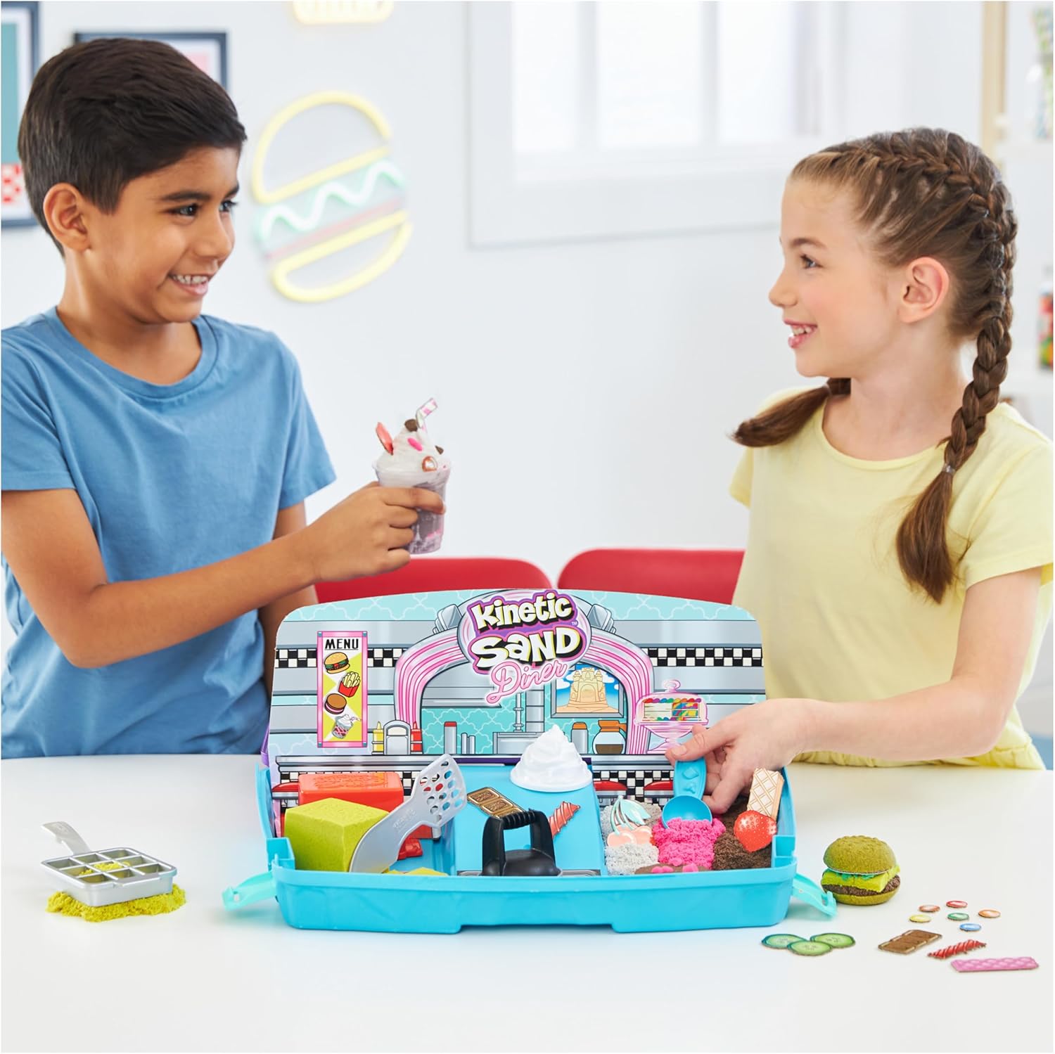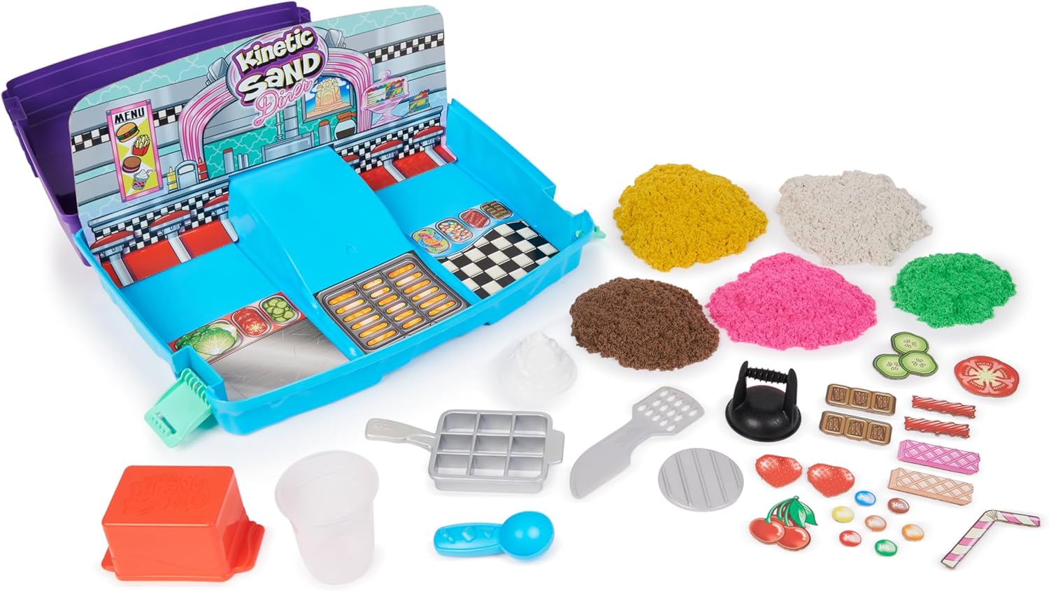 Gioco di ruolo creativo al suo meglio: da 907 g originale Kinetic Sand in cinque colori si creano con questo set bellissimi hamburger, patatine fritte e speciali gelati. Grazie agli stampi e alla magica struttura di Kinetic Sand le creazioni mantengono la loro forma anche durante il gioco Passo dopo passo, le pattie di hamburger, le metà dei panini, le foglie di lattuga vengono formate e tagliate e il formaggio grattugiato. Con il porzionatore si creano palline di ghiaccio e anche la ciliegina non deve mancare Con gli accessori di cartone, le creazioni possono essere decorate in aggiunta e la valigetta offre anche lo sfondo giusto per il gioco di ruolo. Quando si effettua l'ordine, comprare e servire, i bambini allenano giocosamente le loro abilità sociali e comunicative Una volta aperta, la valigetta offre due superfici di gioco, in modo che gli hamburger bar e il salone di ghiaccio possano essere utilizzati contemporaneamente. Che si tratti di un amico o di una ragazza, un genitore o una nonna e il nonno, la magica struttura di Kinetic Sand e la vera sensazione di sabbia entusiasmano tutte le età Contenuto: 907 g di sabbia Kinetic, 1 pirottino per panna, 1 stampino per panini, 1 formaggio, 1 bicchiere per frappè, 1 piatto per hamburger, 1 taglio/grattugia/strumento di rotazione, 1 porzionatore, 1 pressa per patatine, 1 sfondo, 1 valigetta, 19 accessori, 3 espositori Il set da gioco Kinetic Sand per hamburger e gelati è il regalo ideale per tutti i bambini che amano essere creativi con le mani, amano il gioco di ruolo e amano usare la loro immaginazione. Poiché giocare con Kinetic Sand è rilassante, può anche essere utilizzato in modo mirato per scendere