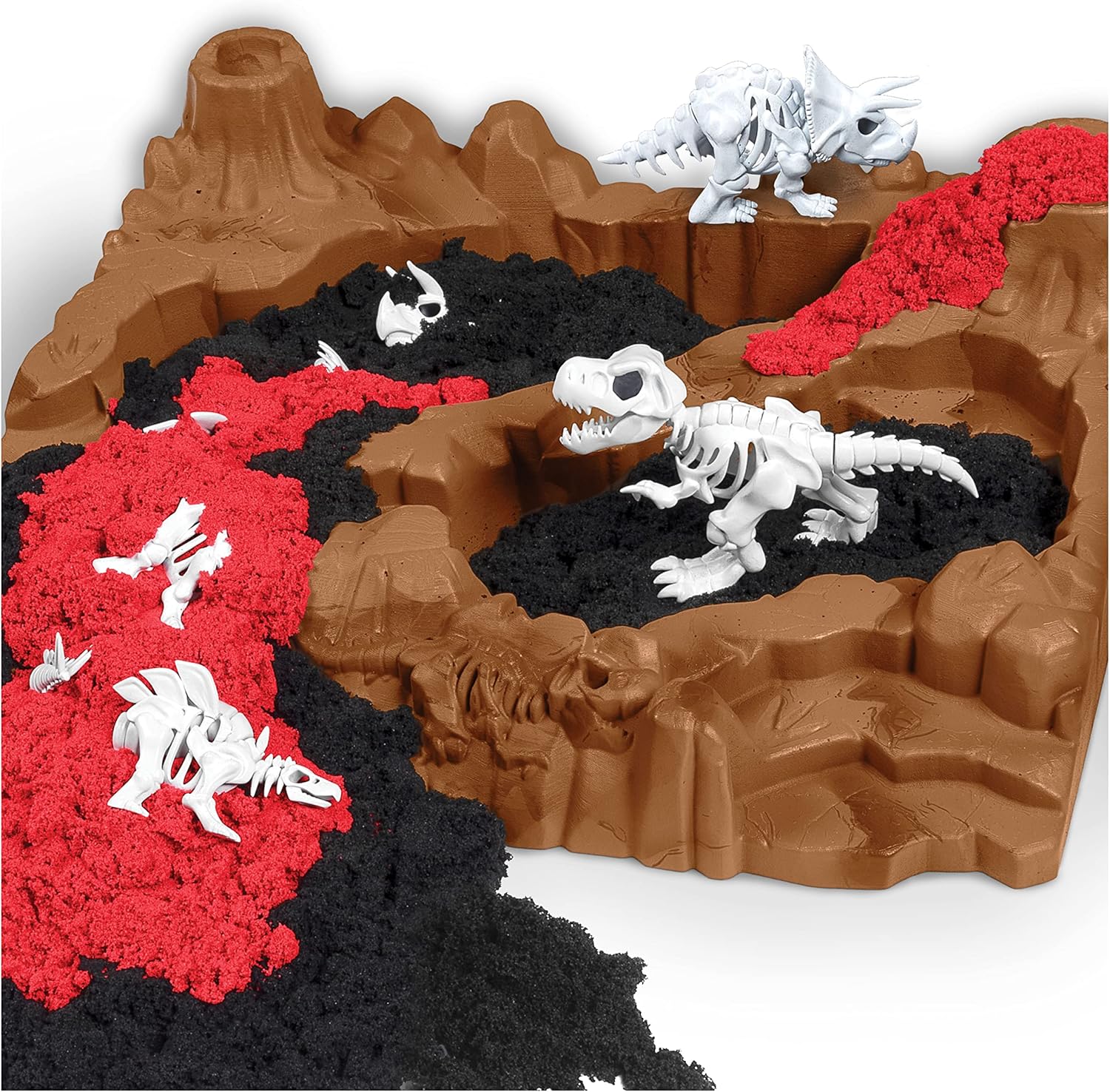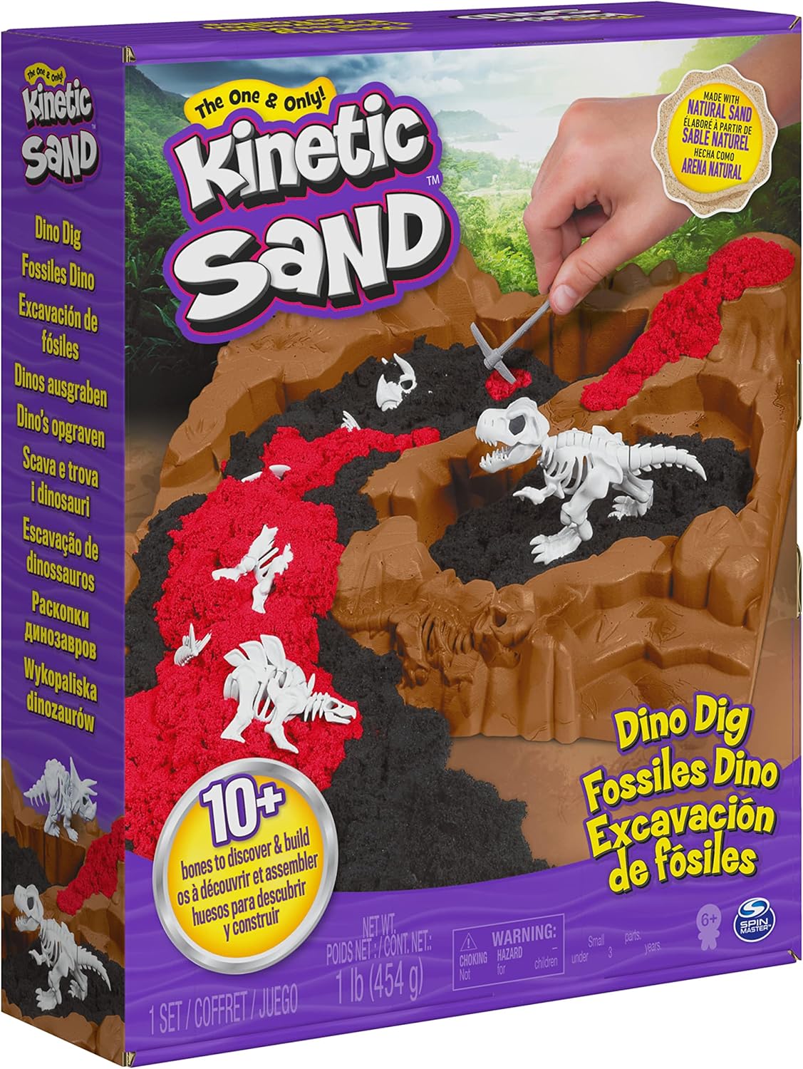 Scava e scopri 10 ossa: il set da gioco Dino Dig si apre per rivelare un'area di gioco a tema e include un piccone e una pala 2 in 1 per aiutarti a trovare 10 ossa di dinosauro nascoste sotto Kinetic Sand Costruisci 3 scheletri di dinosauri: assembla i tuoi tesori fossili in 3 diversi dinosauri da collezione. Metti insieme i tuoi scheletri di triceratopo, stegosauro e tirannosauro rex Sabbia cinetica rossa e nera: il set Dino Dig include Kinetic Sand nero e rosso (454 g) che imita sporco e lava per un'esperienza di scavo realistica. Dai forma alla tua Kinetic Sand con lo stampo incluso Il set da gioco Kinetic Sand Dino Dig è perfetto per il gioco fantasioso ed è un ottimo regalo per bambini dai 6 anni in su. Kinetic Sand è realizzato in sabbia naturale ed è privo di grano, glutine e caseina Include: sabbia cinetica da 454 g, 3 dinosauri costruibili, 1 piccone, 1 stampo fossile, 1 vassoio per dinosauri, 1 manuale di istruzioni (lingua italiana non garantita)