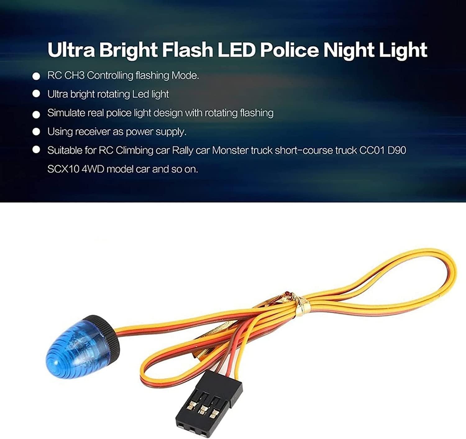 5 modalità: on/off/rotazione rapida/rotazione lenta/lampeggiante stroboscopica/lampeggiante nitido Piccole dimensioni e peso leggero, dimensioni della luce: 13 * 17 mm; uso di tensione: 4.8-6V, basso consumo energetico Molto facile da installare e disinstallare, utilizzando il ricevitore come alimentazione, (RC CH3 che controlla la modalità lampeggiante) Aumenta l'autenticità della tua auto rc, rendi la tua auto RC più fresca e attraente. RC Auto Luce lampada vestito per 1/8 1/10 1/12 rock crawler corso breve Auto Axial SCX10 D90 CC01 4WD Traxxas Redcat HSP HPI Rock Crawler Modello Truck Parts