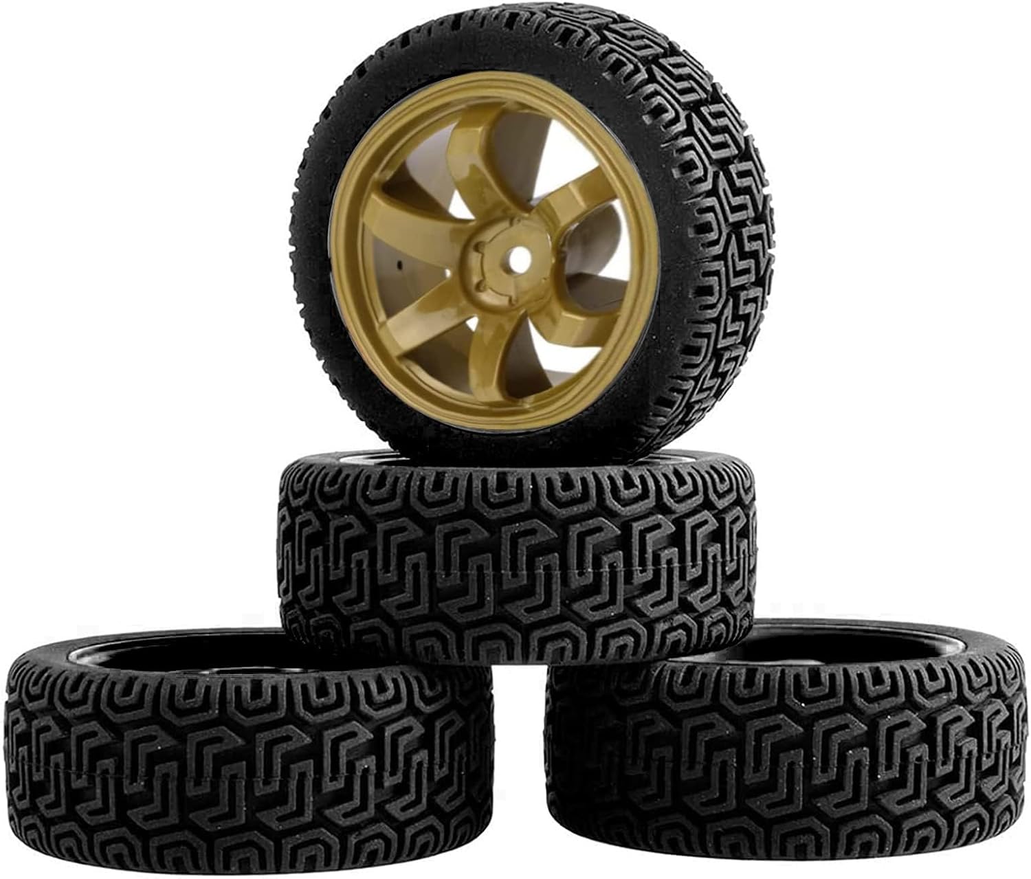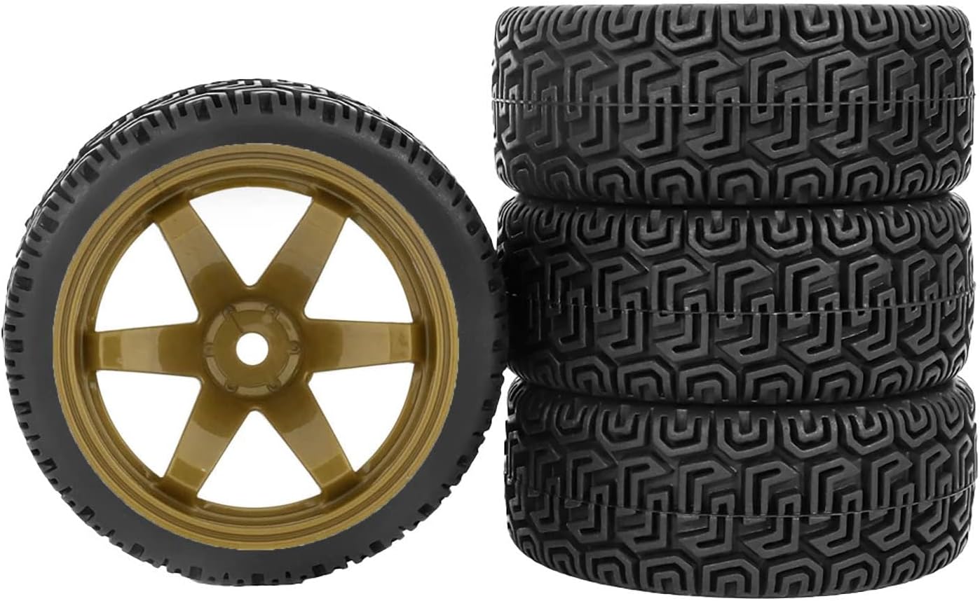 I pneumatici RC sono realizzati in gomma di alta qualità, con inserto in schiuma, facili da installare I cerchi a 6 raggi sono realizzati in plastica, che è più leggera, ha un nuovo aspetto e offre una mobilità più flessibile. Diametro esterno pneumatico: 68 mm; larghezza pneumatico: 26 mm; diametro cerchione: 52 mm, larghezza cerchione: 26 mm; adattatore esagonale: 12 mm Gli pneumatici sono realizzati in gomma e i cerchi in lega di alluminio, un sostituto perfetto per la tua auto RC. Facile da installare e durevole in uso. Tuta per auto da 1/10 HSP HPI Tamiya Kyosho RC On Road Car, 1/16 RC Rally Car