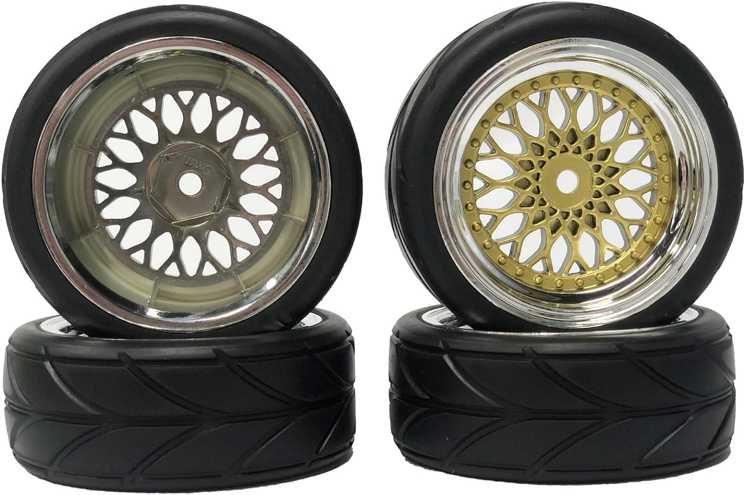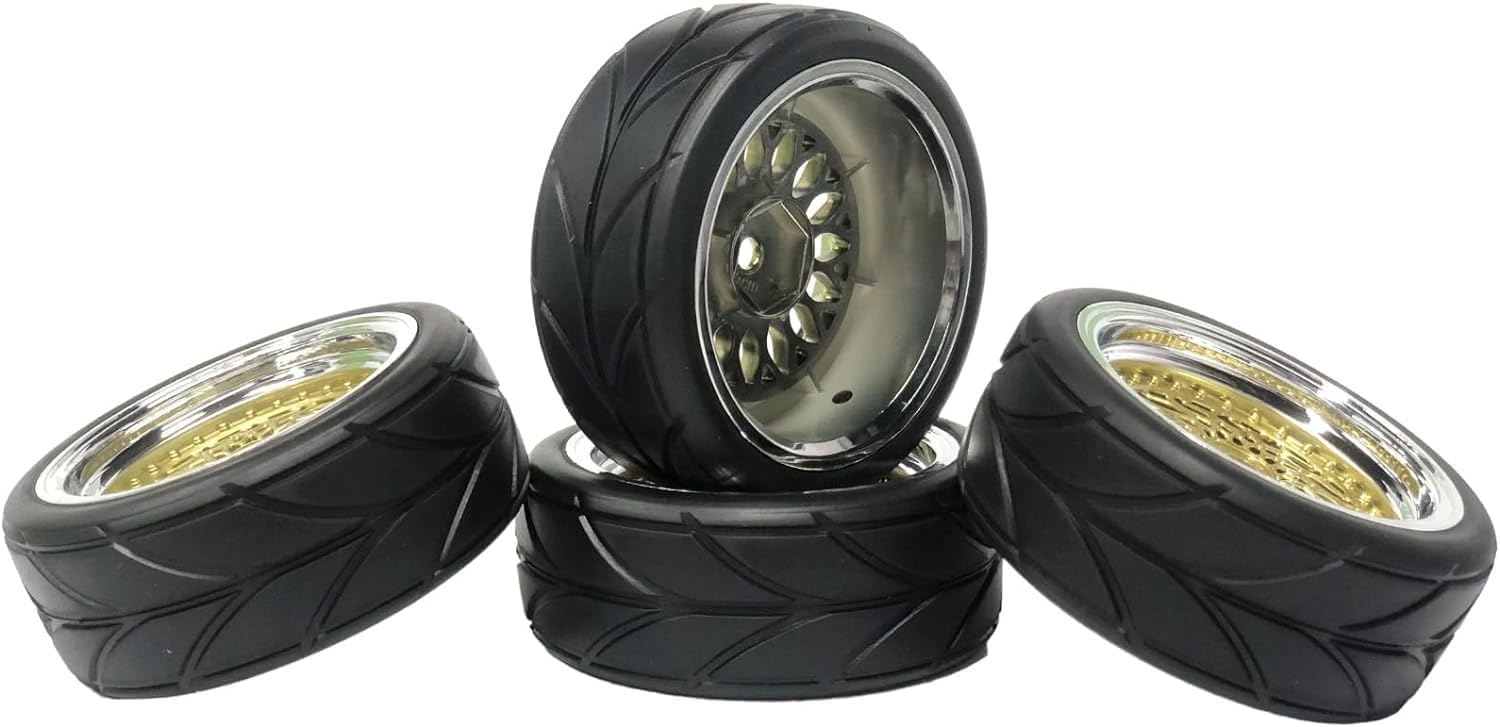 RC auto frecce modello pneumatici sono realizzati in gomma di alta qualità, con inserto in schiuma. I cerchi a forma di Y con motivo floreale sono placcati in plastica che ha un peso leggero, un nuovo aspetto e una mobilità più flessibile. Diametro esterno pneumatico: 64 mm; larghezza pneumatico: 26 mm; diametro cerchione: 52 mm, larghezza cerchione: 26 mm; adattatore esagonale: 12 mm, offset: 3 mm C'è spugna inserita per ogni pneumatico, facile da installare e durevole in uso, sostituzione perfetta per il vostro kit. Pneumatici di ricambio e ruote set adatto per RC 1: 10 on-road Racing car, drift, touring Accessori auto. (Nota: i pneumatici e i cerchi sono separati, questi pneumatici non si attaccano bene con la colla, è necessario assemblarli e incollarli insieme da soli.)