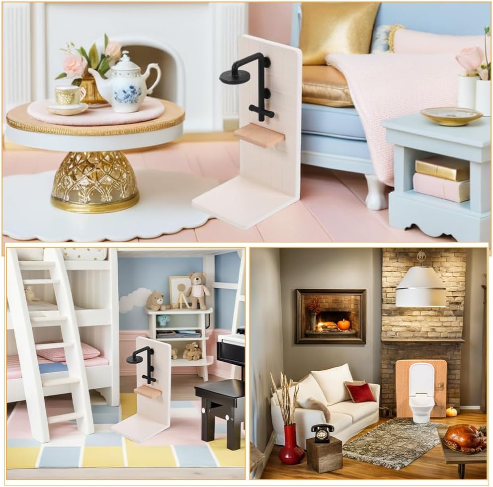 Miniatura realistica: presenta una lavorazione artigianale dettagliata, questo mobile da bagno per casa delle bambole, migliorando l'estetica della casa delle bambole Perfettamente in scala: questo mobile per casa delle bambole si perfettamente in varie configurazioni di case delle bambole per una scena completa del bagno Design sicuro: materiali leggeri e lisci in plastica e legno garantiscono una manipolazione sicura e facile per i giovani utenti Coinvolgimento creativo: gli accessori da bagno per case delle bambole stimolano l'immaginazione e la creatività dei bambini attraverso attività di gioco di ruolo interattive Finitura resistente allo sbiadimento: mantiene colori vivaci e un aspetto lucido, garantendo che il set da bagno della casa delle bambole rimanga visivamente accattivante nel tempo