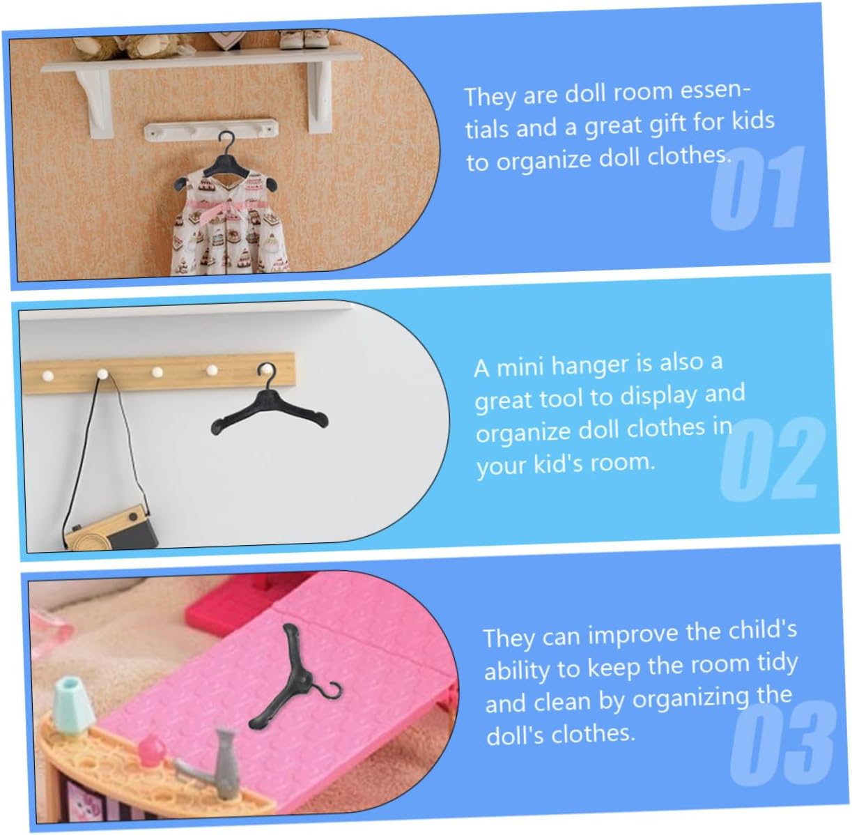 Mini gruccia per vestiti per casa: versatile, può essere utilizzata per cappotti, gonne appese, mini bambole, ecc., per riporre i vestiti delle tue bambole, mini accessorio per casa delle bambole Mini supporto per vestiti: materiale plastico rende questi ganci resistenti sbiadimento e alle macchie, per prestazioni eccellenti, gancio per casa delle bambole Grucce in plastica: i vestiti delle tue bambole possono essere appesi ordinatamente nell'armadio per creare un guardaroba per bambole organizzato, grucce in plastica Gruccia per in miniatura: la per compleanni o feste per , regala loro una piccola sorpresa, piccole grucce per Grucce in plastica: materiale plastico sicuro, struttura e robusta per riporre i vestiti delle bambole, grucce in plastica