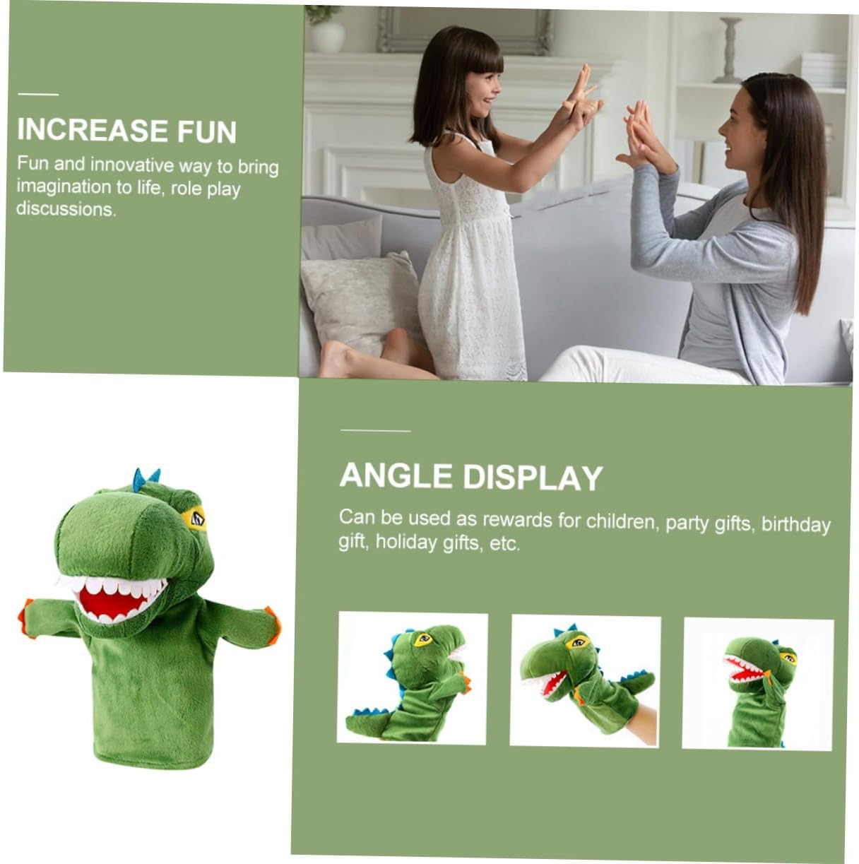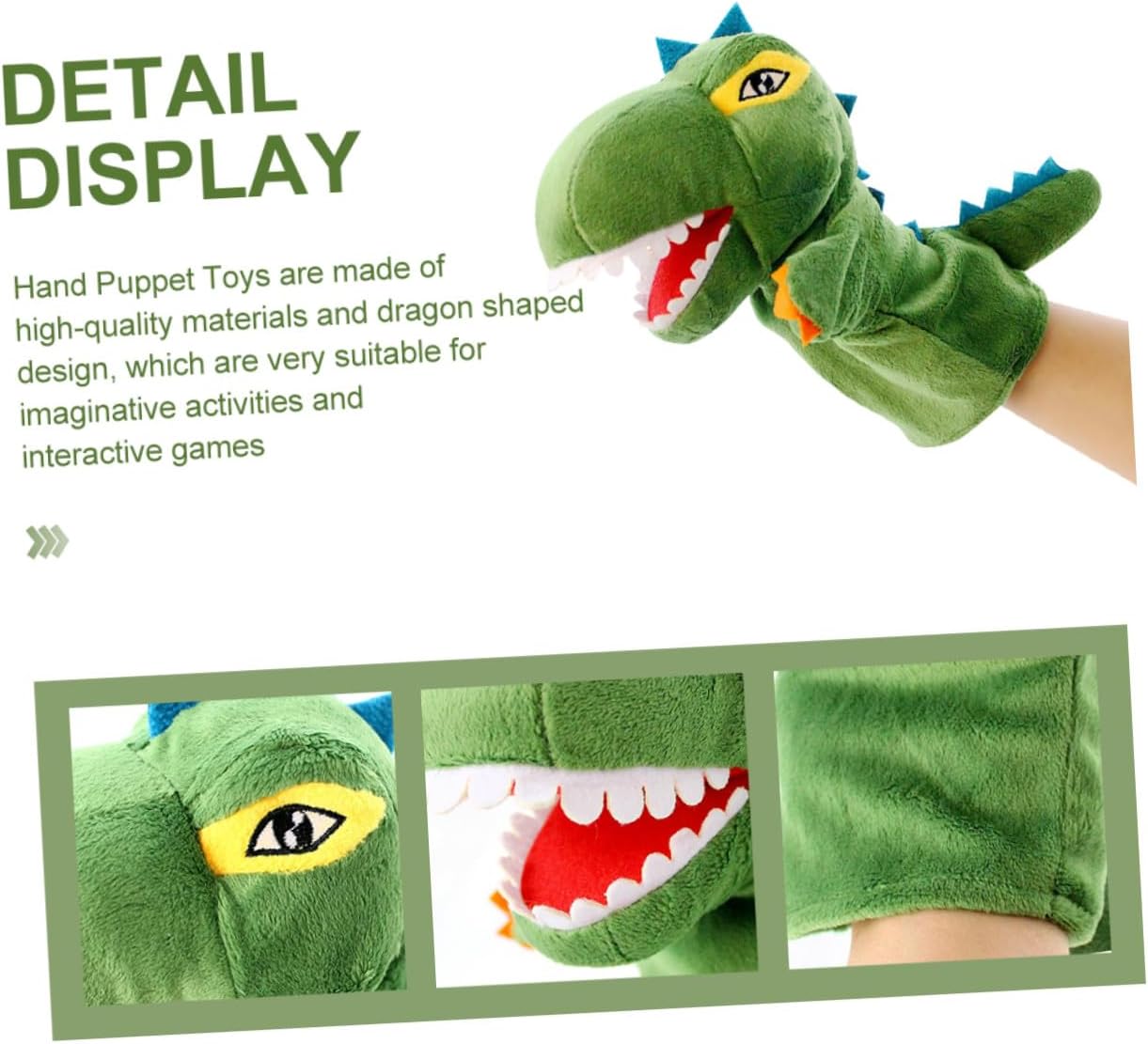 Marionetta per: grande arte e meraviglia per l'azione creativa, per l'attività fantastica, per l'uso delle parole, per la liberazione delle emozioni, per la storia delle pupazze dei cartoni animati: è la migliore, si trova in una mano, ha una bella trama ed è una bambola per dinosauri. für Schöne dinosaurier-handpuppe: verformt sich nicht leicht, ist groß genug, um ihren händen genügend bewegungsfreiheit zu lassen, stofftierpuppe Kinderpuppen: eine unterhaltsame e un modo innovativo per risvegliare l'immaginazione, discussioni sui giochi di ruolo, marionette per tutta la famiglia Morbide bambole di peluche: sono della dimensione giusta per la maggior parte degli adulti. Metti semplicemente la tua mano in questa marionetta, una marionetta giocattolo per